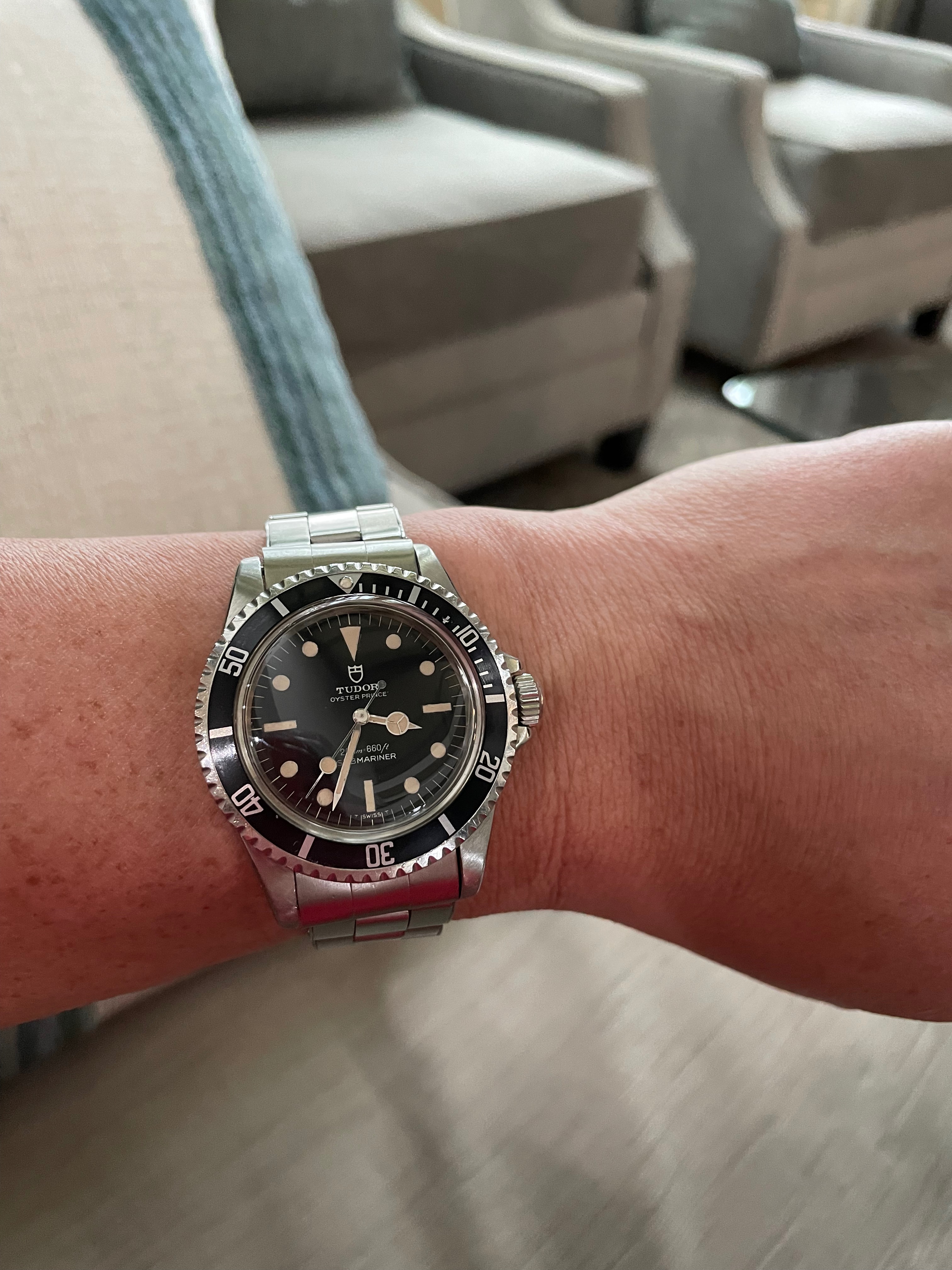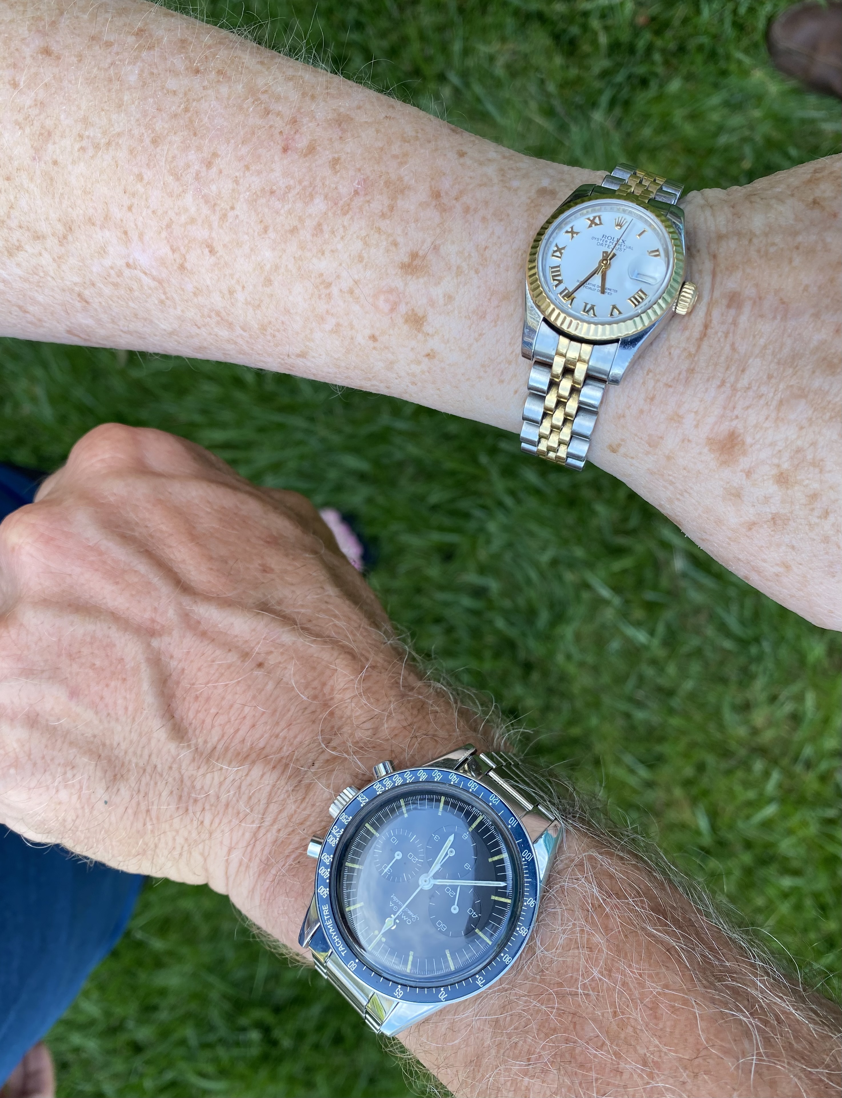 Date night tonight…our 27th wedding anniversary…the retired airline pilot is sporting her Rolex while the Mad Dog action figure is sporting his birth year 1964 Echo Whiskey…