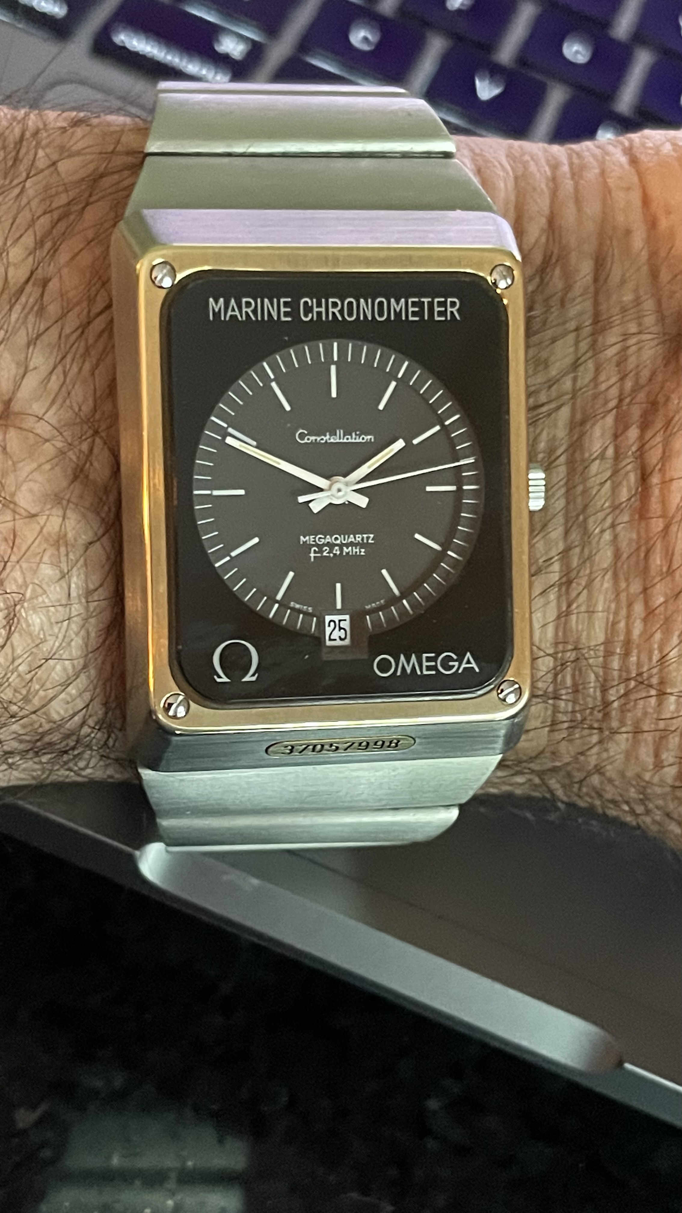 Your Omega Megaquartz 2'400 is the world's most accurate and most technically advanced wristwatch. It is accurate to one second a month (will be adjusted to this tolerance if necessary). The quartz crystal resonator of your Megaquartz 2'400 vibrates at the incredible rate of 2,359,296 times a second.”