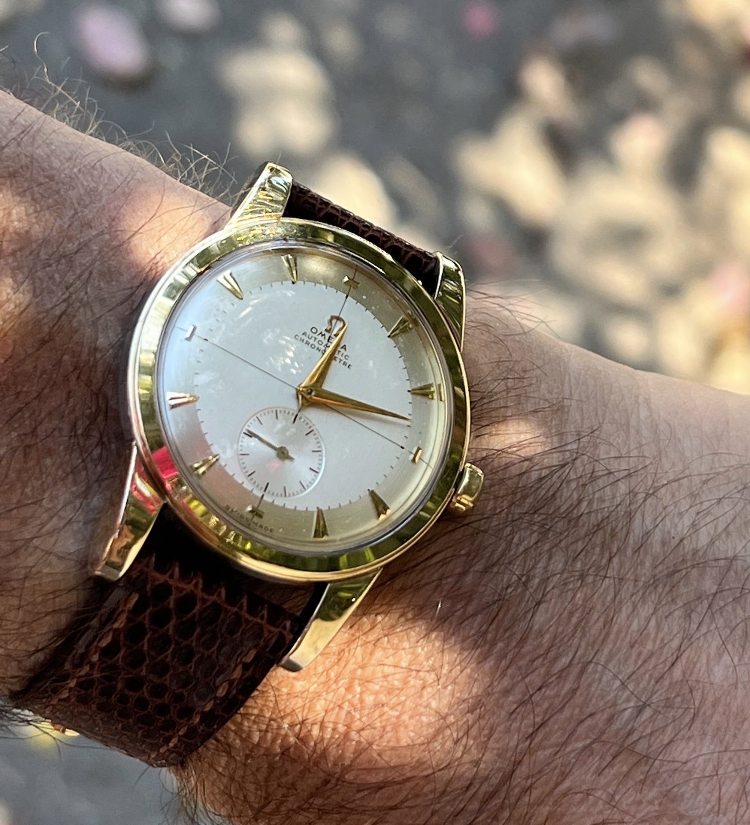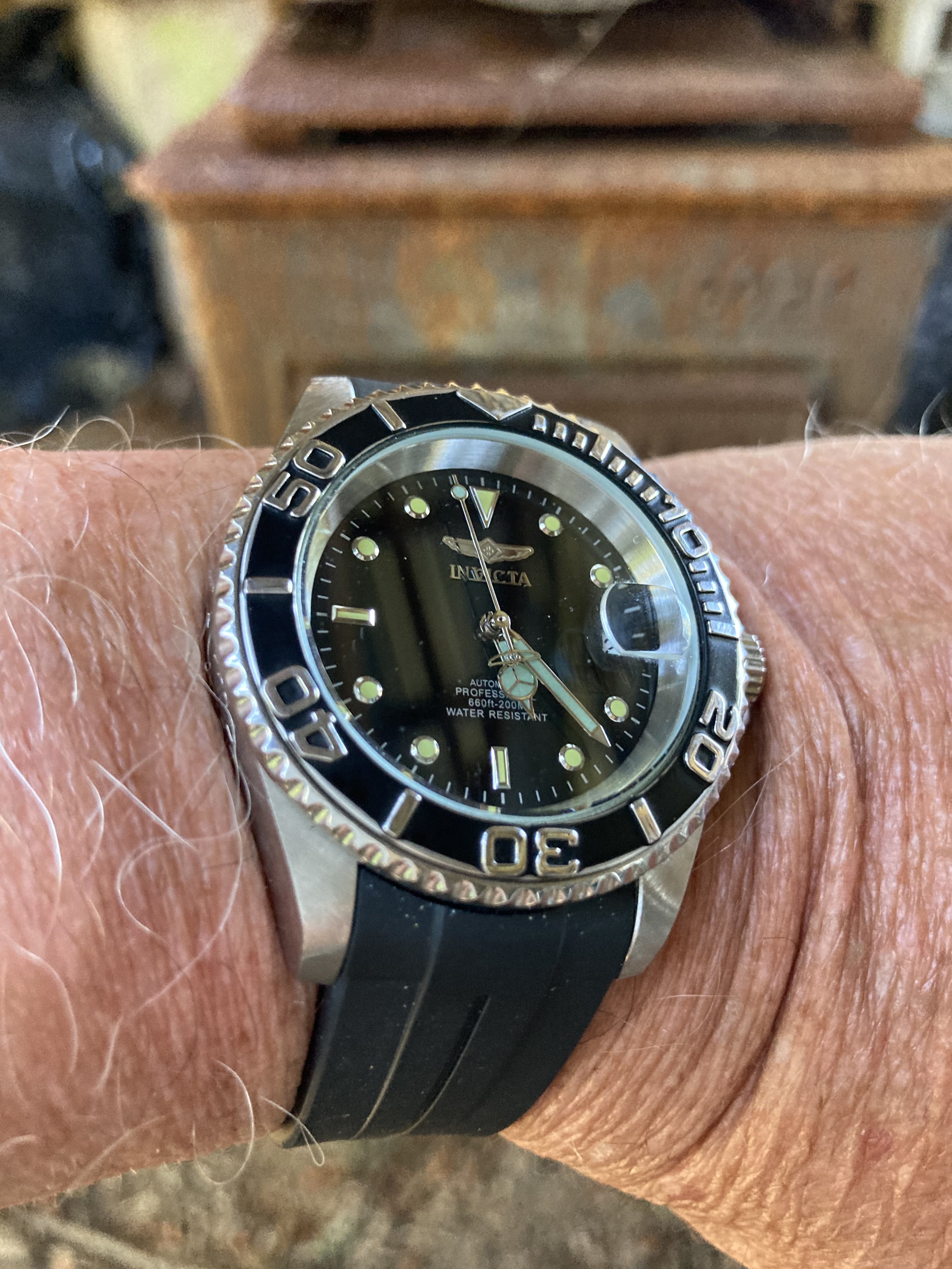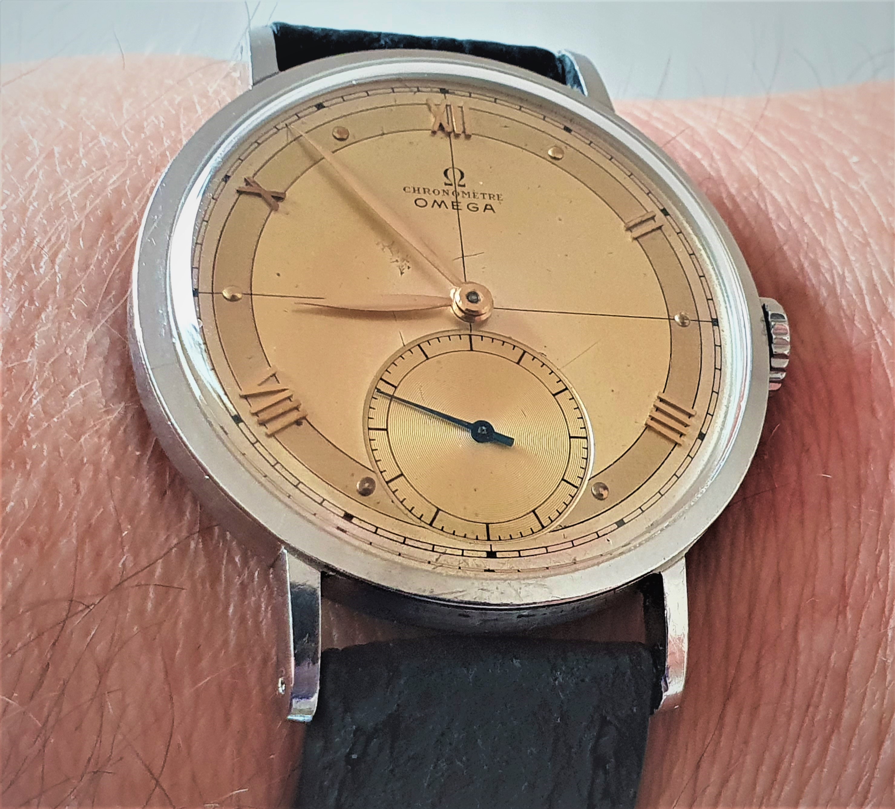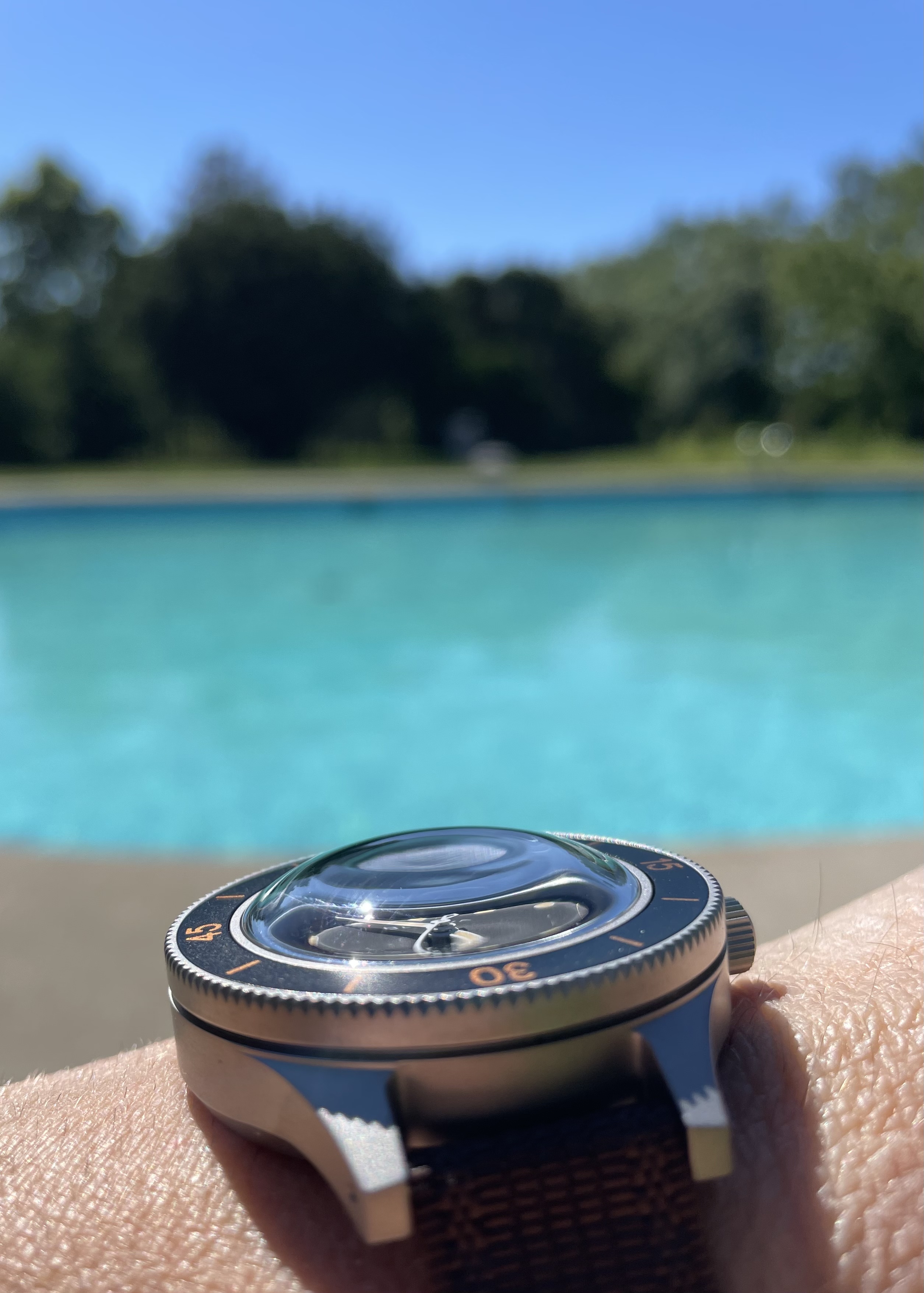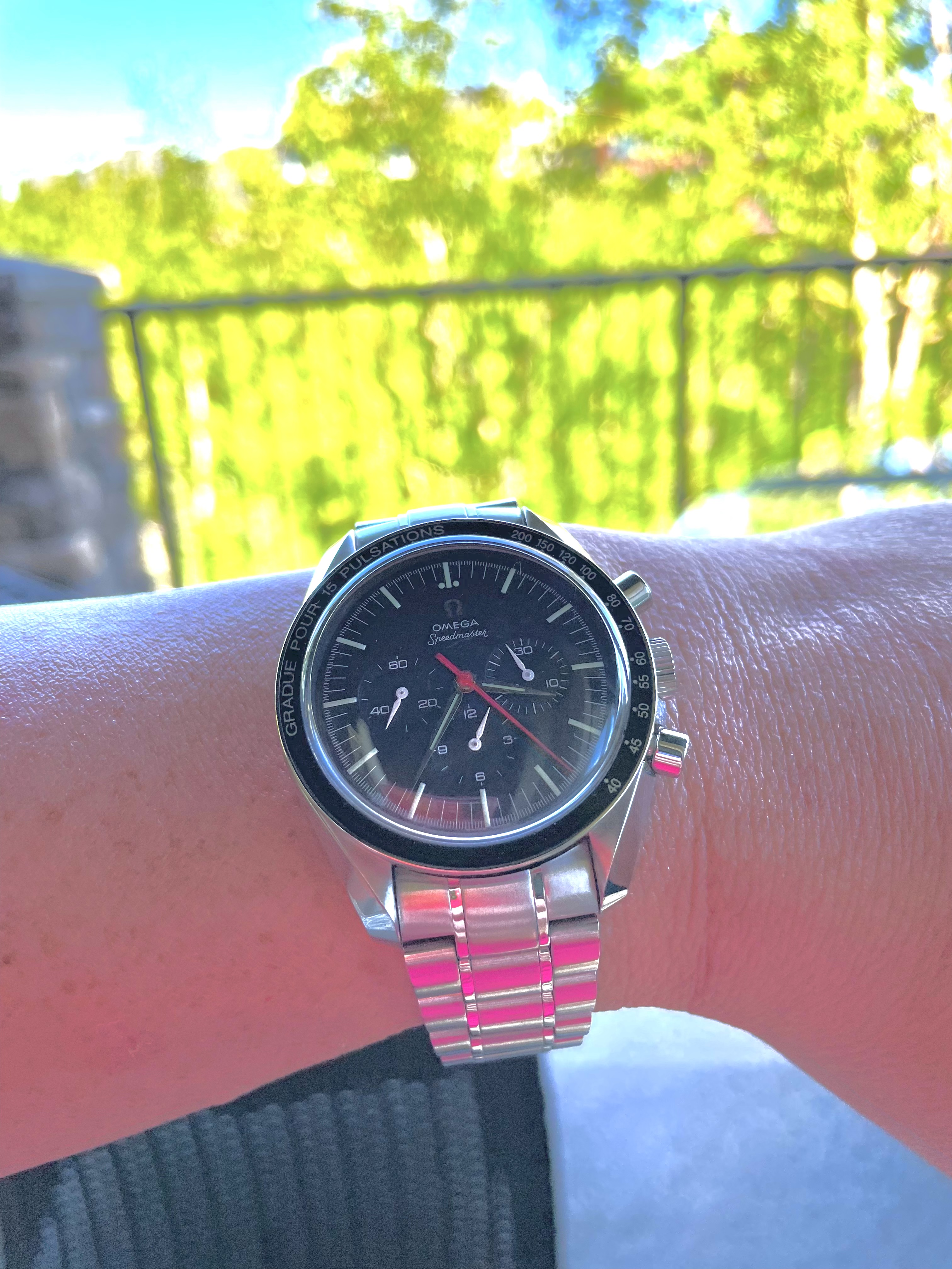 The bracelet is too small, so I put it on this Heuertime racing strap while I hunt for an extra link. Do you think it works? I'm on the fence.