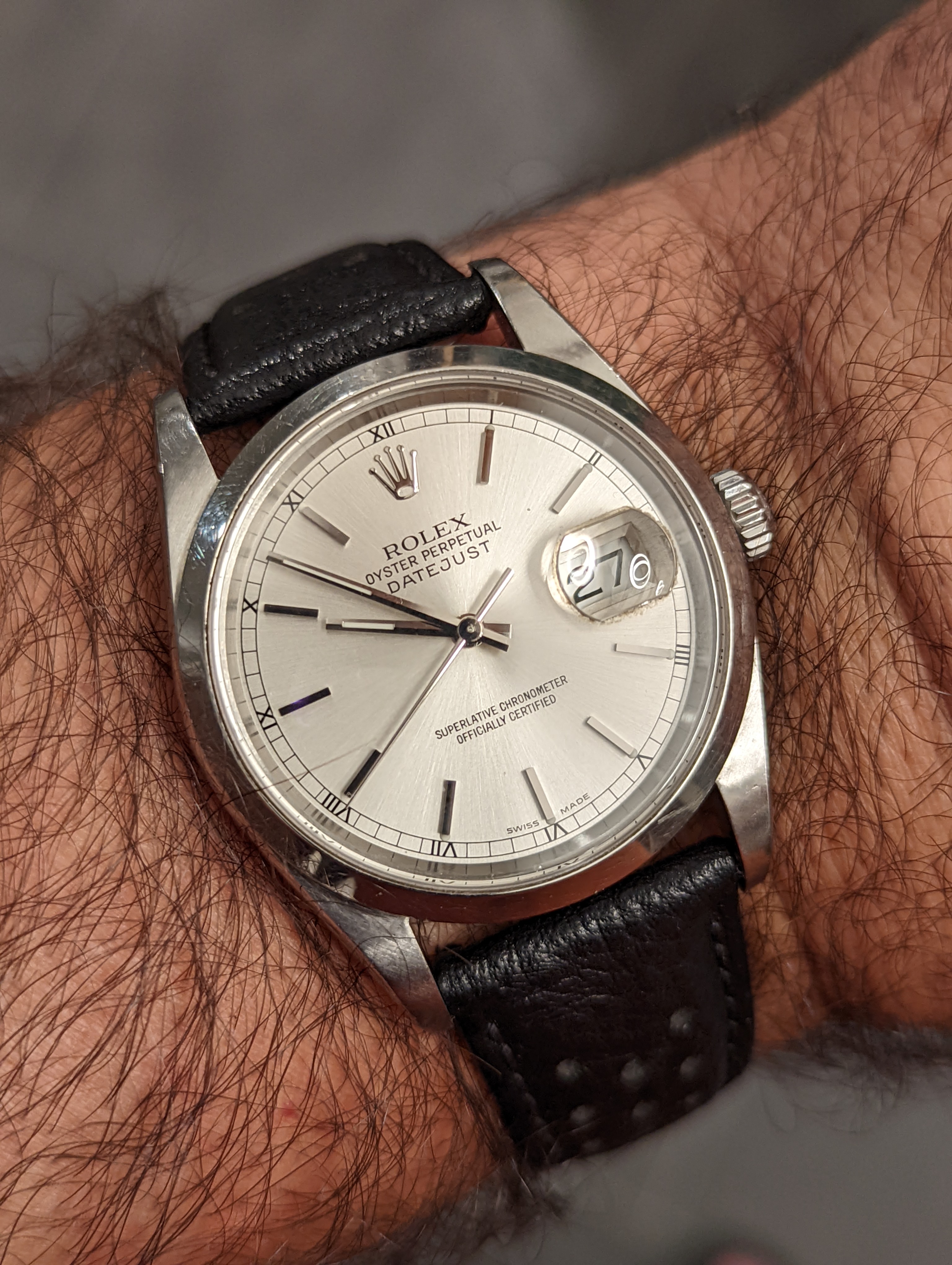 Just got gifted my late father in law's daily watch from ca 2006. Can't get much more essential than the white dial Datejust. Classy in a quiet way.