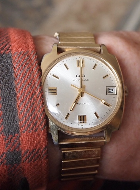 We’re headed away for a few days, trailering in the Rocky Mountains. We will join a group of like minded friends. Time to shelve the Speedmaster reduced, and wear my 50+ year old Caravelle transistorized. It sold for $39.95 to $49.95, depending on the model. This one is Japanese made, and is a good runner, but it gains a bit.