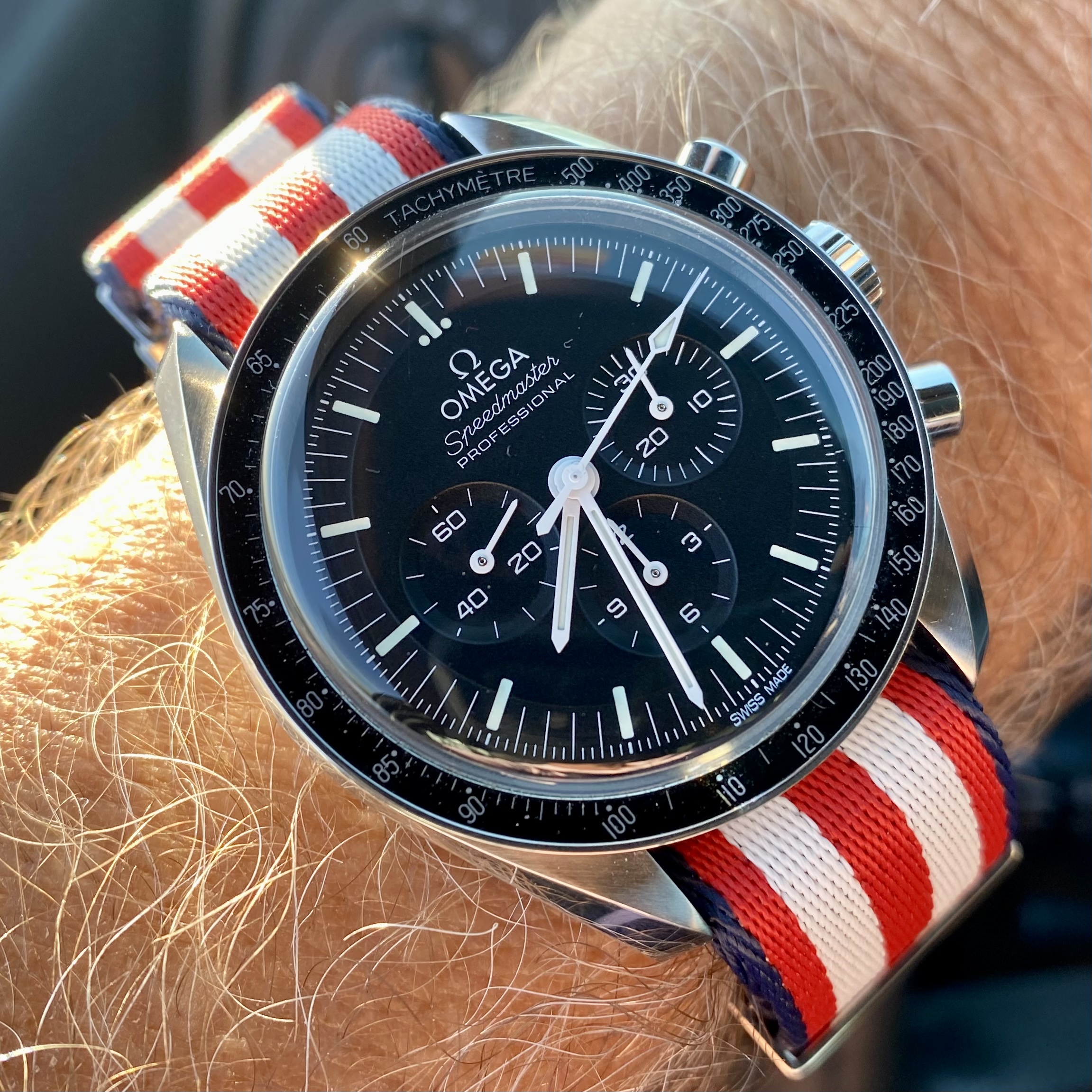 Posts 6,584 Likes 78,277 Mad Dog ·Jul 4, 2022 Headed home from the office…got a new Omega NATO at the NYC OB a few days ago…time to use it…happy 4th and happy birthday to our oldest kid unit, Hannah…