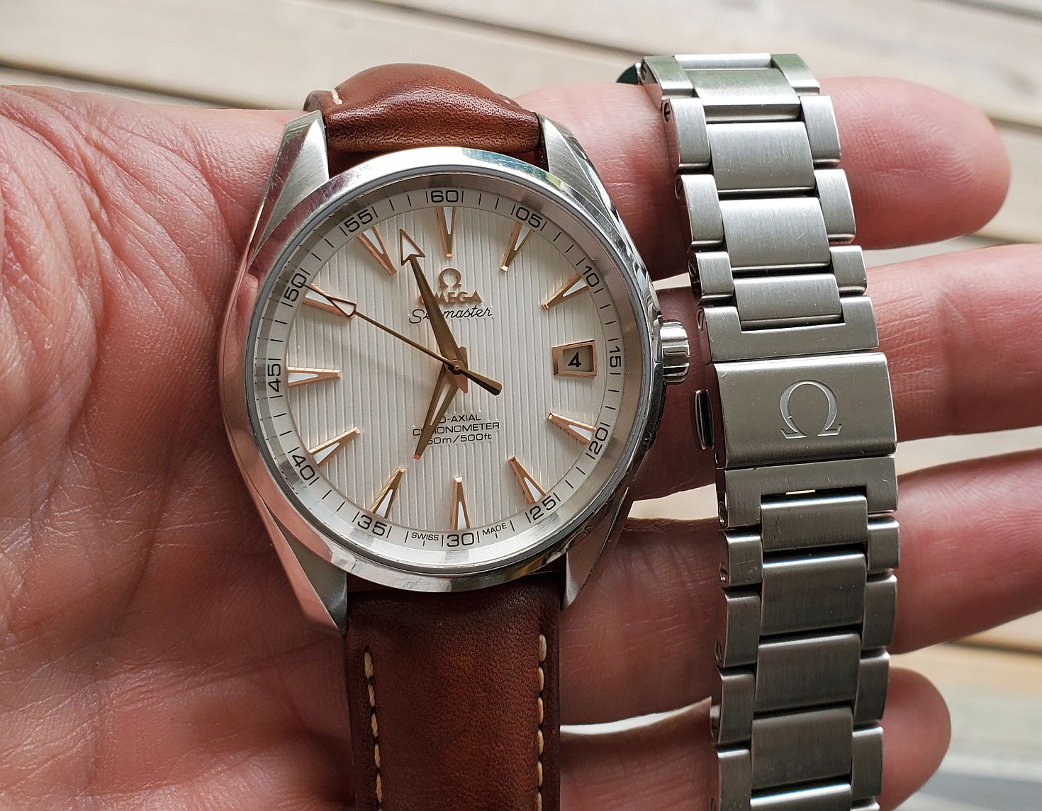 This particular AT, silver w/ RG bits (231.13.42.21.02.002), was only sold by Omega on brown straps.