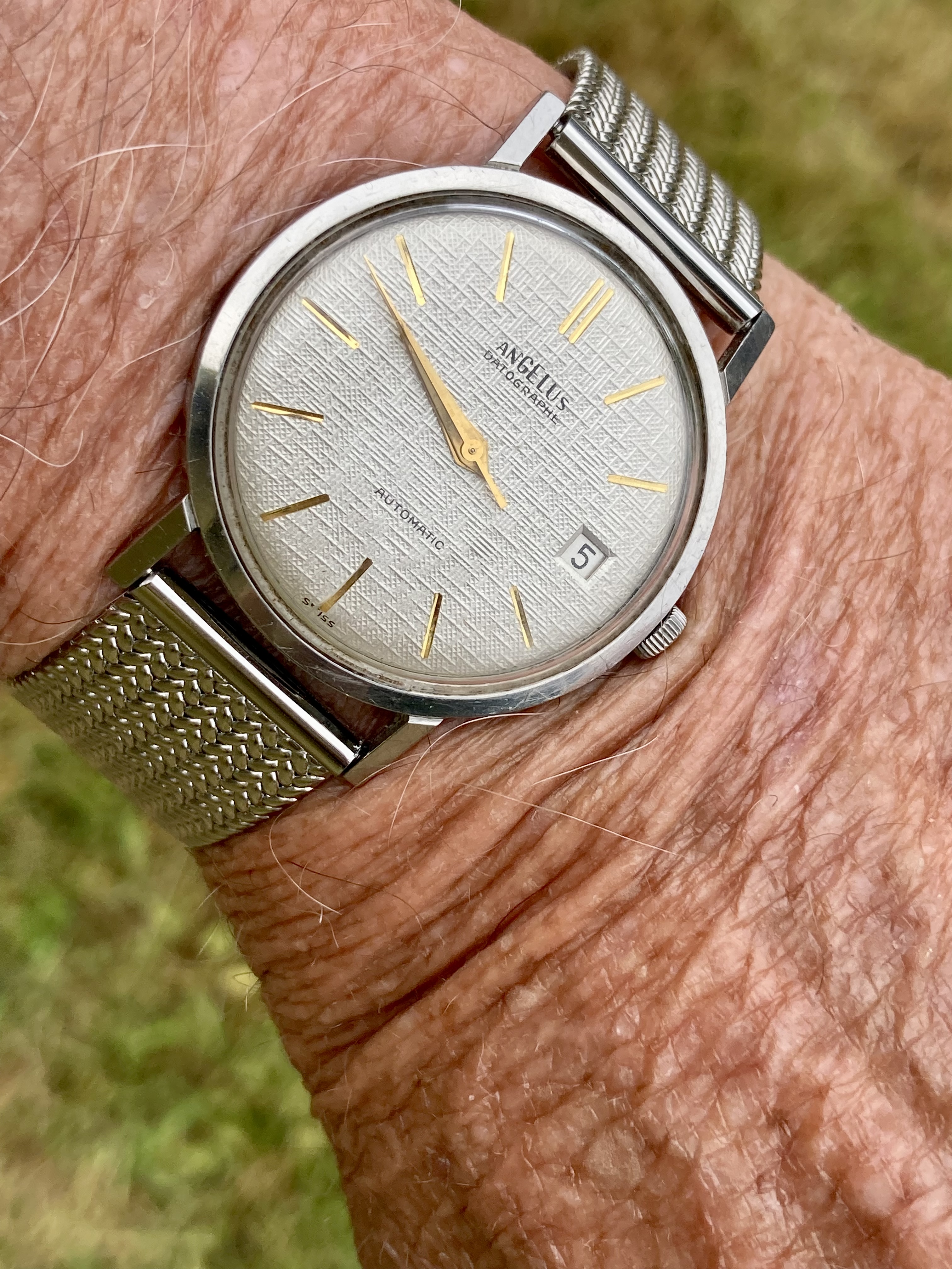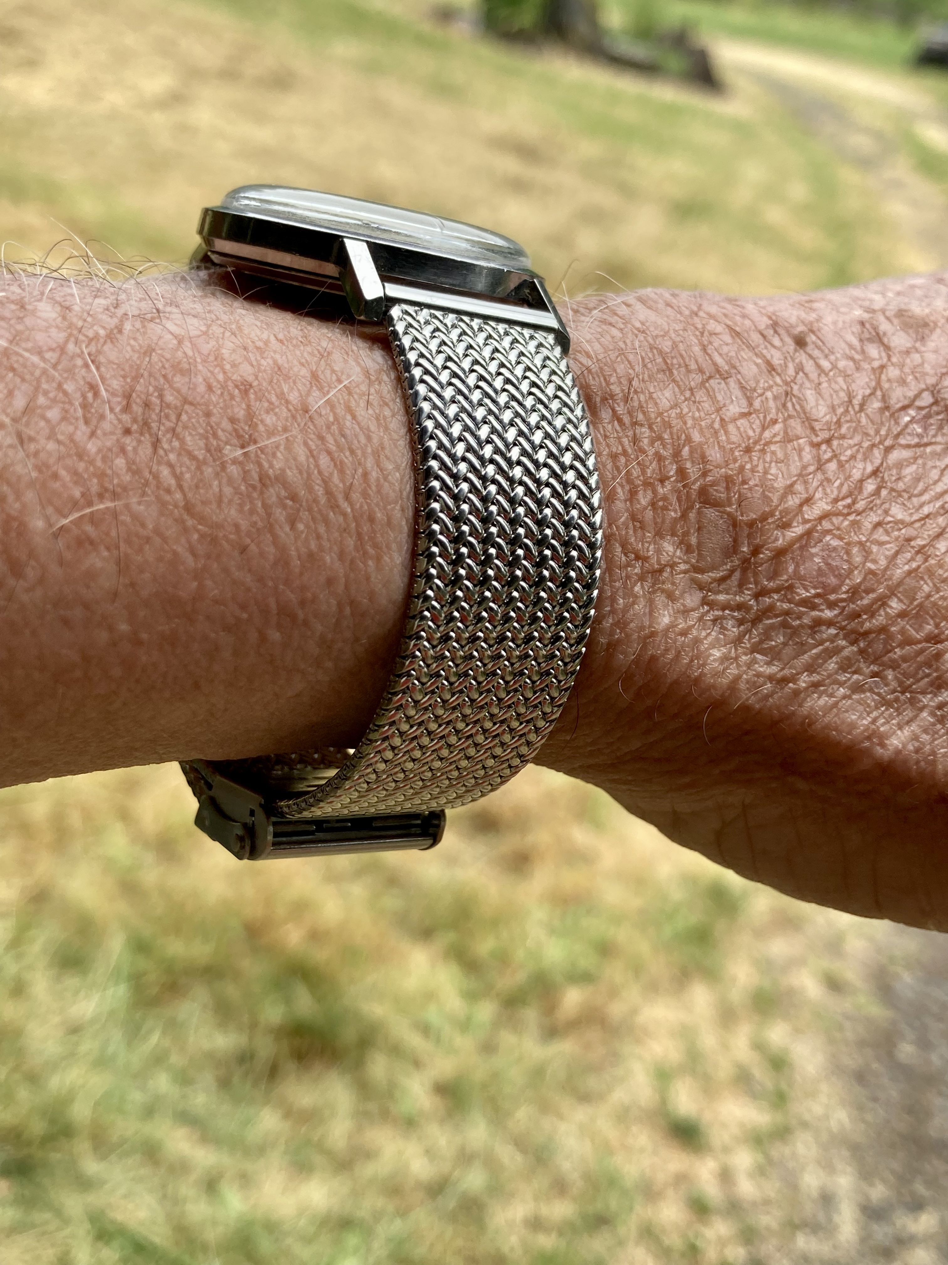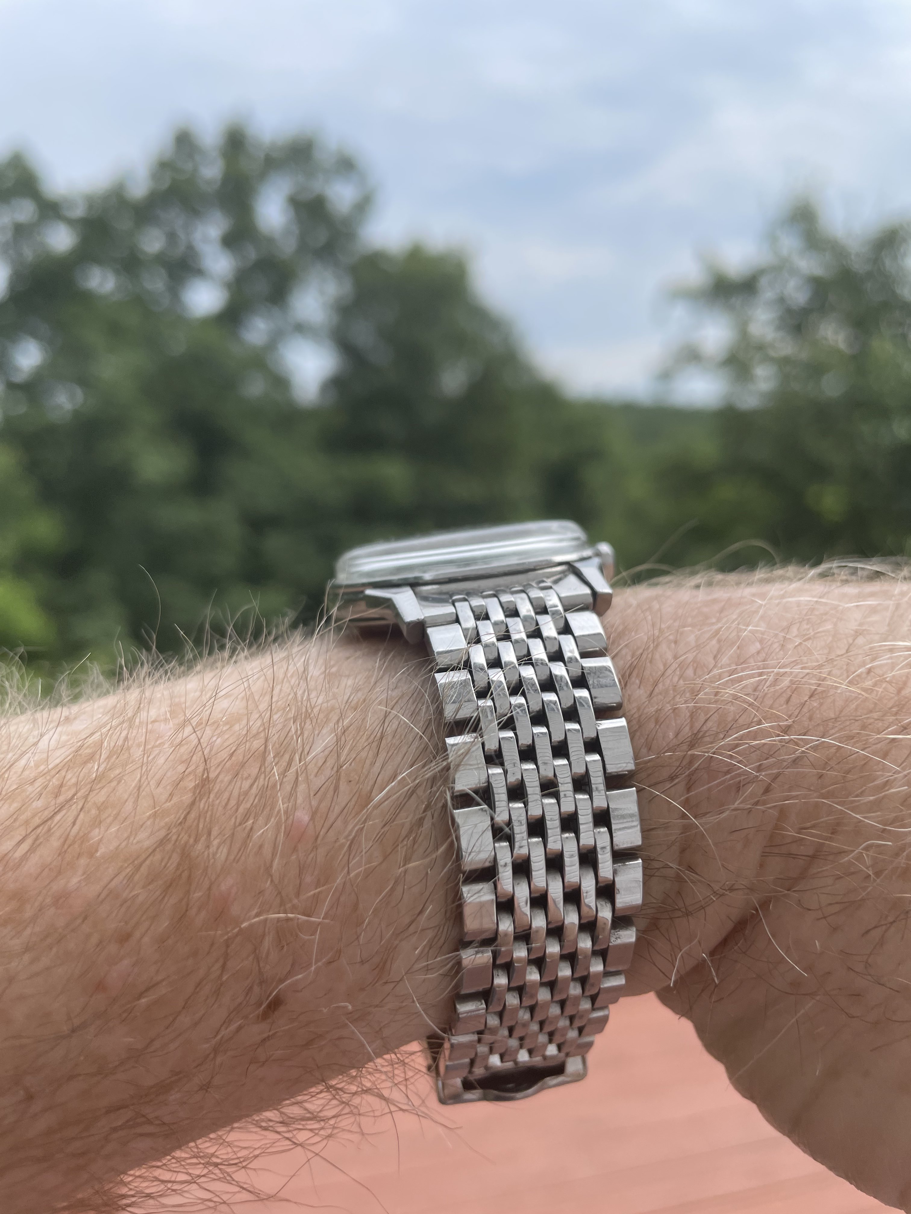 That Hamilton's hour hand looks plum goofy, but it's reflection and distortion introduced by the crummy plastic crystal which has got to go.