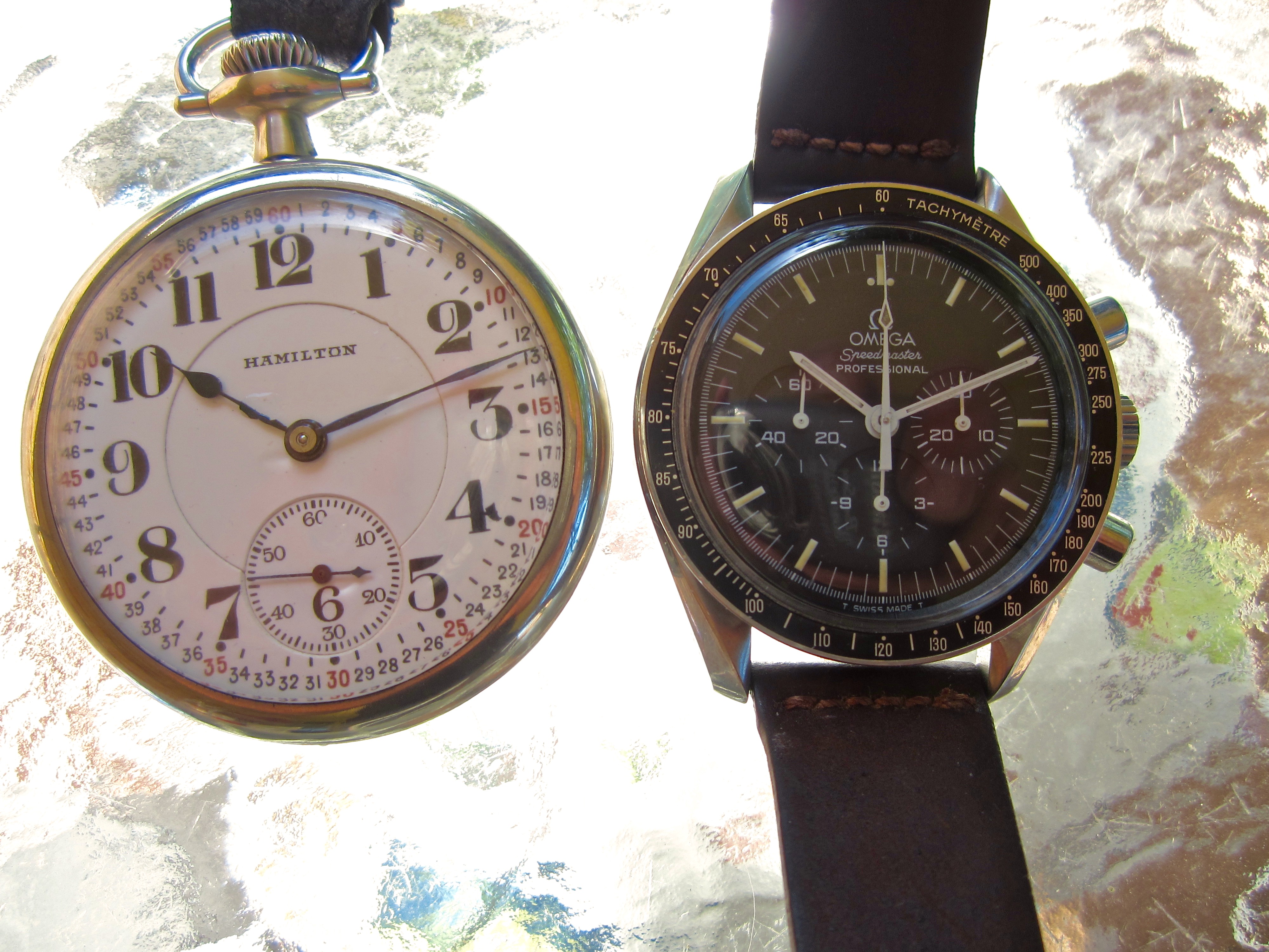 The 1918 Hamilton 992 is running away with itself a bit since yesterday and wouldn't pass railroad standards. A service and a regulation wouldn't hurt. Today's Speedy isn't much bothered by variance and stays well under the requirements. Why it could play with trains!