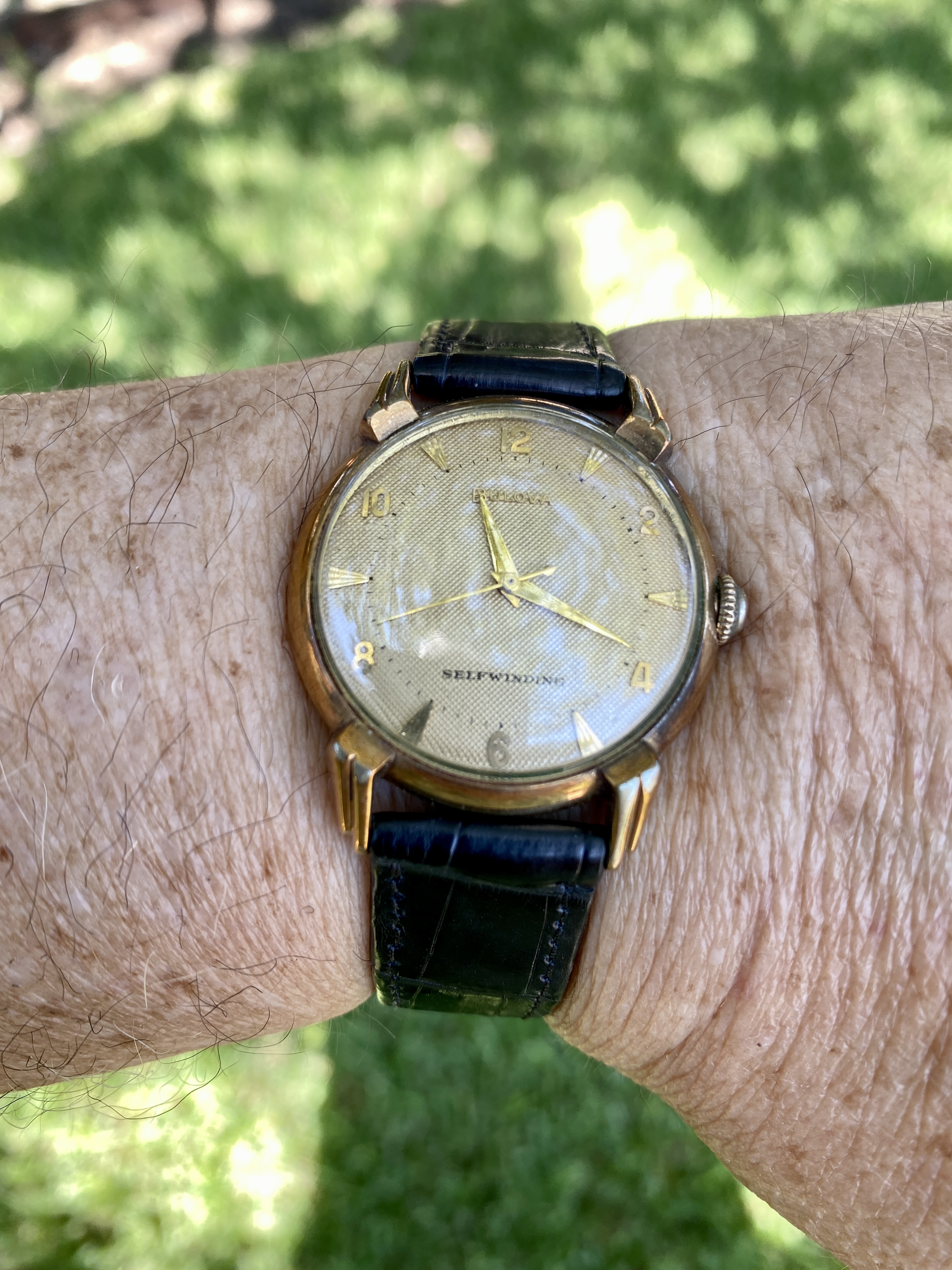 I've had a similarly styled Bulova for years. About 1957 you think? It's got brassing, but it's a good runner, keeping time within a minute for a week which is longest I've ever worn it. It's serviced and ready to go. Need to do better by it and wear it occasionally.