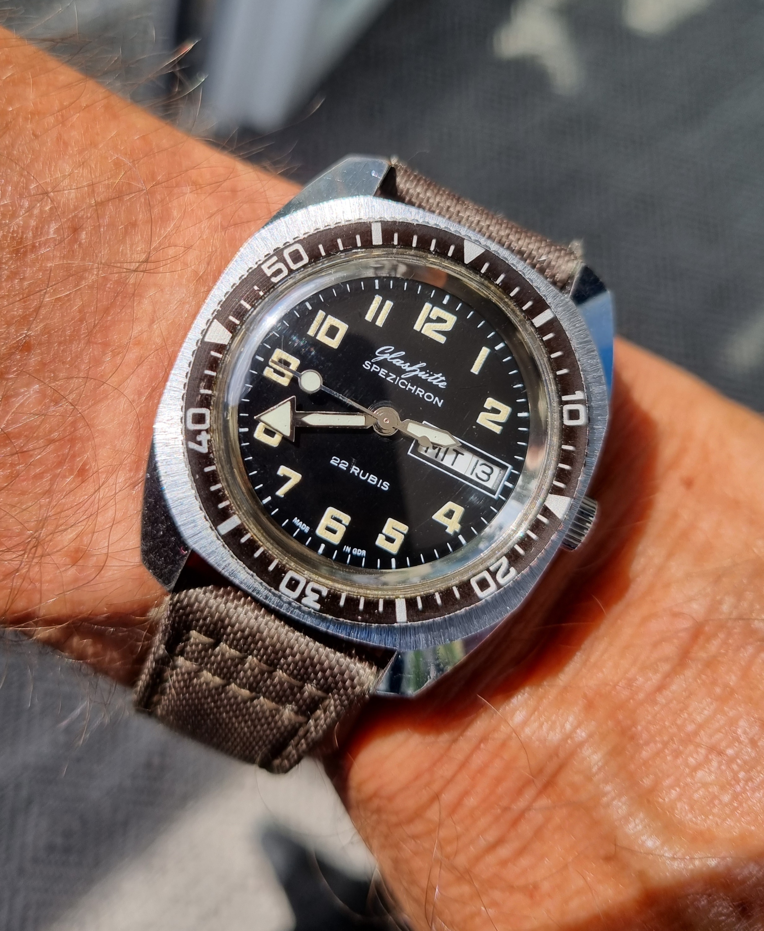 Posts 1,465 Likes 6,456 Aludic ·Jul 13, 2022·@SpeedyBirthYear A new addition, thanks to a fellow forum member. Amazingly comfortable and in a lovely condition. A joy to watch! (next step: swap the crown for a correct hexagonal one) Edited: Jul 13, 2022