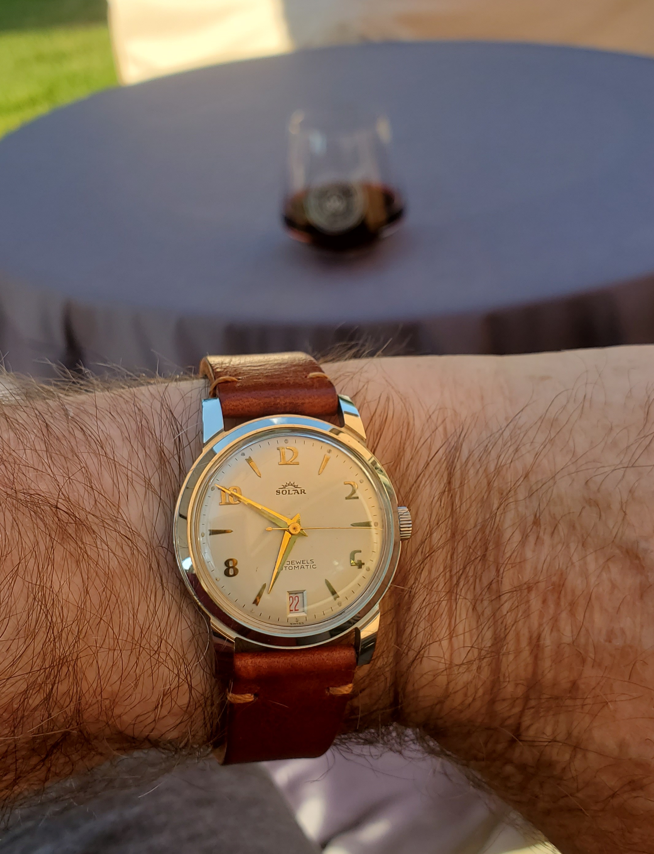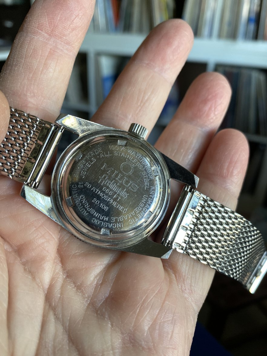 Whats not to love about a diver that sports the “Devil Diver” as part of its name! Add in broad arrow hands and a huge honkin’ lollypop sweep seconds and what else is left to say!! - Rare and early 1960’s Milus Archimedes-666 “Devil Diver” Ref. 30.105 - cal. 2742. The Milus logo represents the crowned head of the Greek god Hermes. It represents the brands strength, elegance and innovation. @TexOmega don’t you have (or didn’t you have) one?