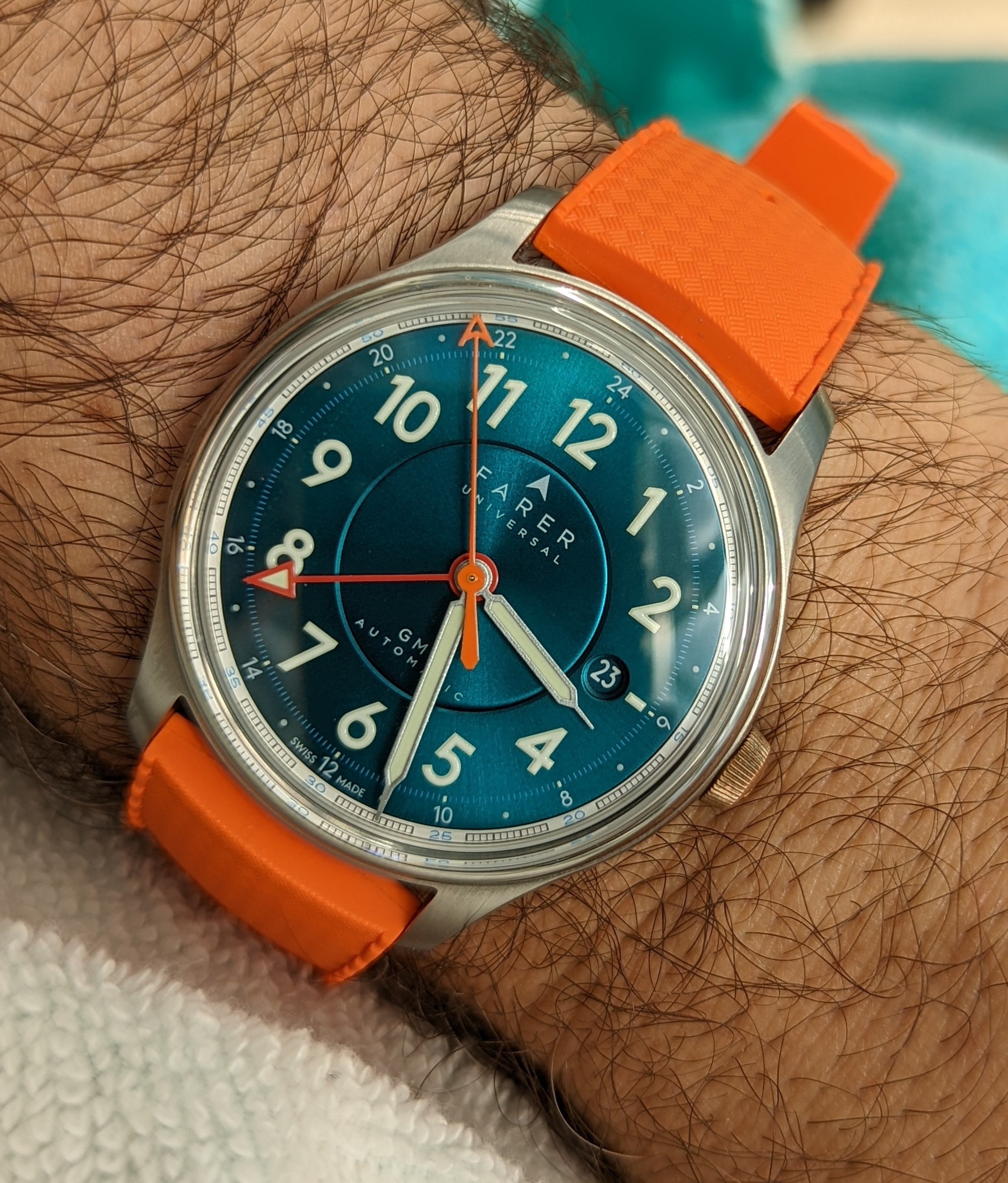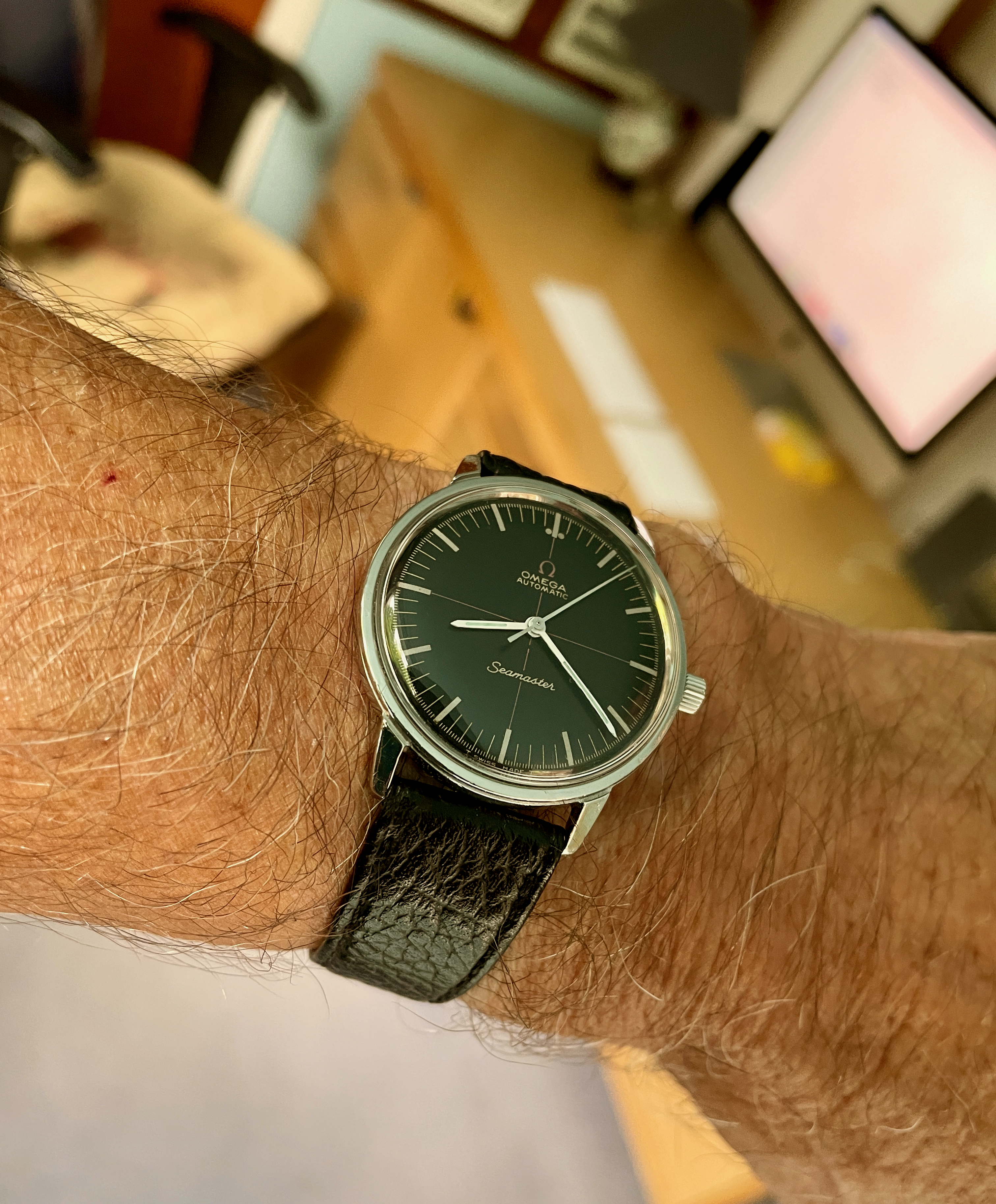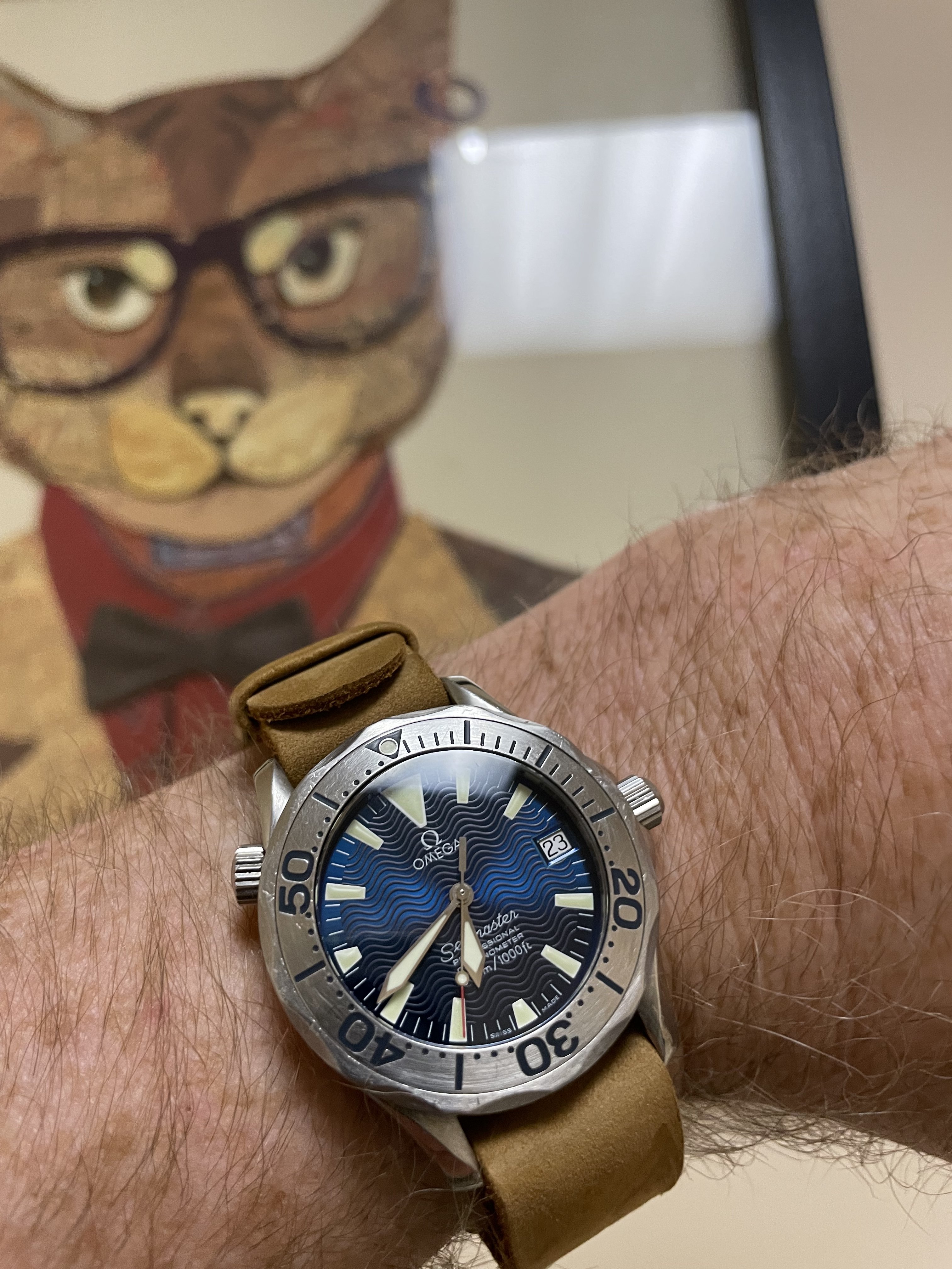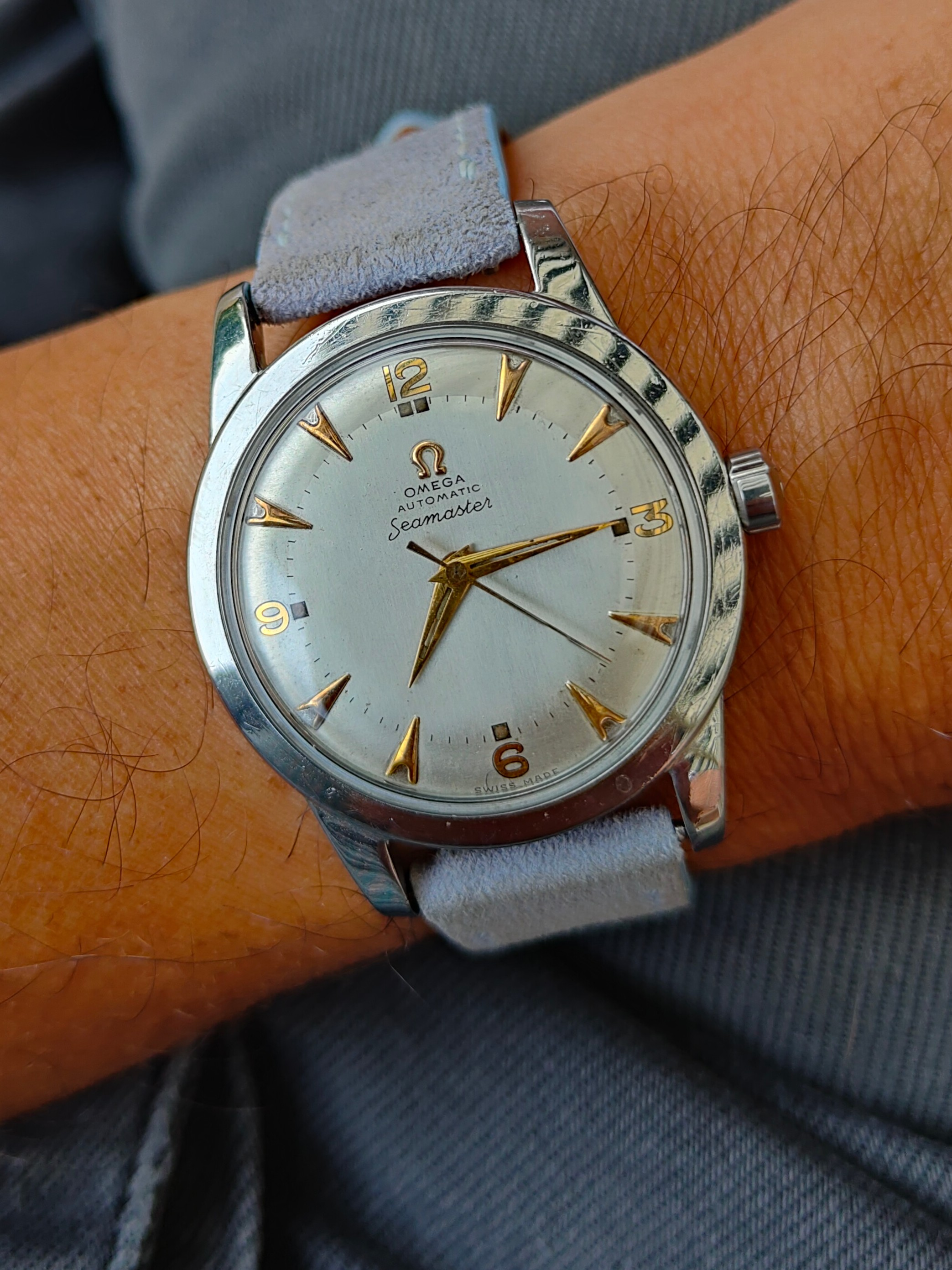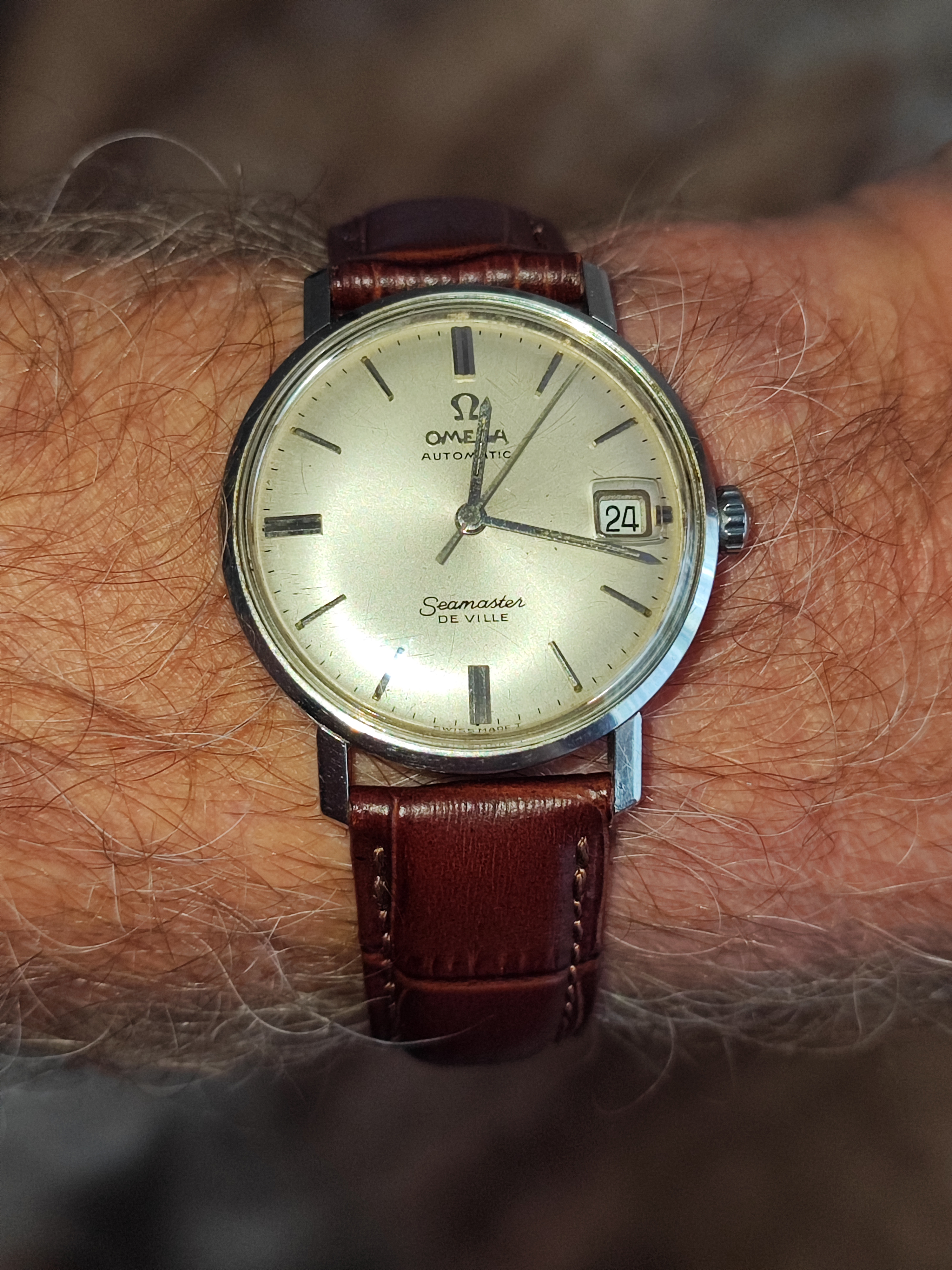 Back on the strap today. Didn't take me long to realize the bracelet takes away from the vintage charm, for me anyway. I may look at getting a forstner flat link for it.