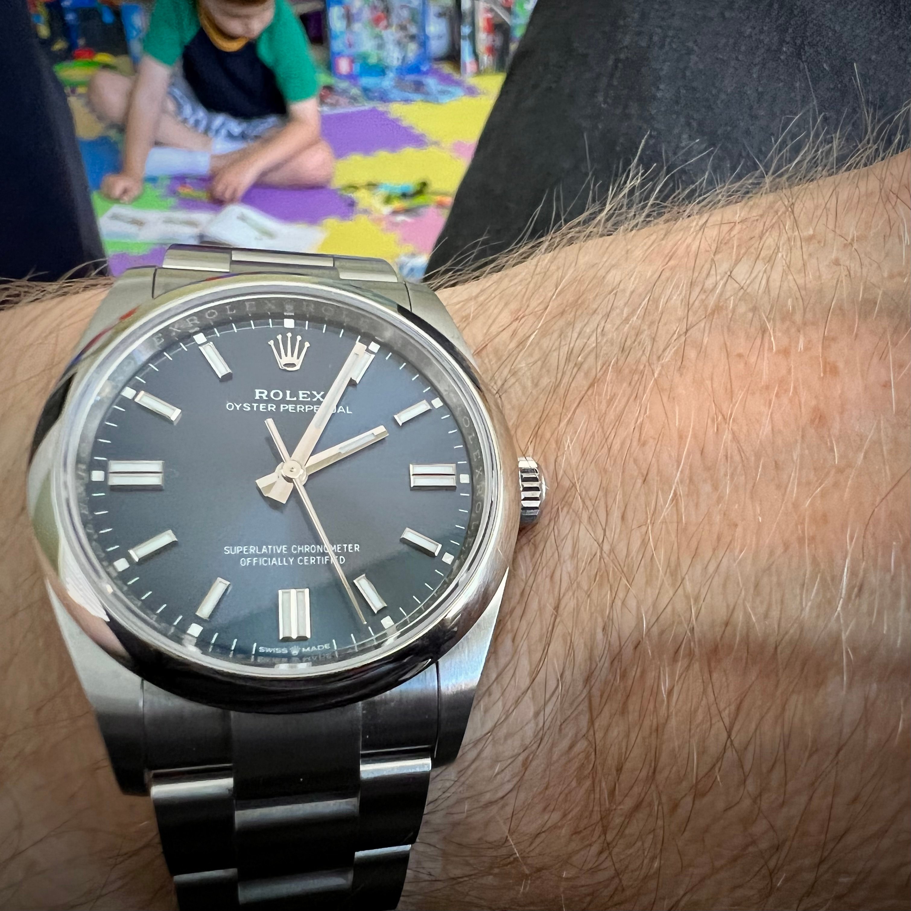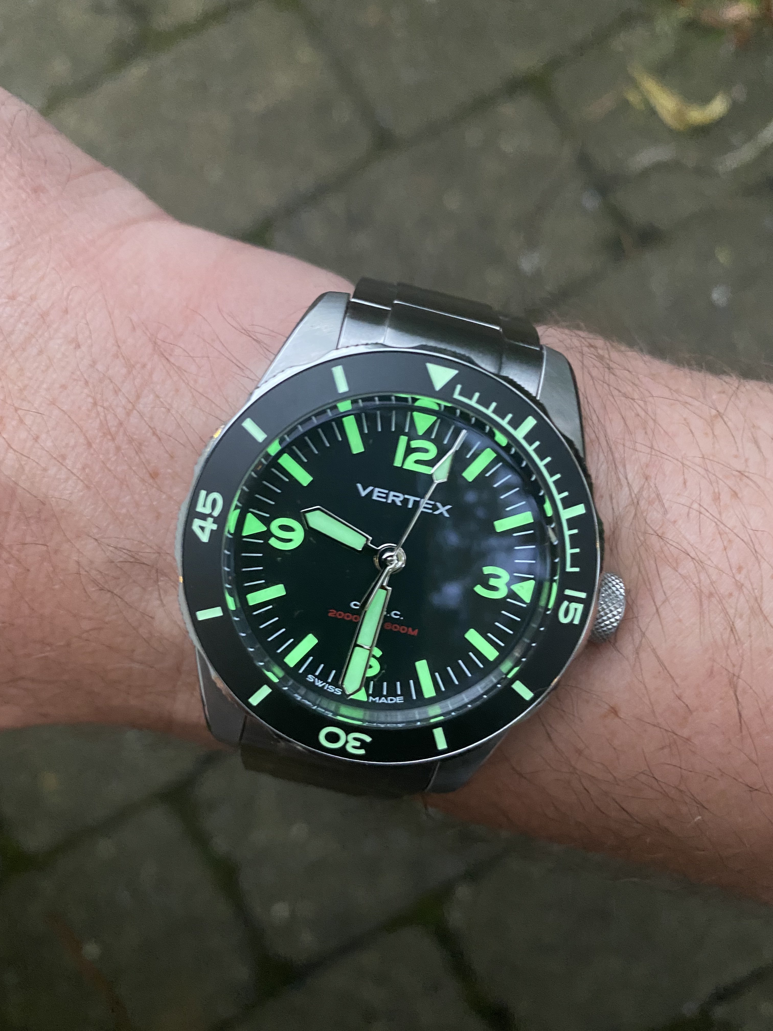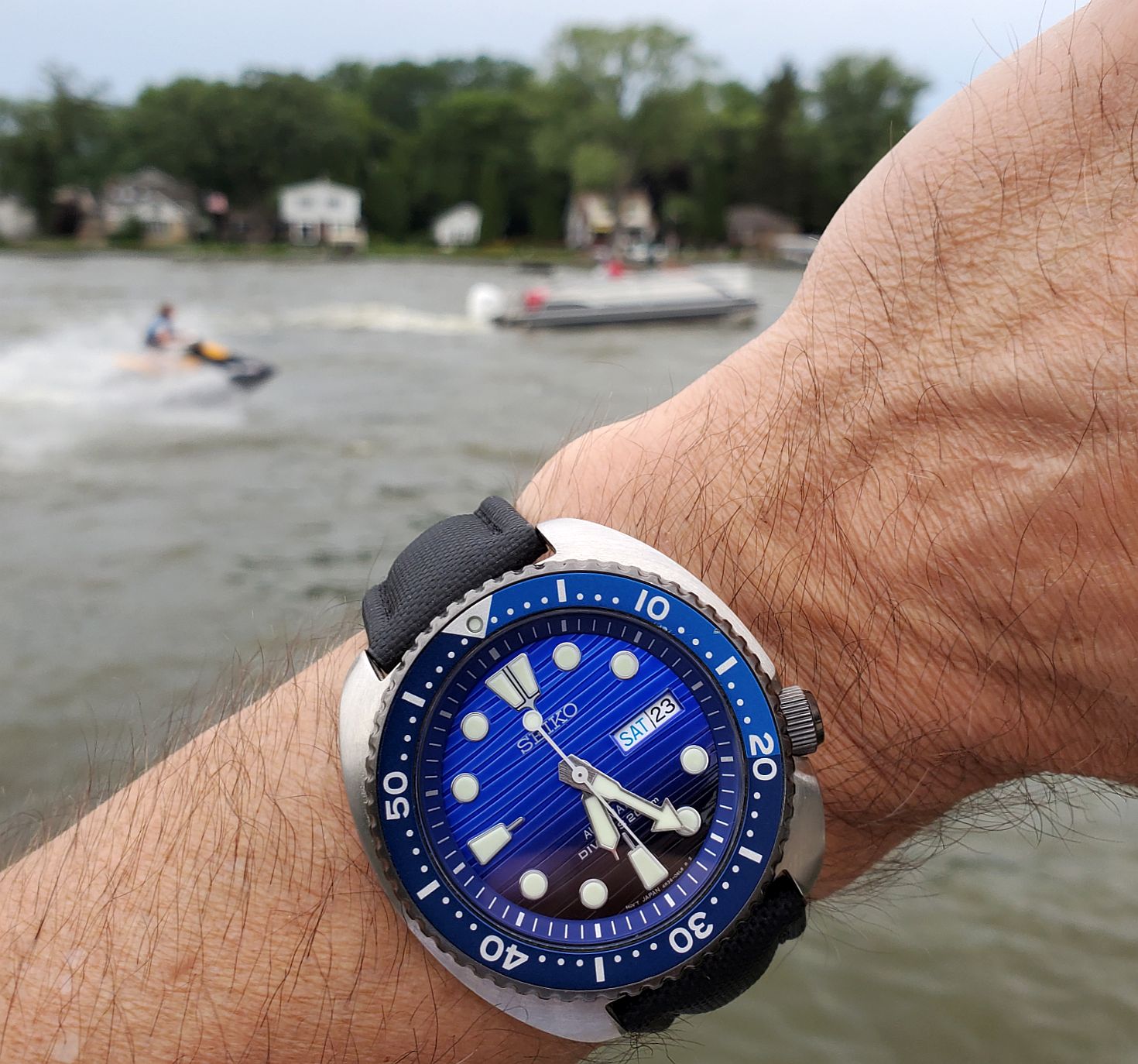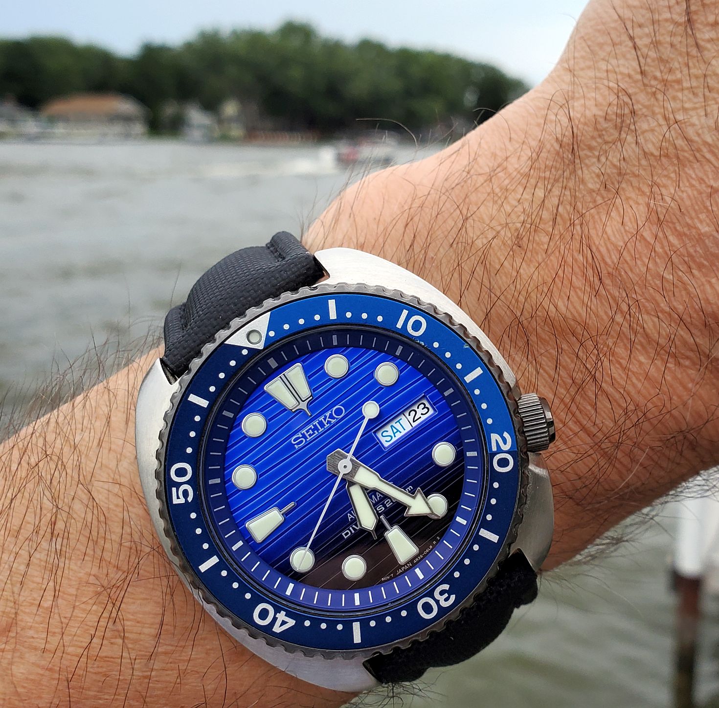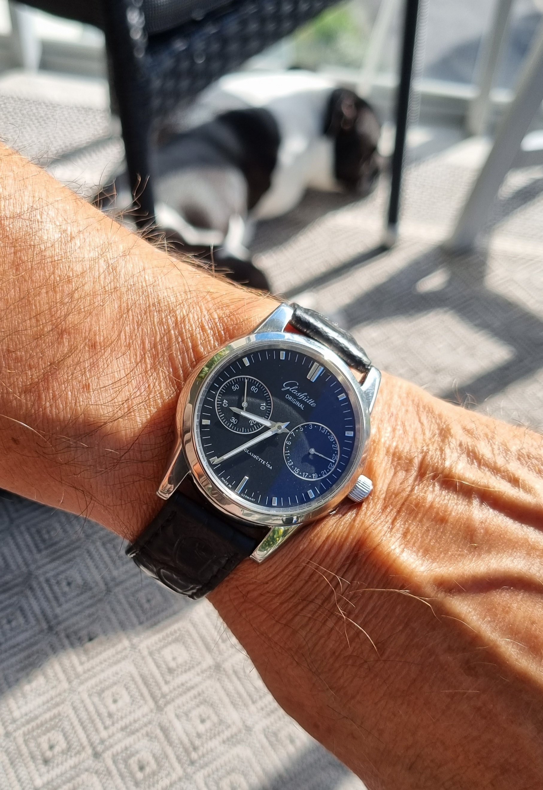 Back on the strap today. Didn't take me long to realize the bracelet takes away from the vintage charm, for me anyway. I may look at getting a forstner flat link for it.