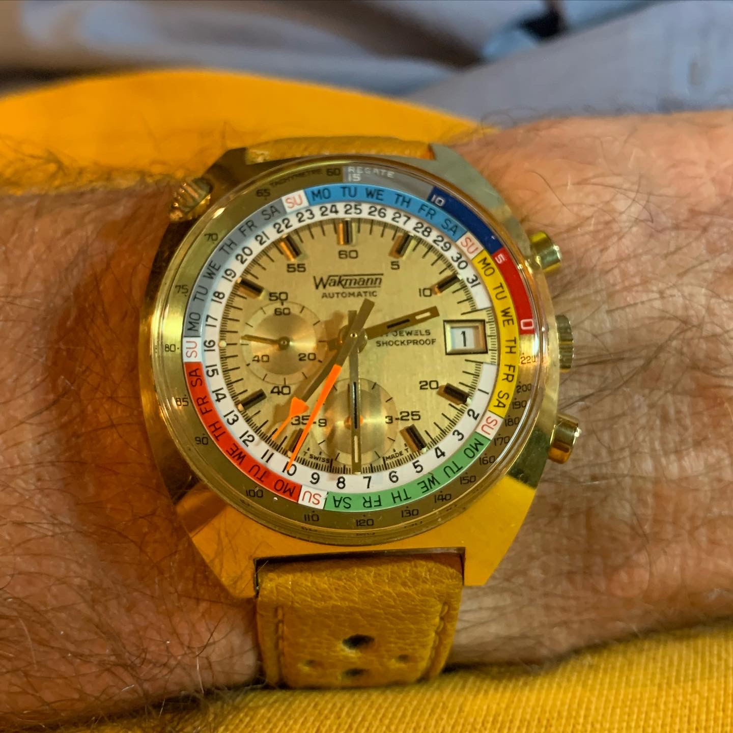 Posts 2,053 Likes 22,099 Norfolk ·Jul 31, 2022 Here’s a bit of brightness. On a strap I designed and am now making available to other collectors - the RalStra Driver in Hip Yellow- available at www.rallystraps.com.