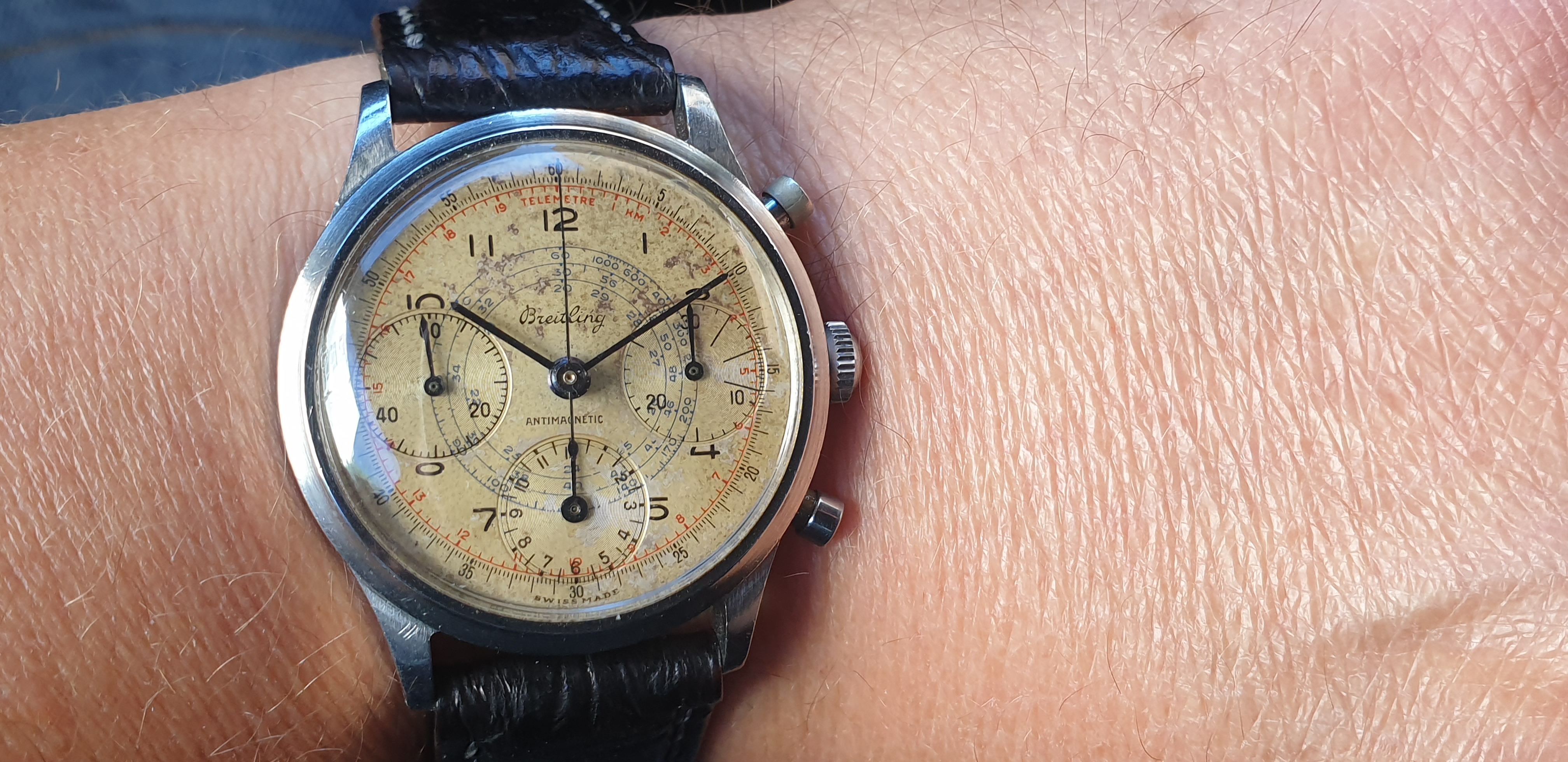 Wearing an icon today. One of the first Seamaster automatic series, reference 2576, subsecond version. Fully original except for the Ostrich strap. And she is a looker. 😀