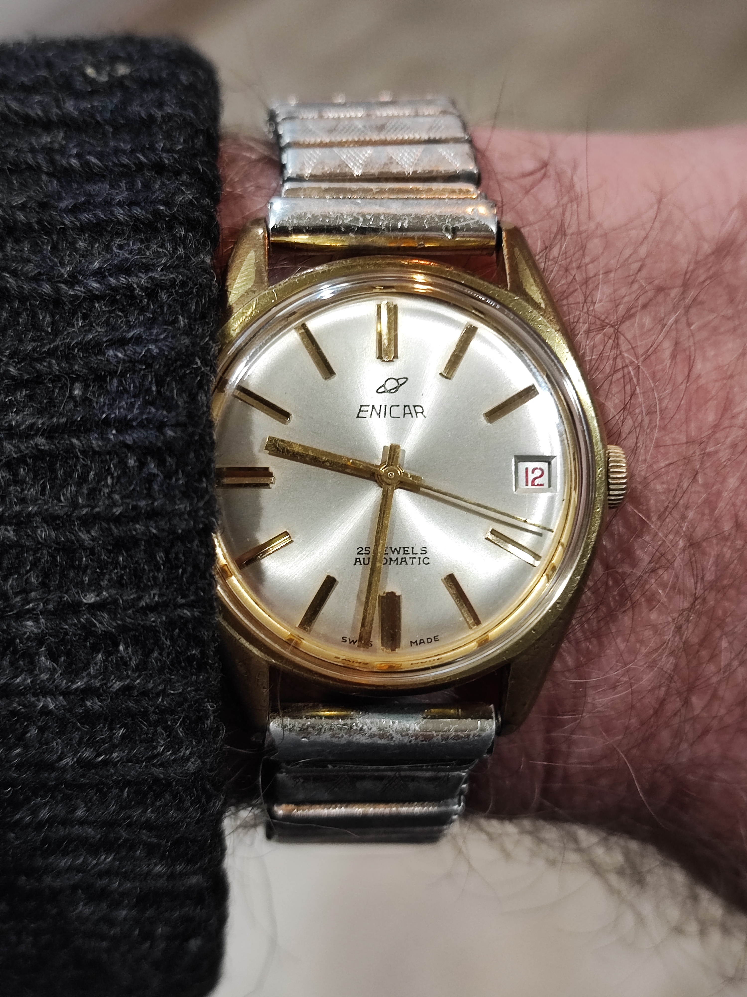Been wearing a selection of new to me watches today and have ended up with this Ocean Pearl 25 Jewel Enicar.