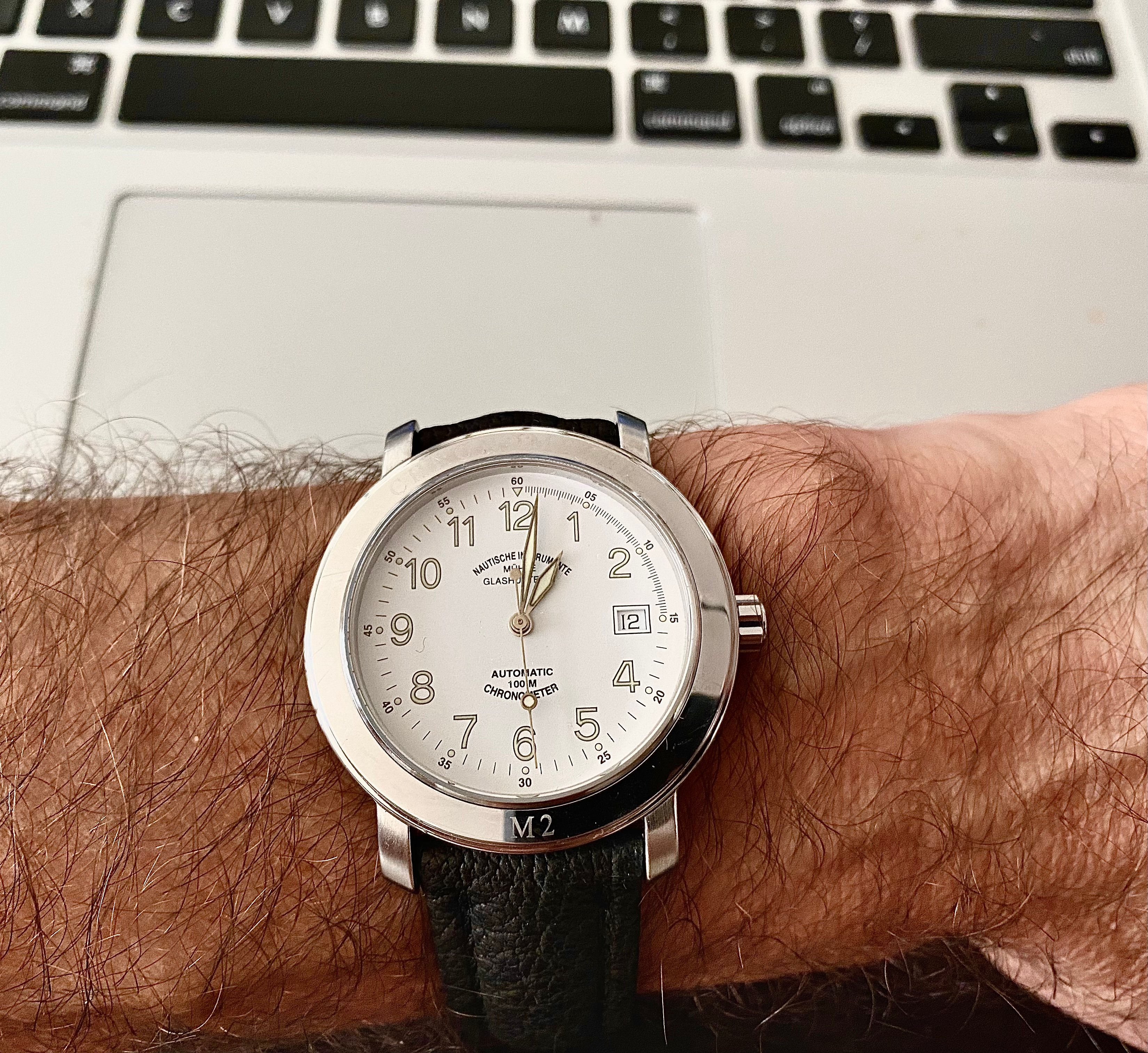 Posts 1,395 Likes 6,545 mydeafcat ·Aug 12, 2022 My 1999 Muhle M2 for this Flieger Friday. Just don’t tell the litigious folks at Nomos. 😜