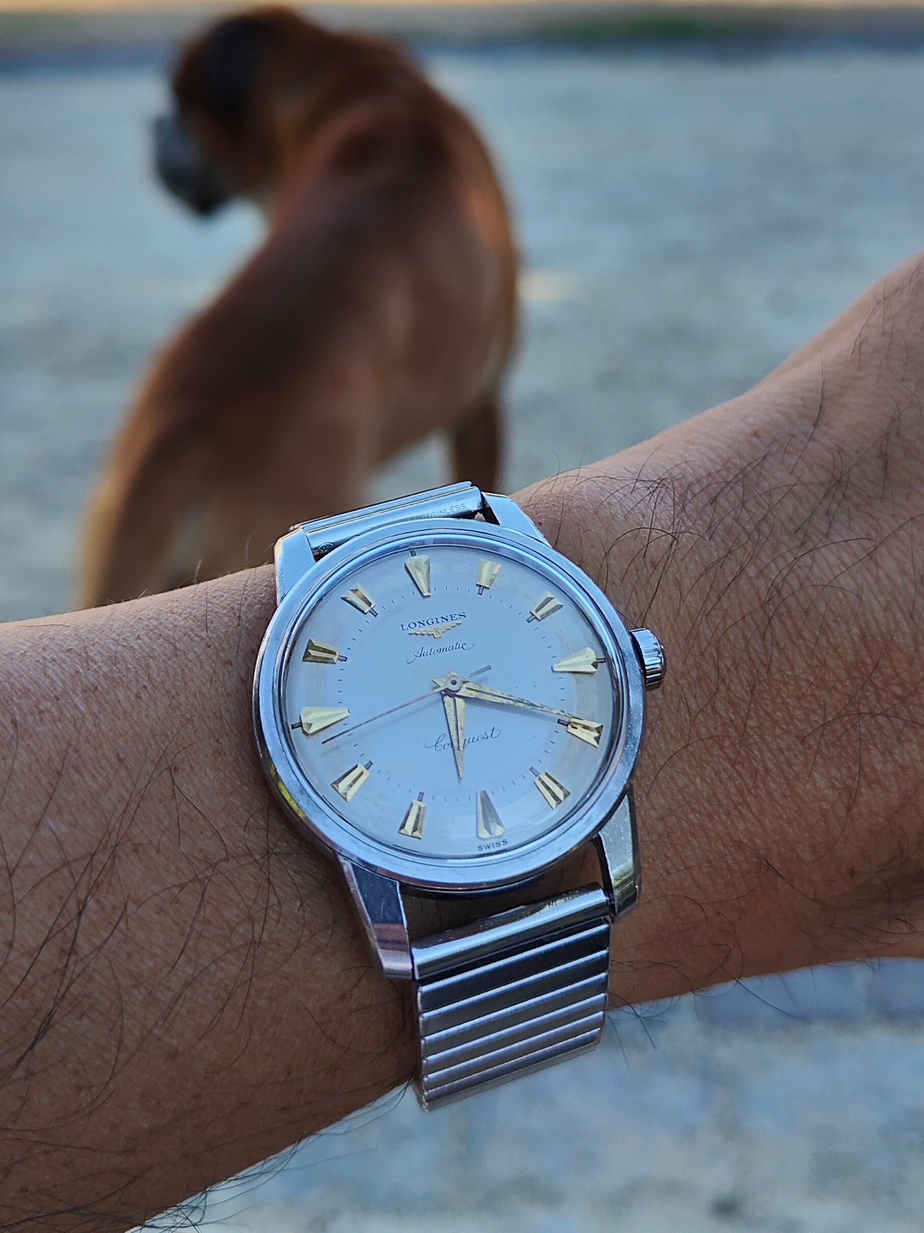 Posts 7,293 Likes 76,576 dougiedude ·Aug 12, 2022·Carpe horologium! Another Longines: 1961 Flagship ref 3408 cal 341 in 18K 😁