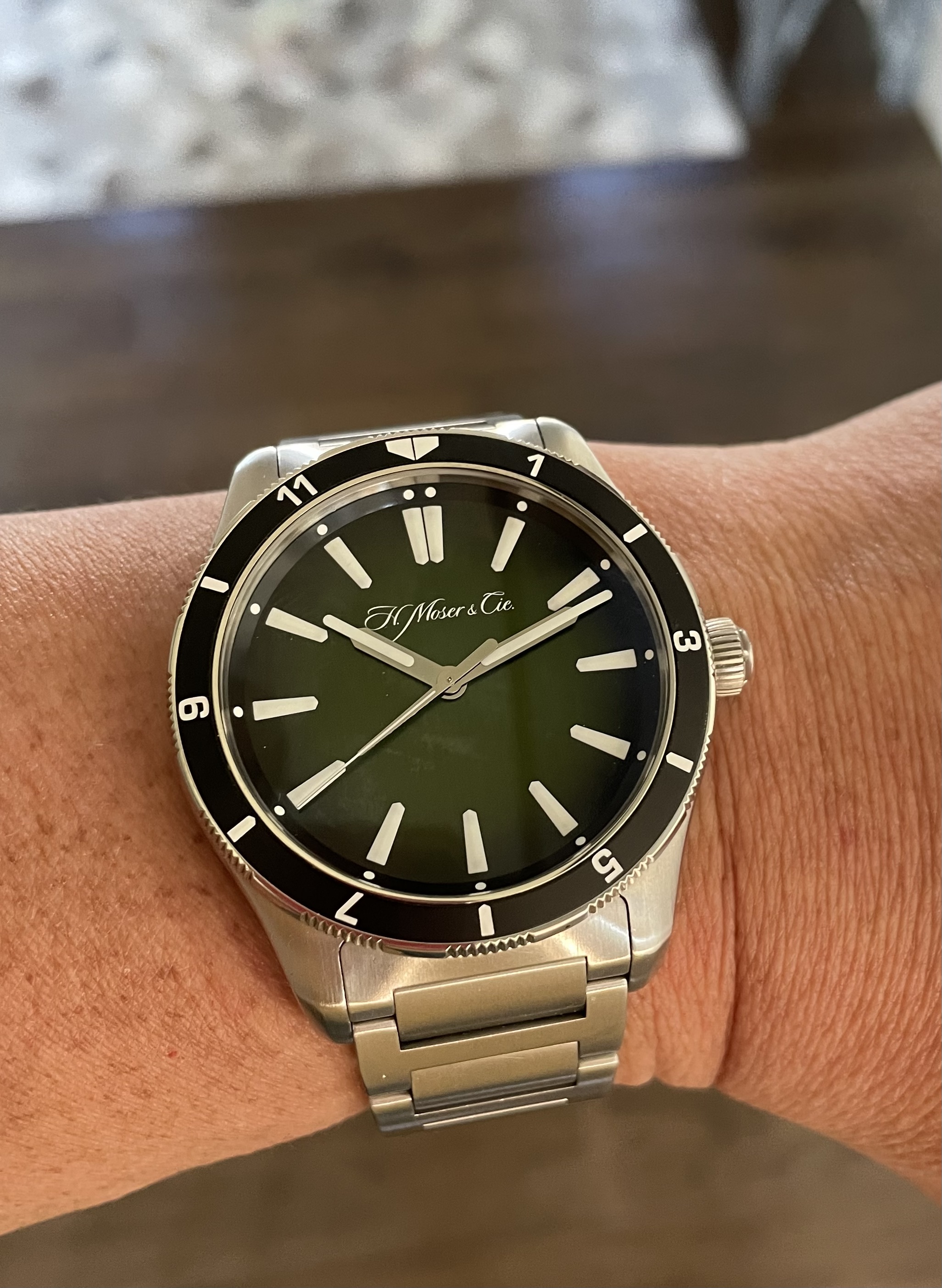 Posts 10,667 Likes 52,019 Walrus ·Aug 12, 2022 Paedipod and hello from "hulk"ing big brother....42mm and SS (the Moser dials are wonderful) Wow