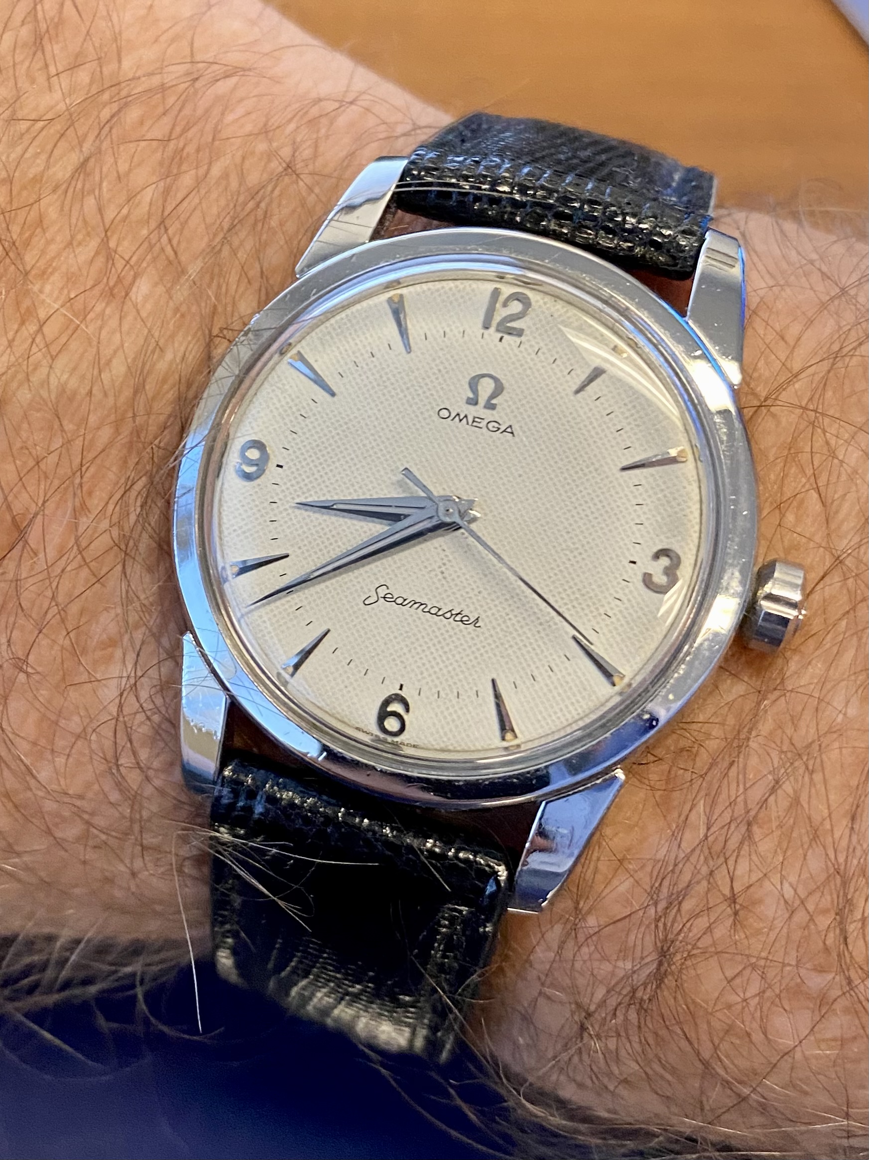 Posts 9,693 Likes 54,213 gbesq ·Aug 31, 2022 Good day all. Today’s choice is a 1956 Seamaster 2761 with a waffle dial.