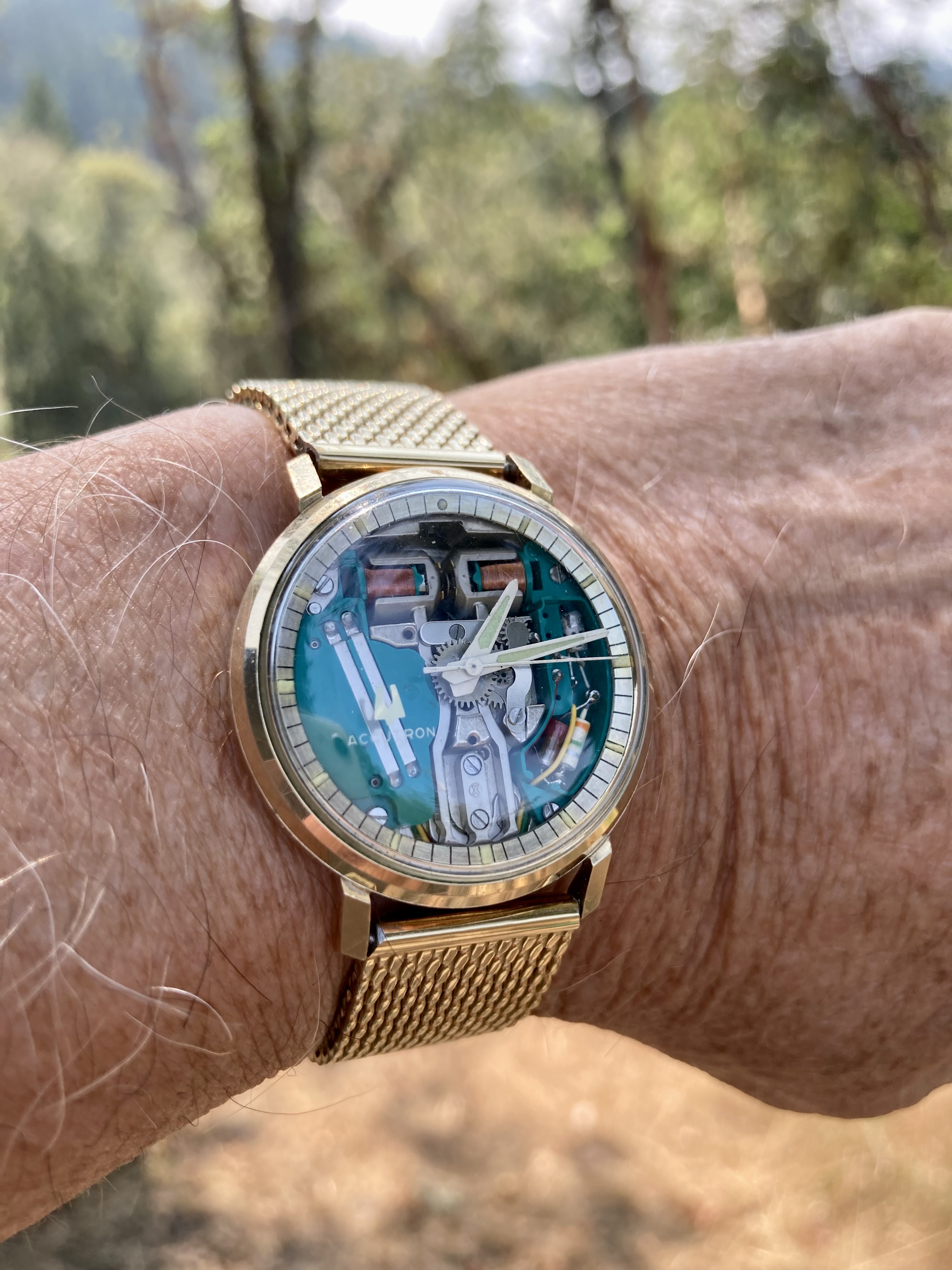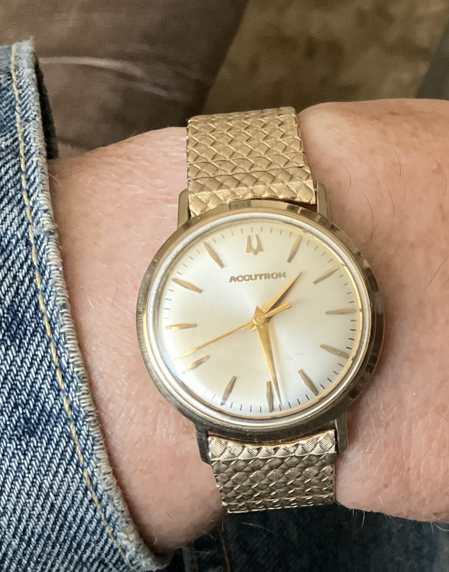 Probably my favourite watch. Please forgive me for showing it for the umpteenth time. This is my one owner (me) Bulova Accutron from 1964. It is soon to be 60 years old. Looks like new, runs like new. I have worn this watch on most days that were significant, in those decades (our wedding in 1966, our son’s christening in 1972, to Expo ‘67 in Montreal, at our 50th anniversary banquet in 2016, at our 55th wedding anniversary soirée in 2021.) The gold filled case still shows no brass. The dial is a NOS duplicate of the original which was spoiled when I was caught in a rainstorm in the line up to get into the Czech Pavilion, at Expo ‘67.