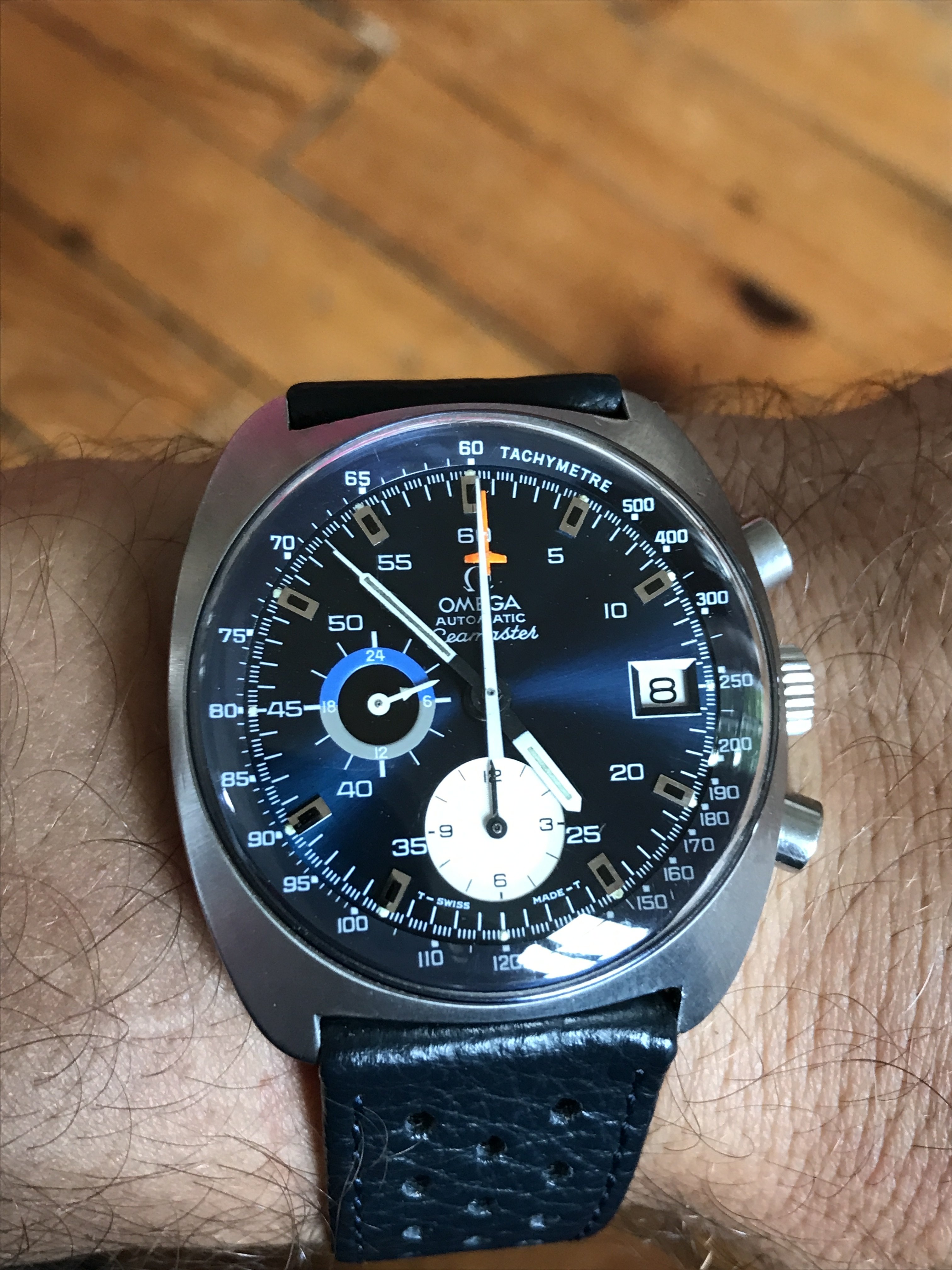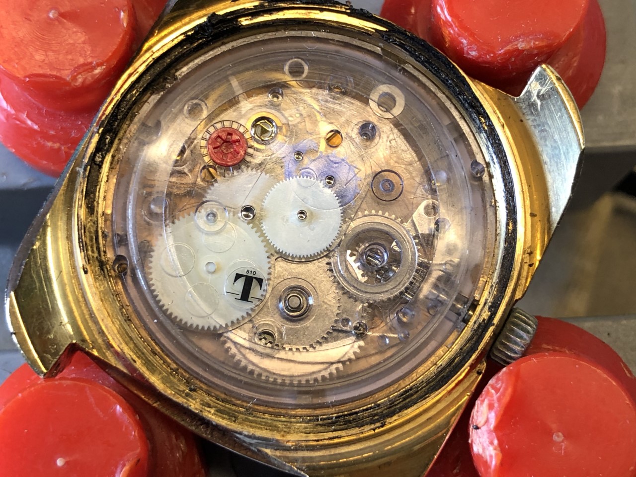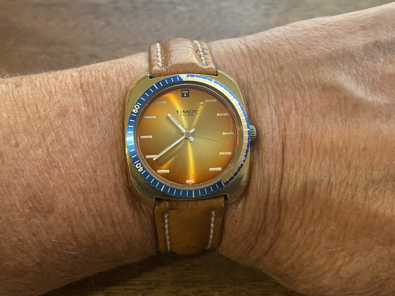 Slightly modded Tissot circa 1971 powered by Tissot's Astrolon 2250 movement, a.k.a. SYSTAL (Systeme Total AutoLubrification) -- i.e., an all-plastic self-lubricating movement. Here is a link to an article about the Astrolon 2250, for those interested in learning more Tissot Astrolon: the synthetic revolution | Watchonista