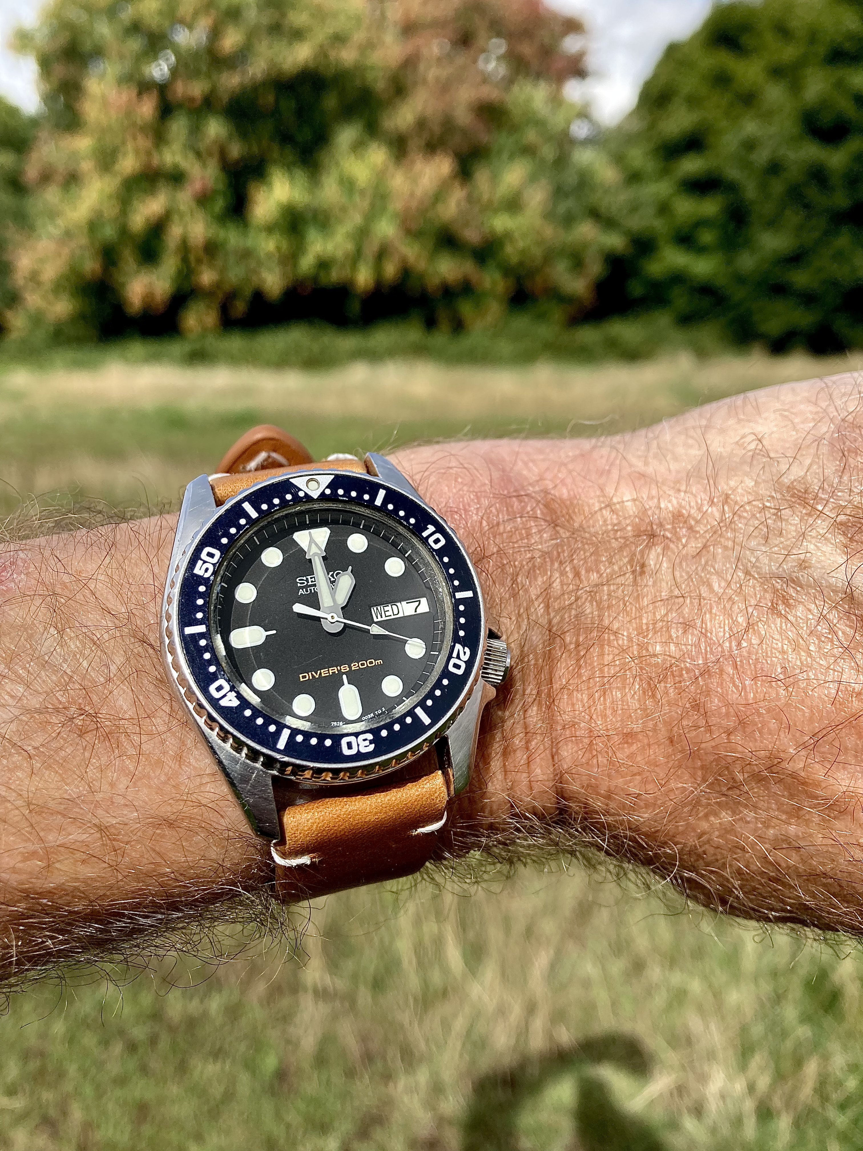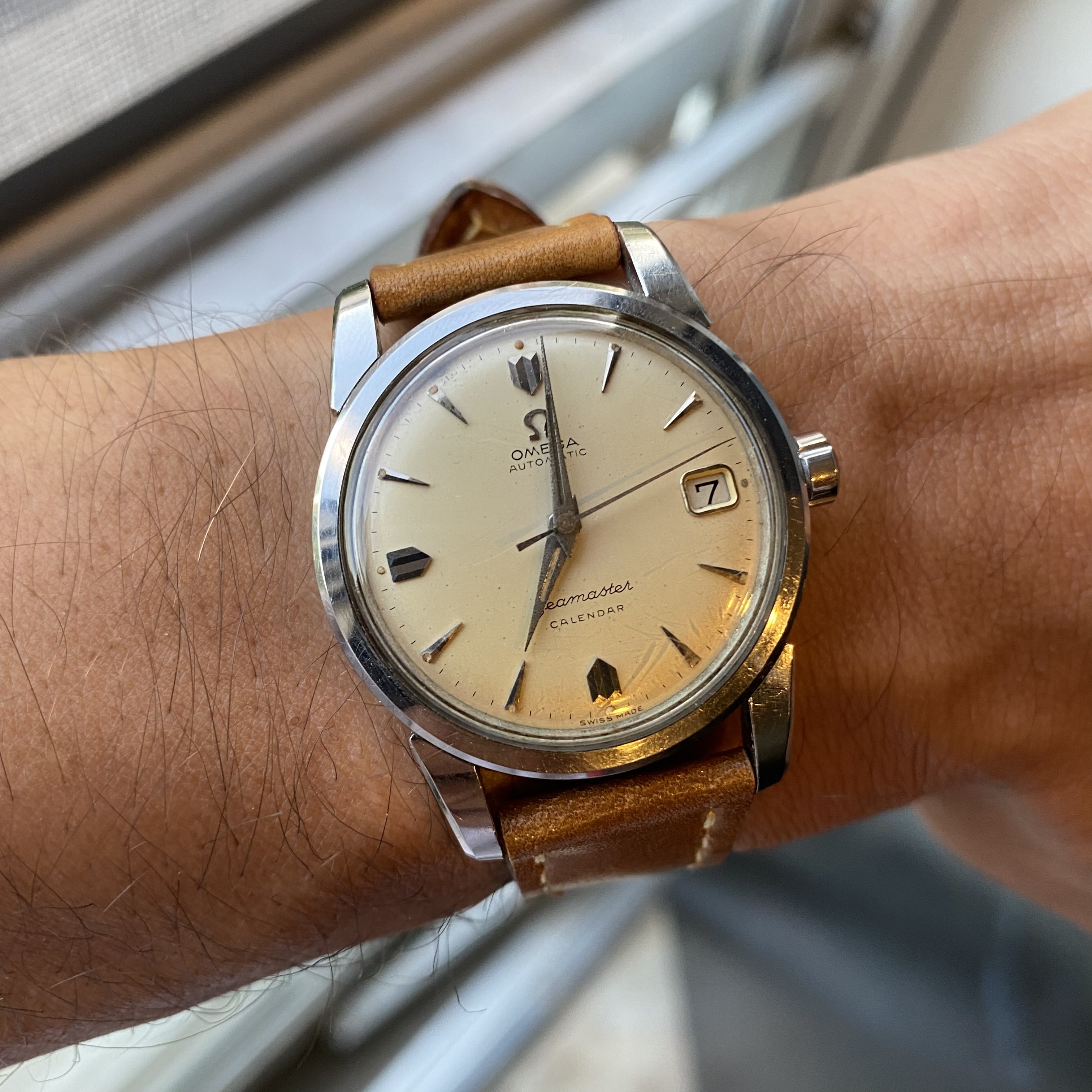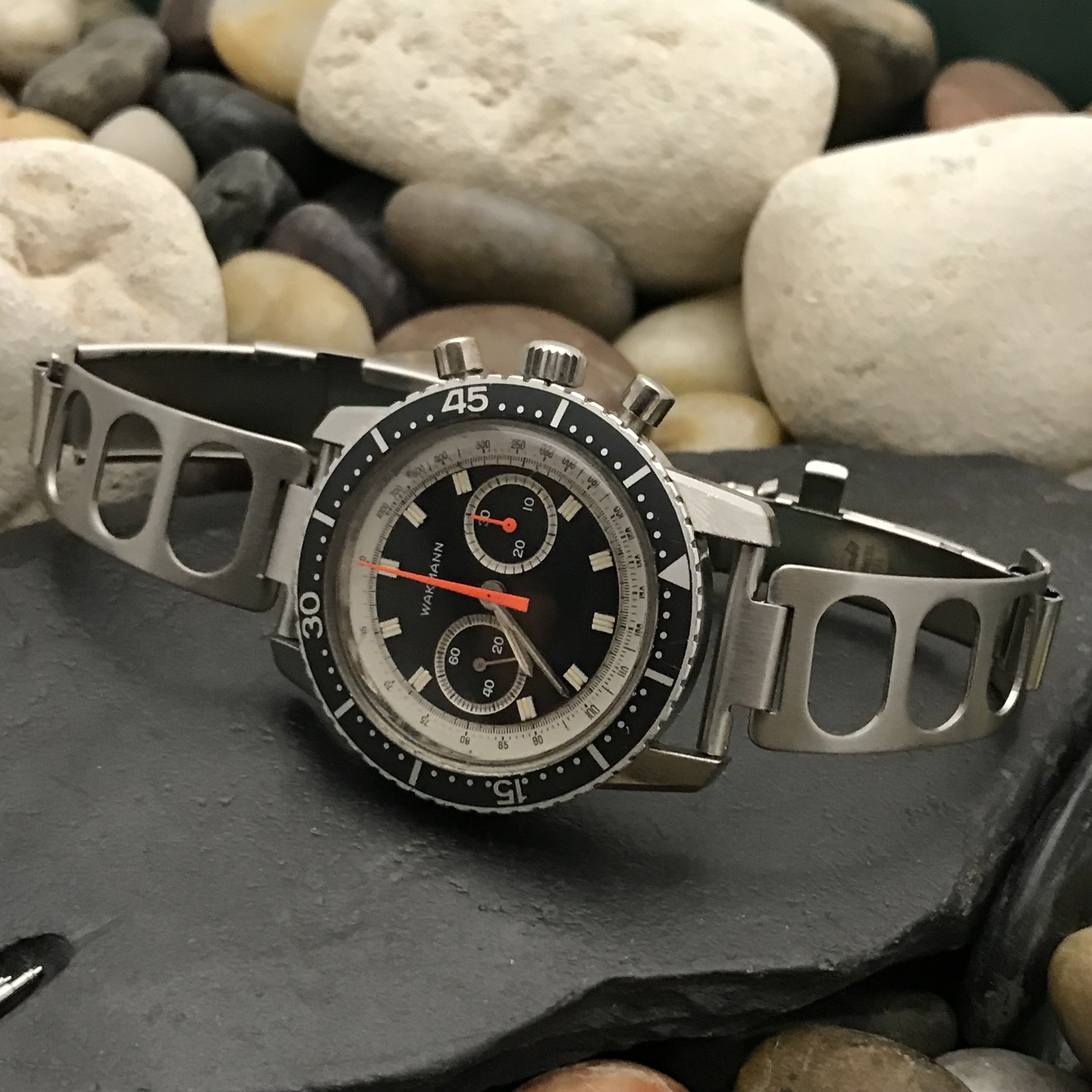 Slightly modded Tissot circa 1971 powered by Tissot's Astrolon 2250 movement, a.k.a. SYSTAL (Systeme Total AutoLubrification) -- i.e., an all-plastic self-lubricating movement. Here is a link to an article about the Astrolon 2250, for those interested in learning more Tissot Astrolon: the synthetic revolution | Watchonista