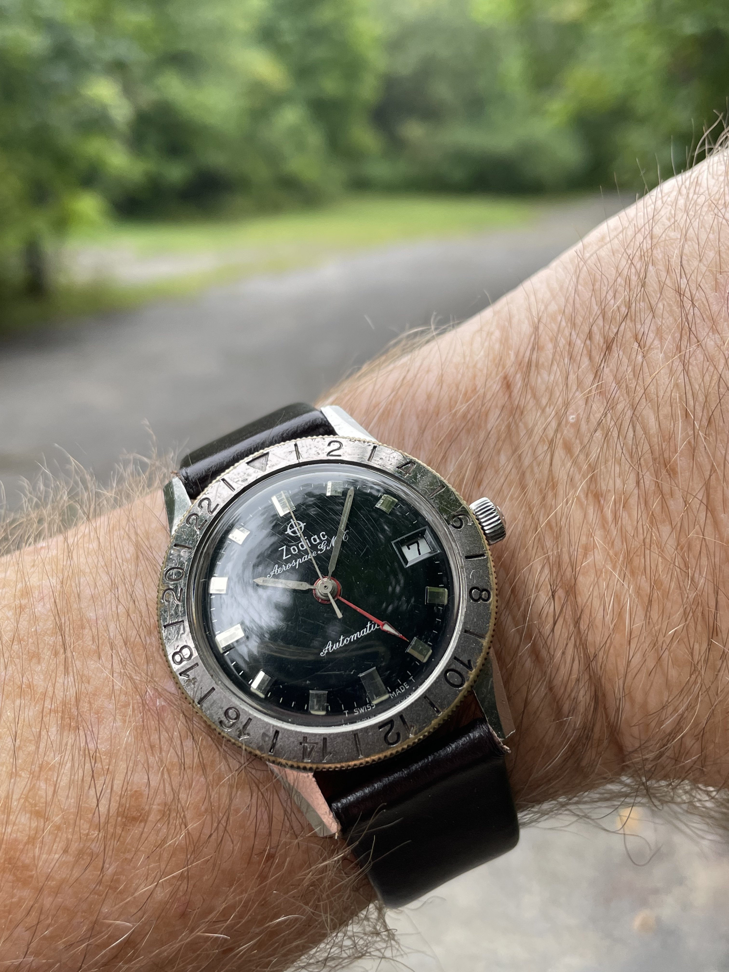 Not in great condition but my only gmt. Haven’t worn it in a while. Nice to see the water level back up on the trails. Three days of rain changed a lot. There was a otter or beaver in the pond. I have not seen him here prior. Can’t get a very good picture of him.