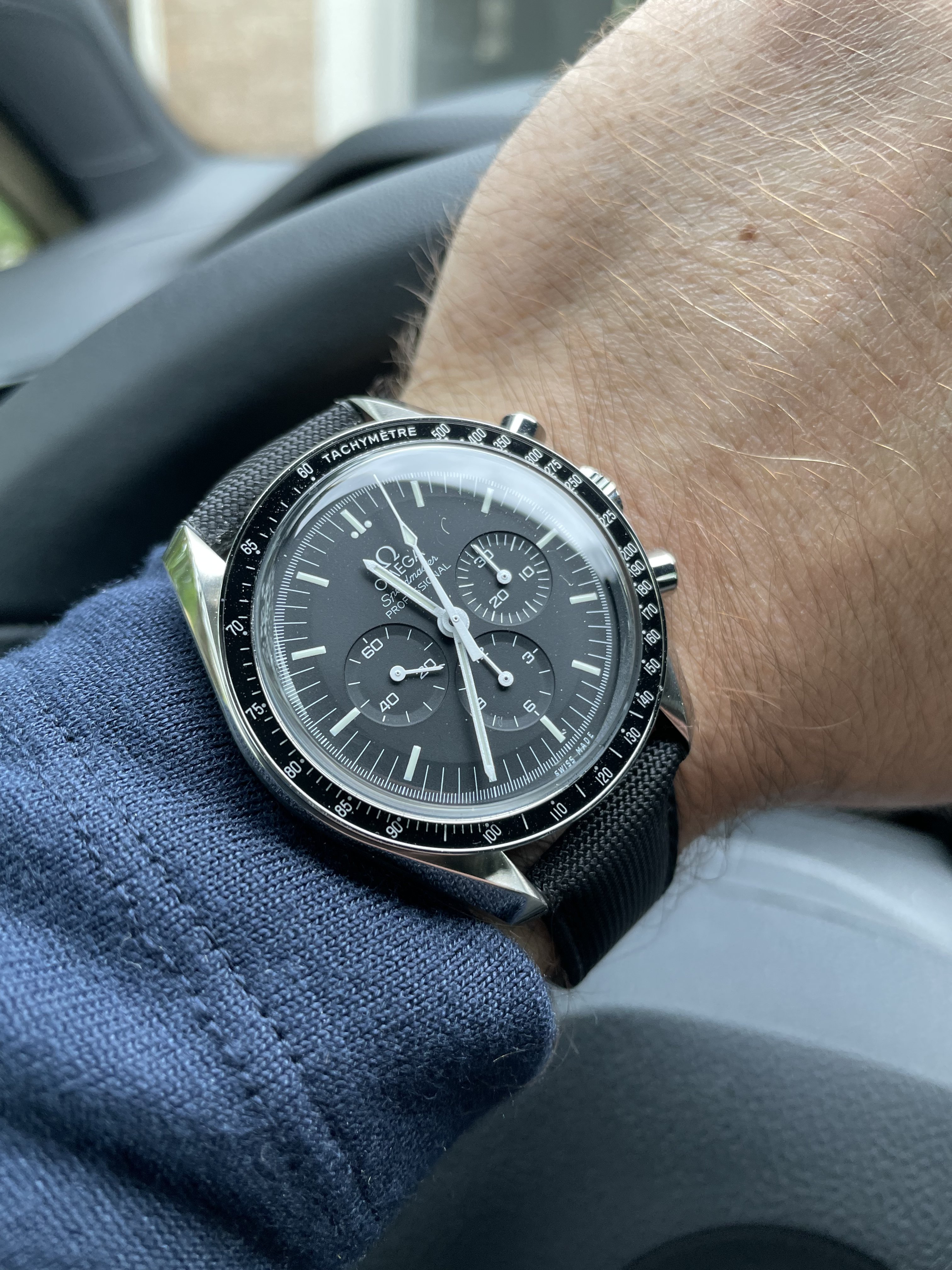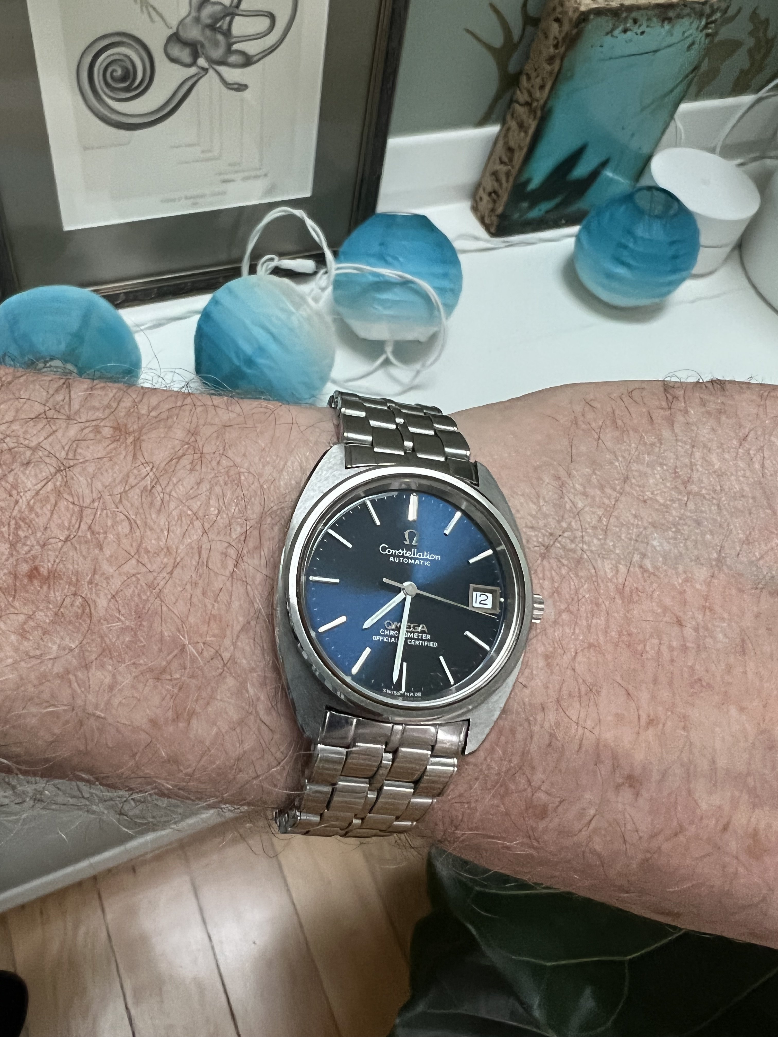 Monday already? Time for my 168.0056... I prefer the first generation of the c-case, but this sunburst blue dial and white hands/writing always pops. And yes, I know the bracelet is also inappropriately taken from the .017, but I like it this way.