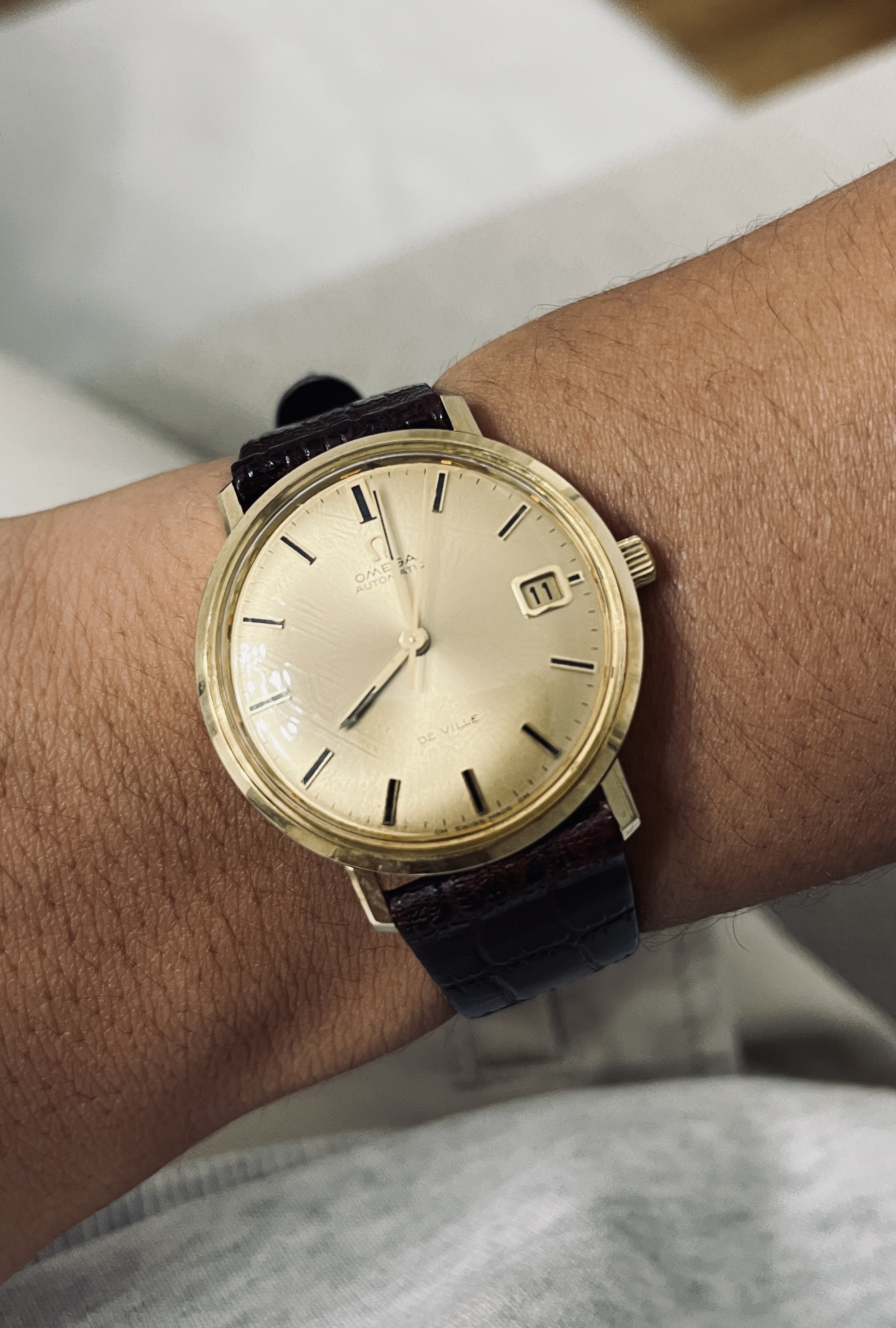 Just got this back from the watchmaker. Had not seen it in years. Long enough so that my tastes have changed in that I am more drawn to non-dates these days. Thinking this one would look so much better without the date window. But still a simple, elegant watch.