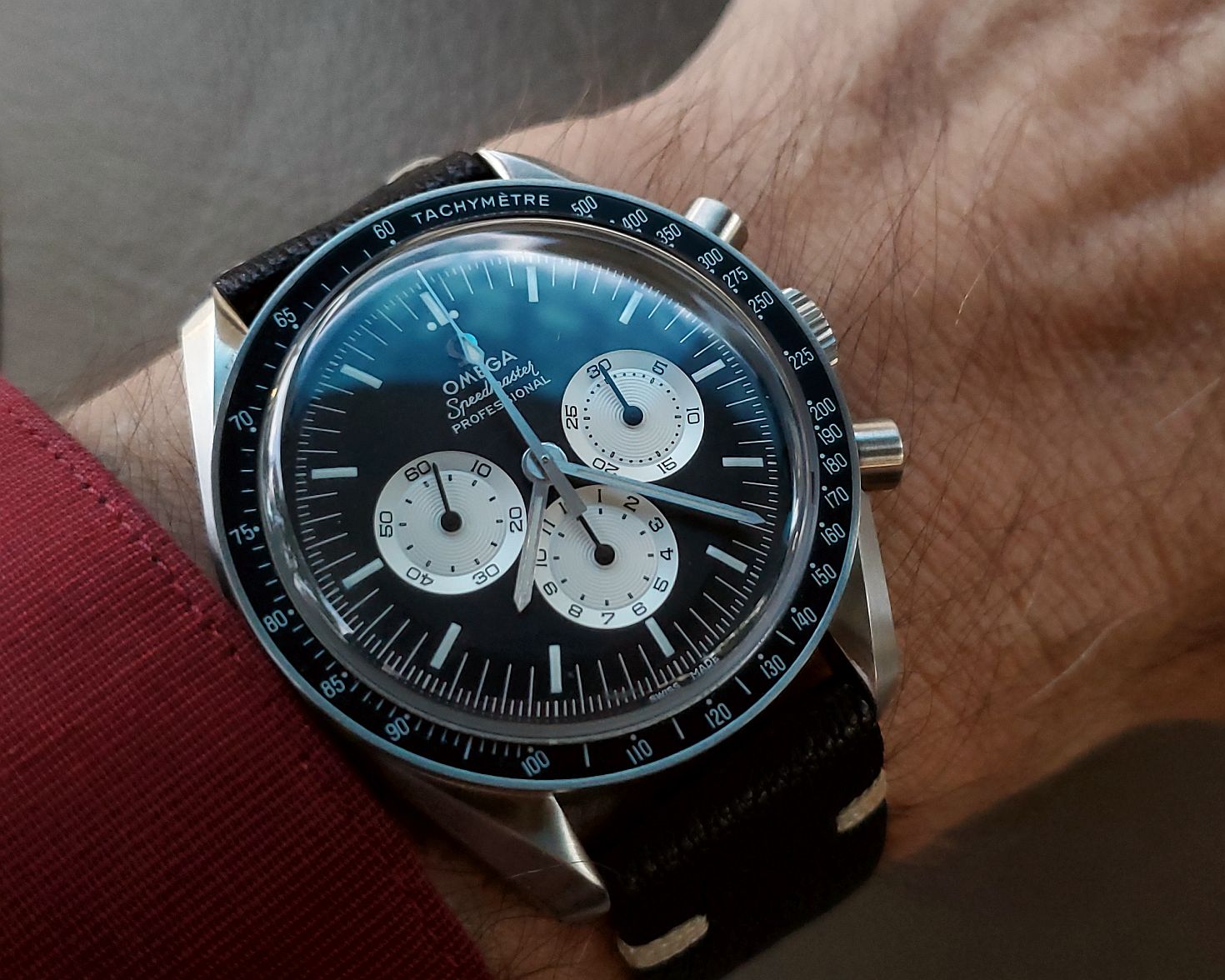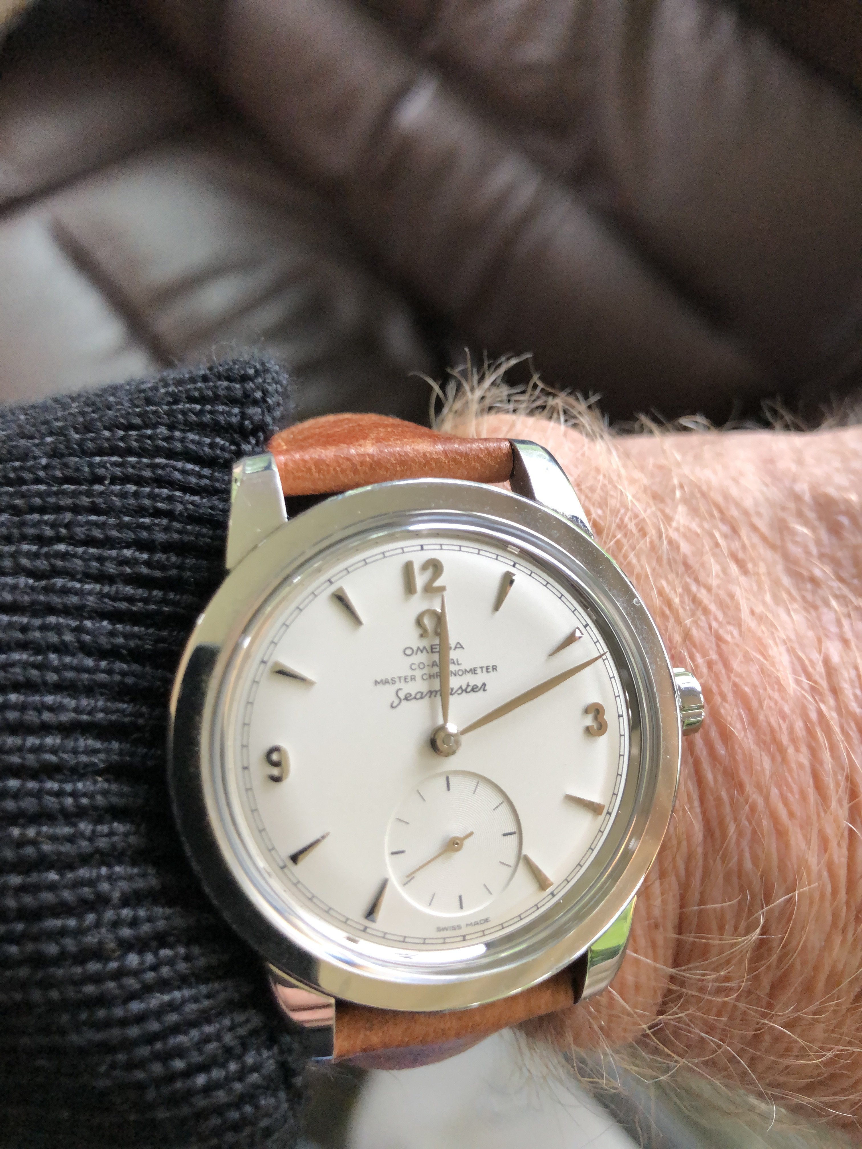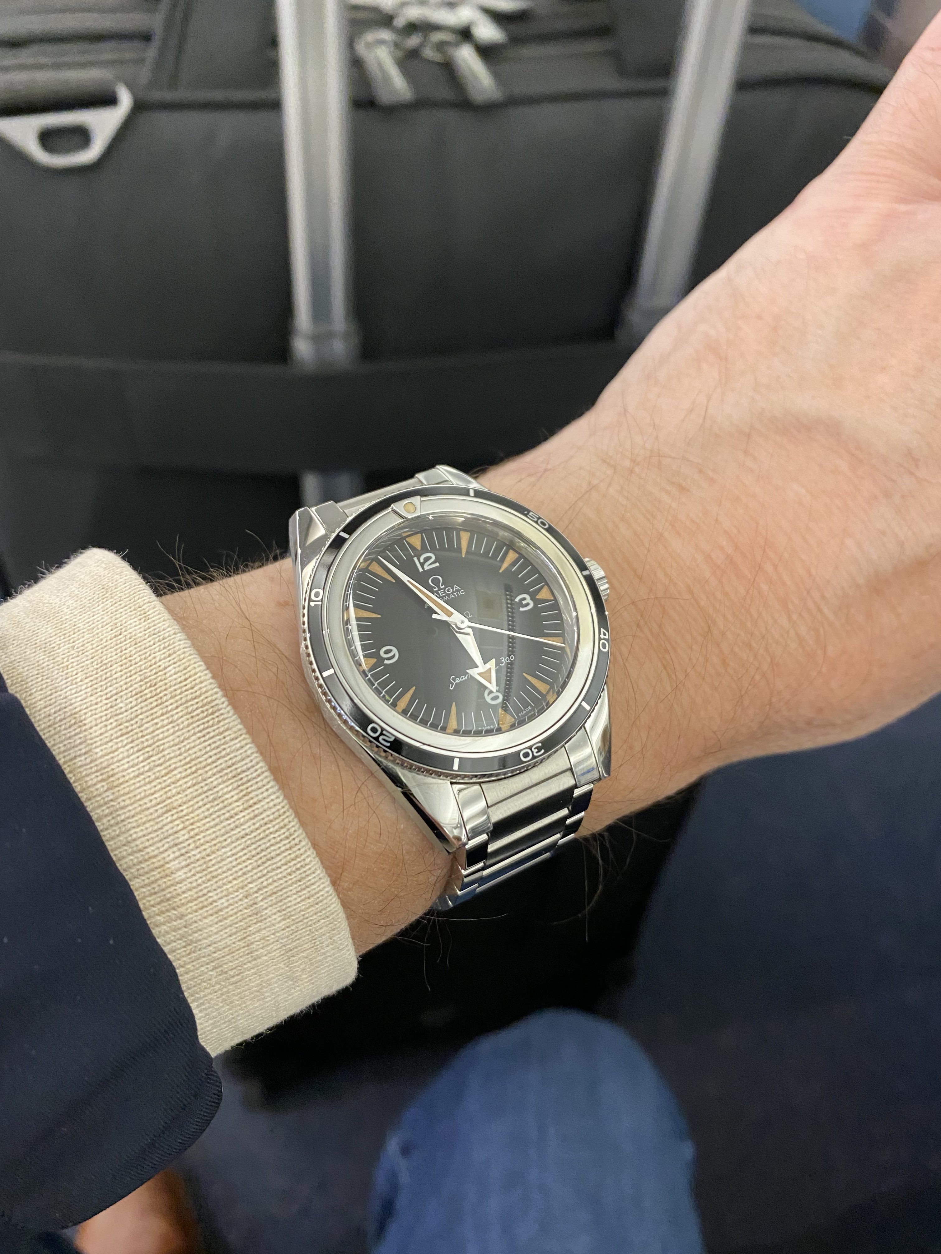 Back to the office and Speedy Tuesday with my 3861 and vintage Breitling mil watch from the early 1950s. The pocket watch gig isn’t working out so well up in the pointy end…it’s fairly difficult to access when wearing a 5 point harness. I might give the shirt pocket the old college try for the Breitling…which may be better than the pants pocket…