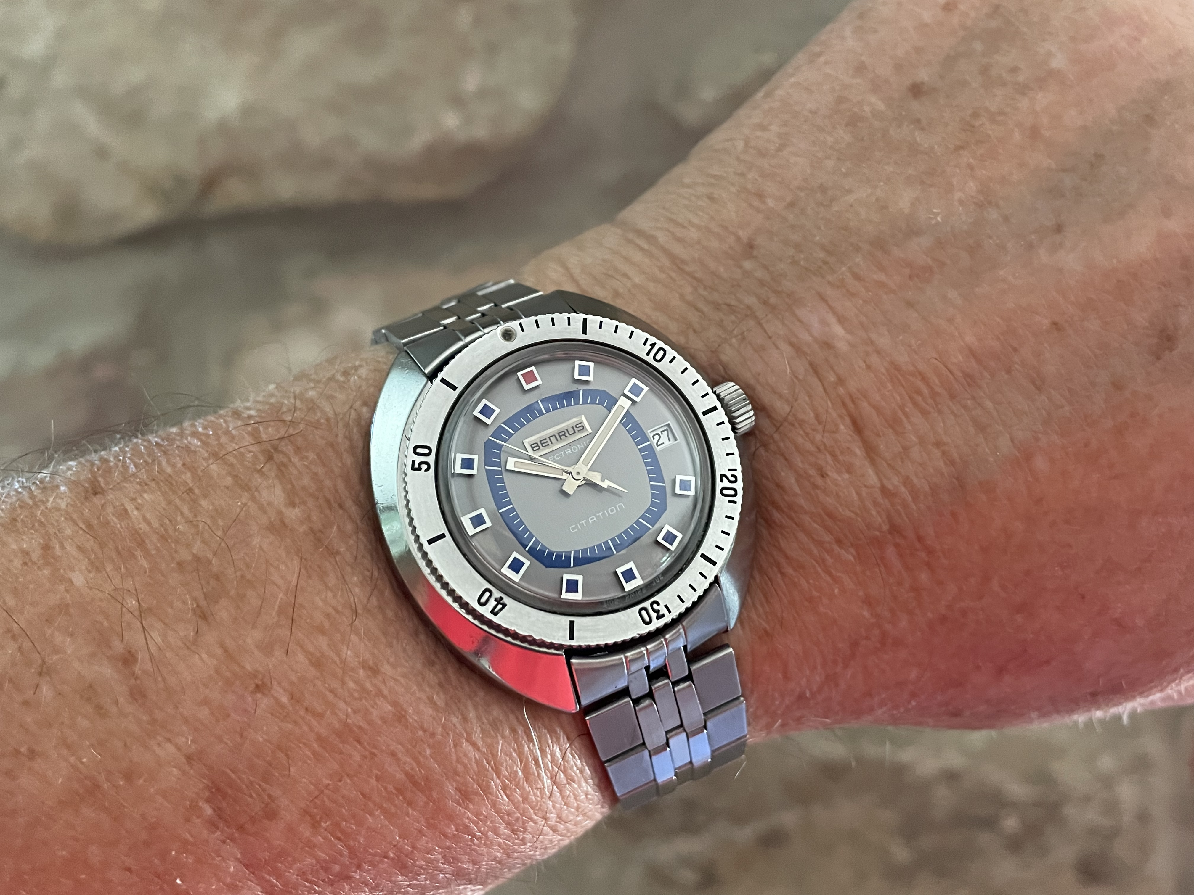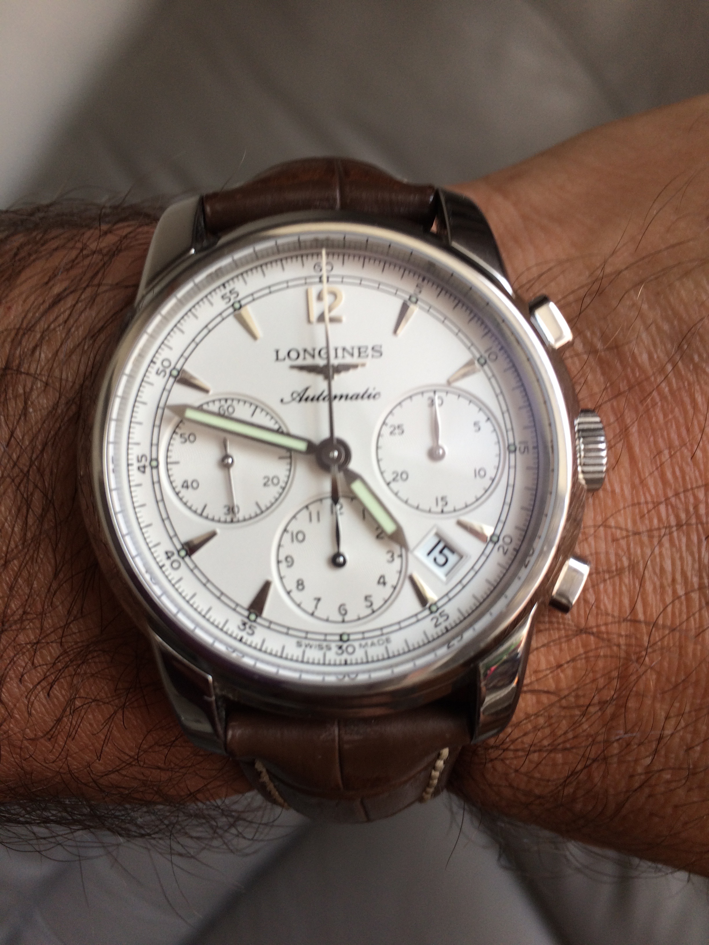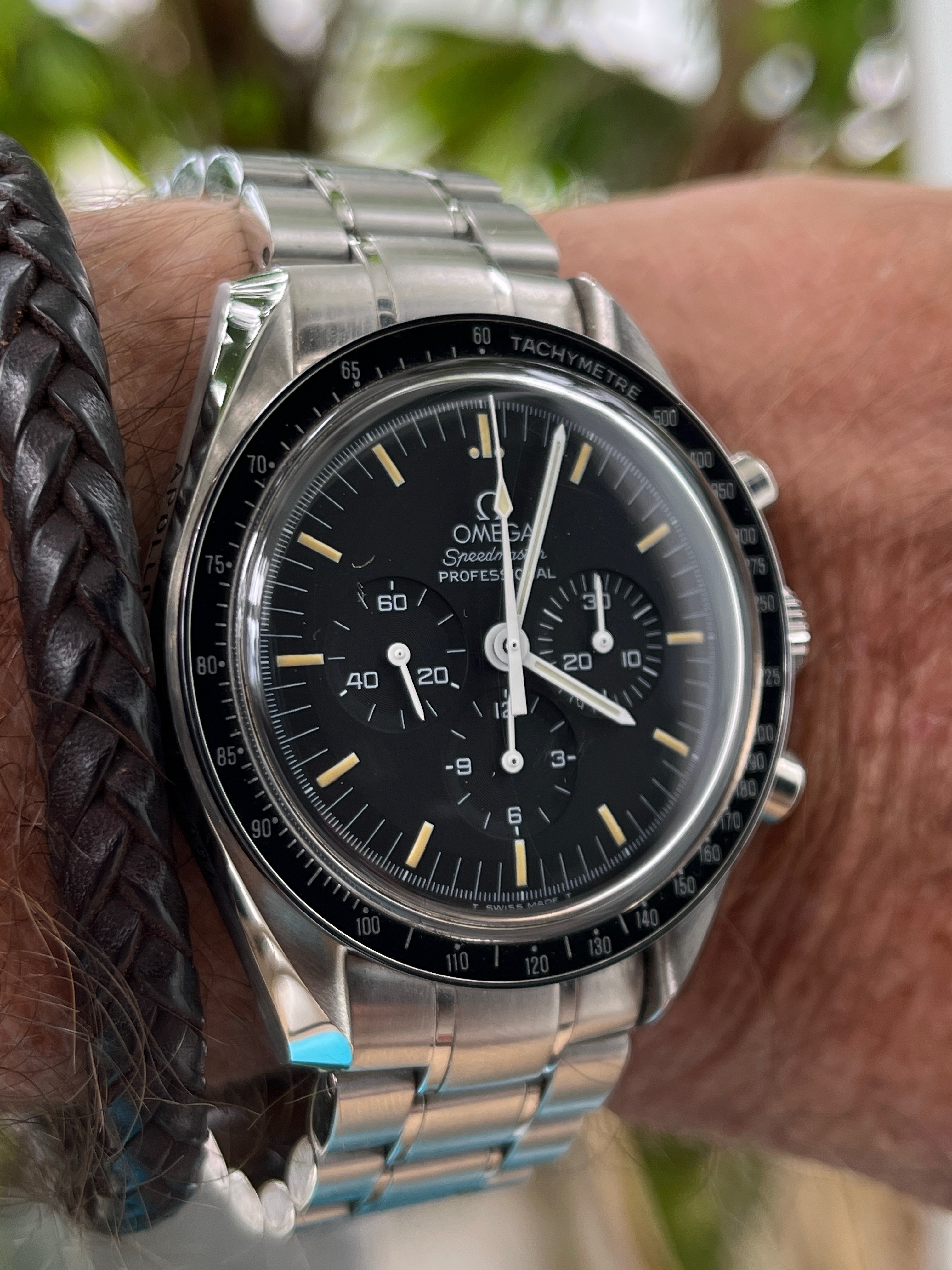 Back to the office and Speedy Tuesday with my 3861 and vintage Breitling mil watch from the early 1950s. The pocket watch gig isn’t working out so well up in the pointy end…it’s fairly difficult to access when wearing a 5 point harness. I might give the shirt pocket the old college try for the Breitling…which may be better than the pants pocket…