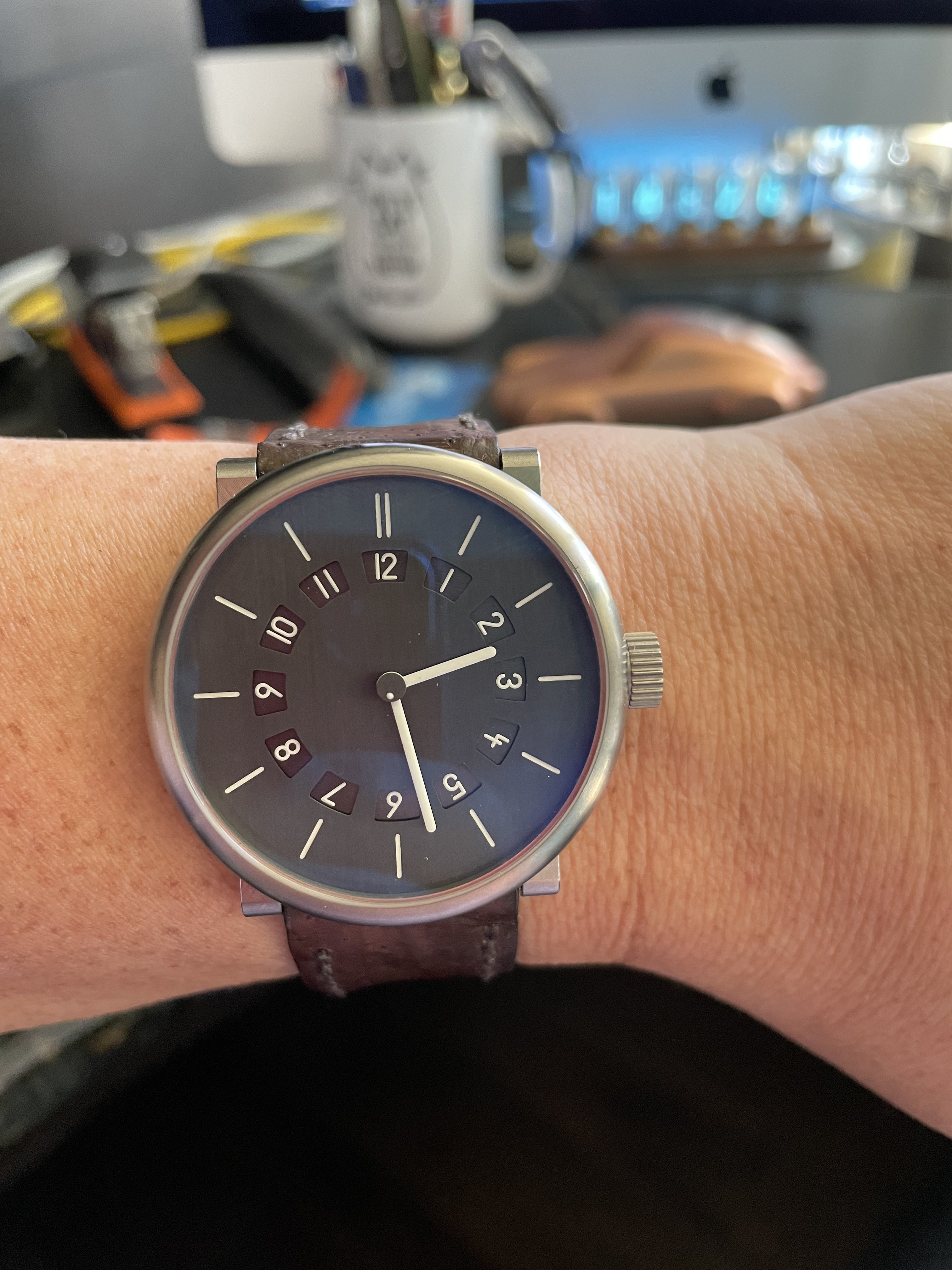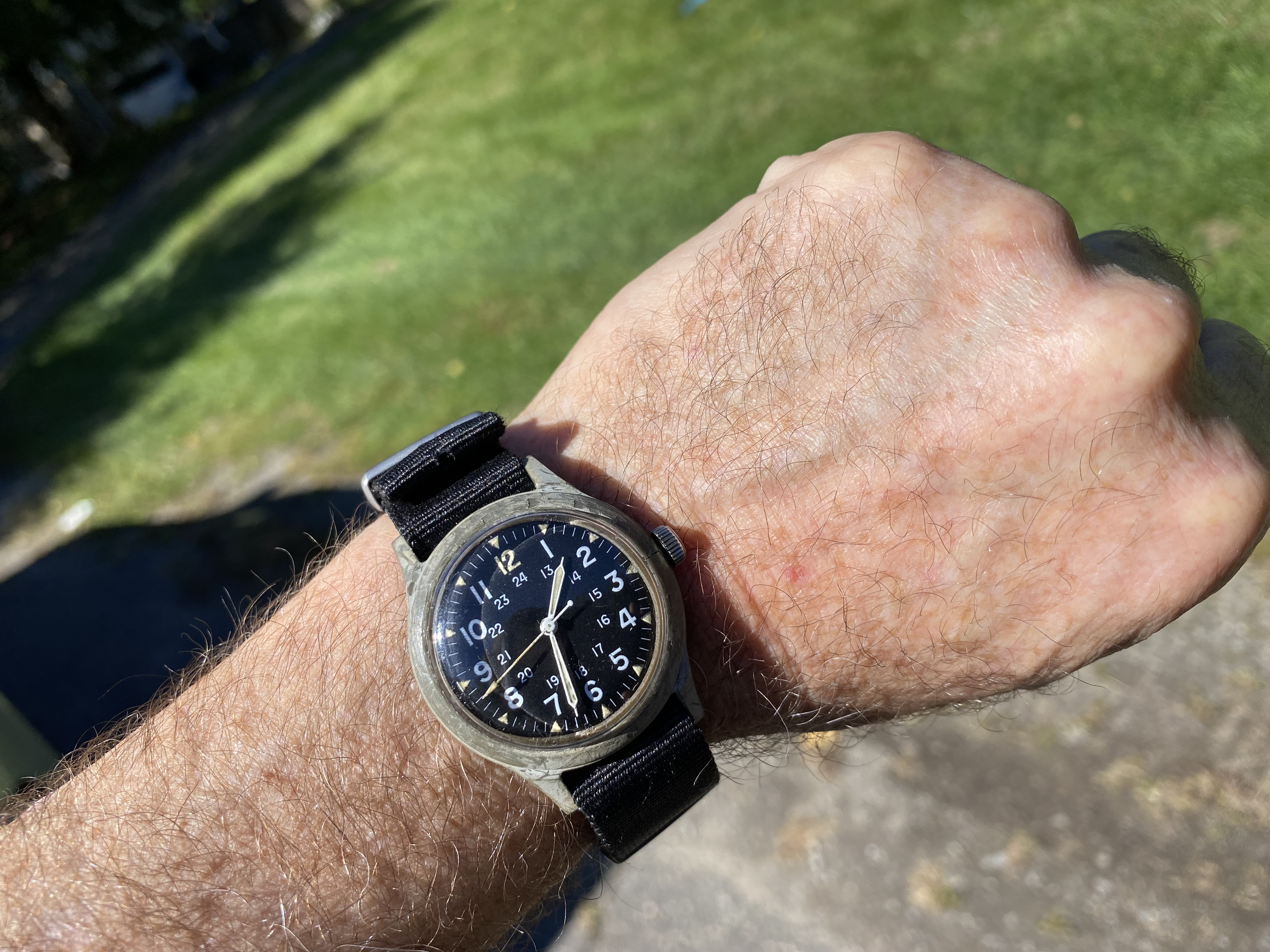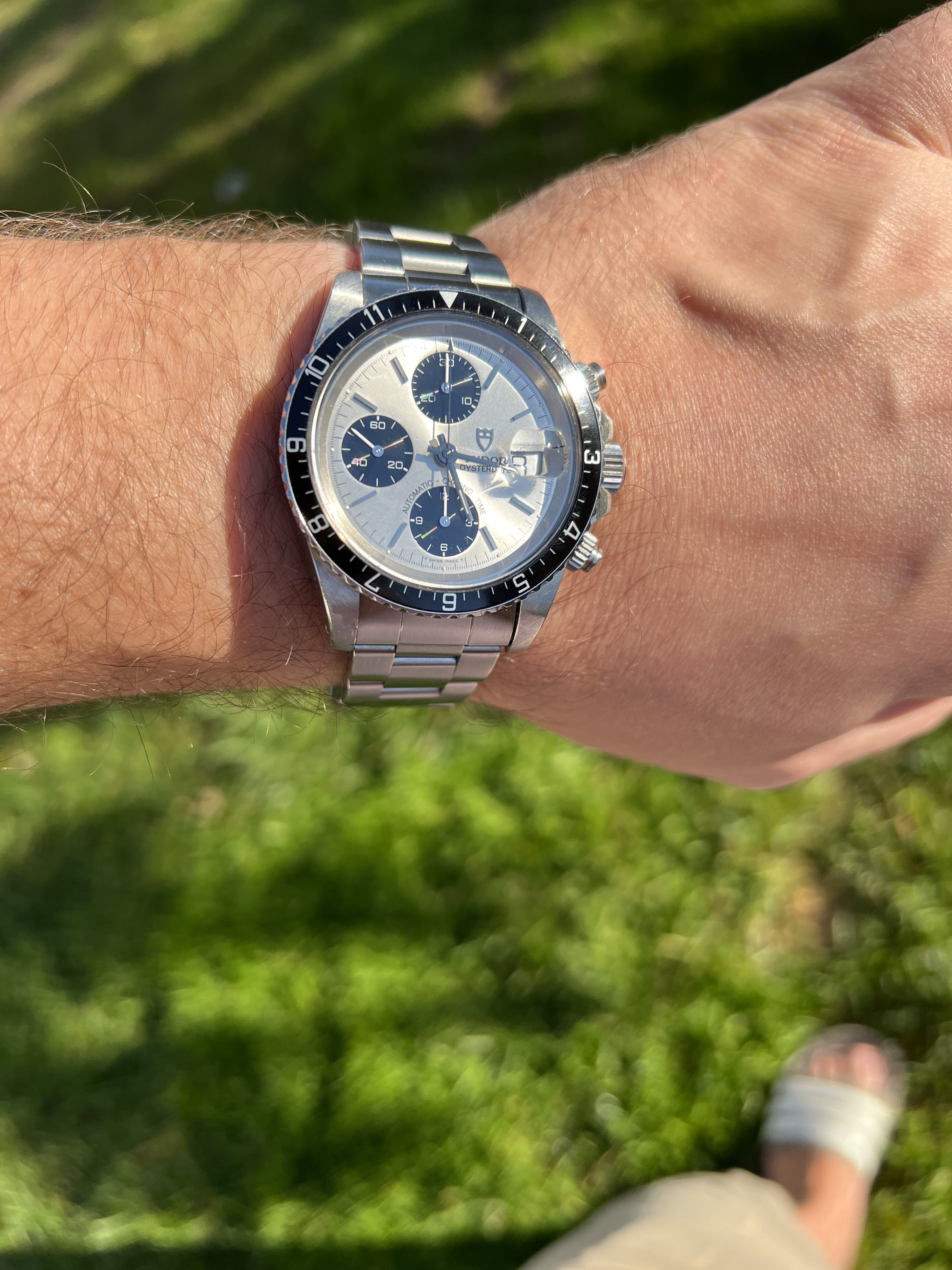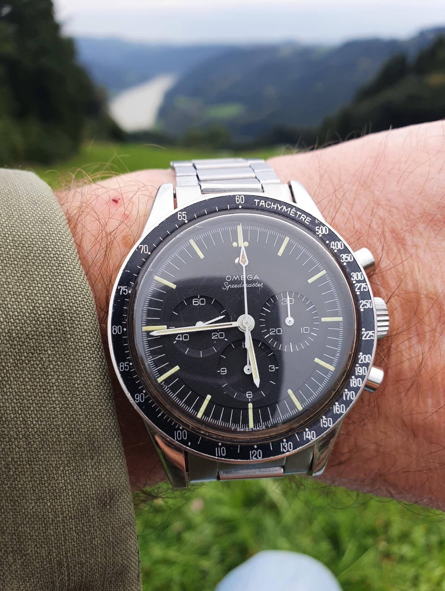31mm case and 11/16" lug space, had a bit of a time matching the right bracelet. this one's not bad, but will prolly keep digging.