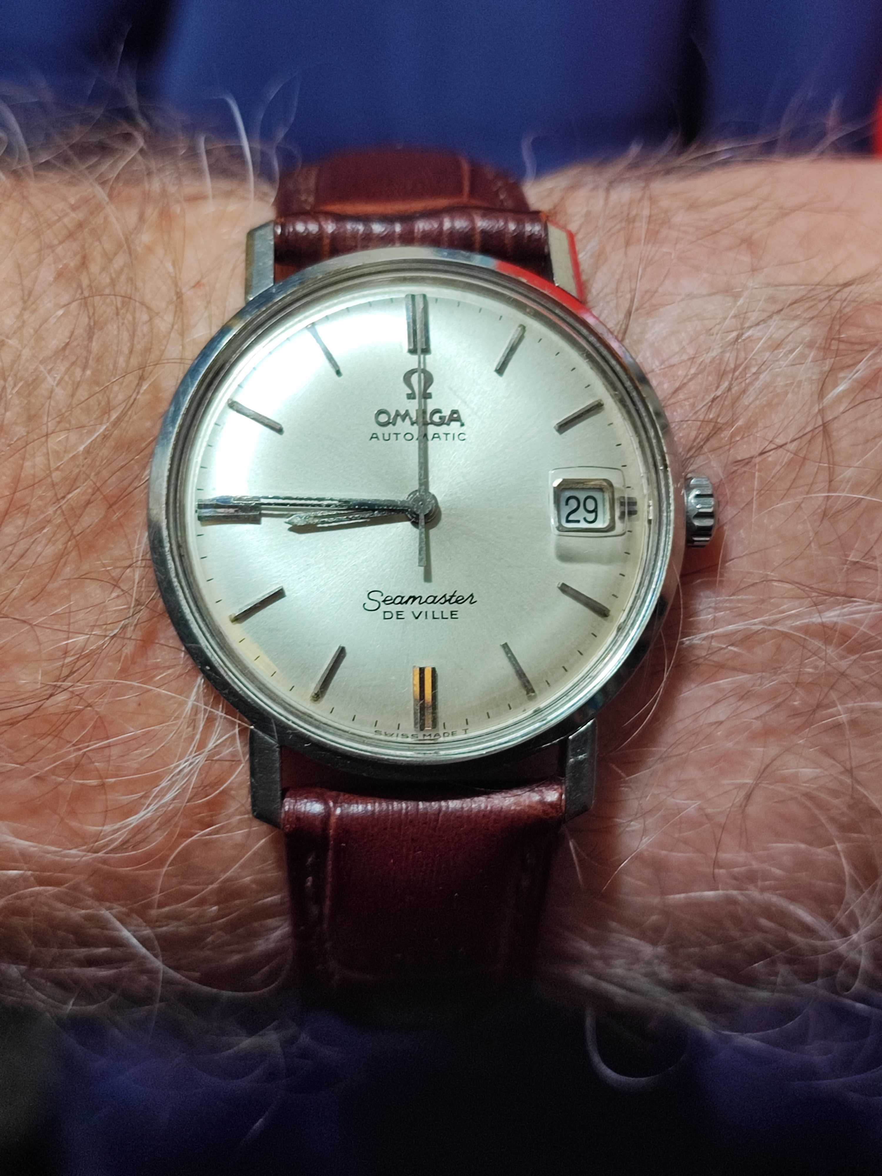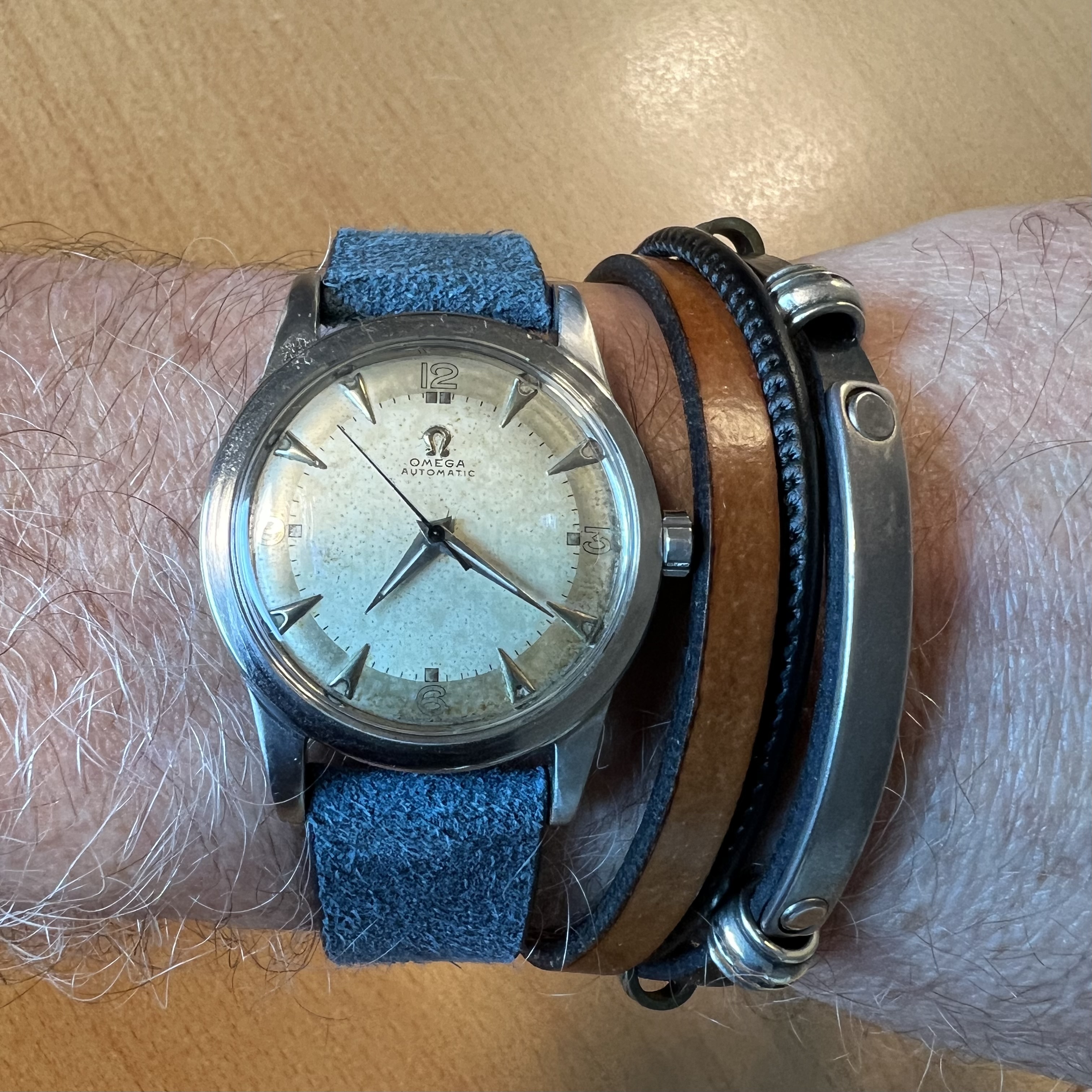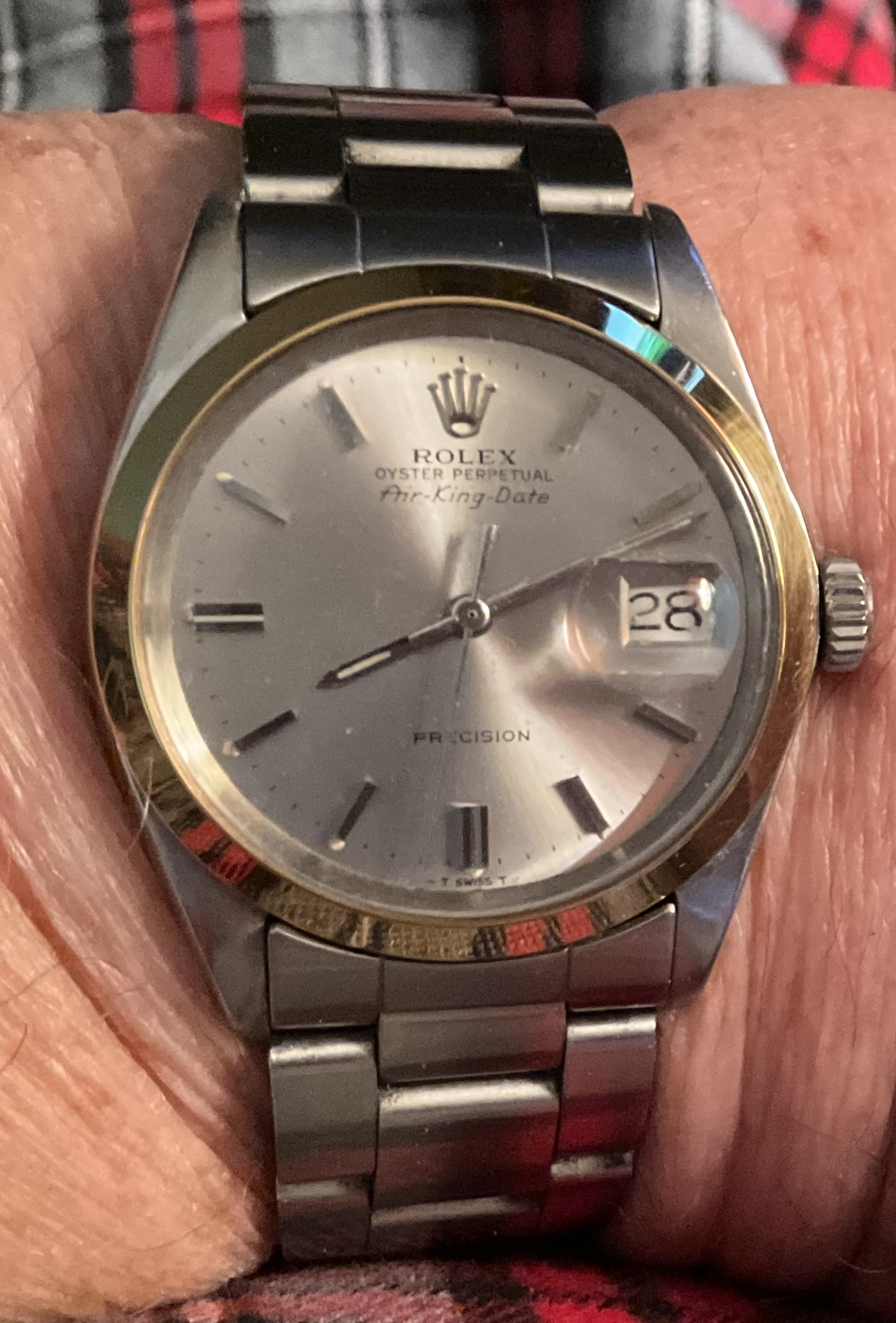 One of two I’ll wear today. This is my one owner (me) Rolex Air-King Date that I’ve had since 1971. In 2021, I replaced the original stainless steel bezel with a NOS 14-karat Rolex bezel that I’ve had in my stash since the late 1980s. Effectively making this my “golden anniversary” Rolex. Bracelet is after-market, since our son (age 10 at the time), destroyed the original. My fault for letting him wear it!