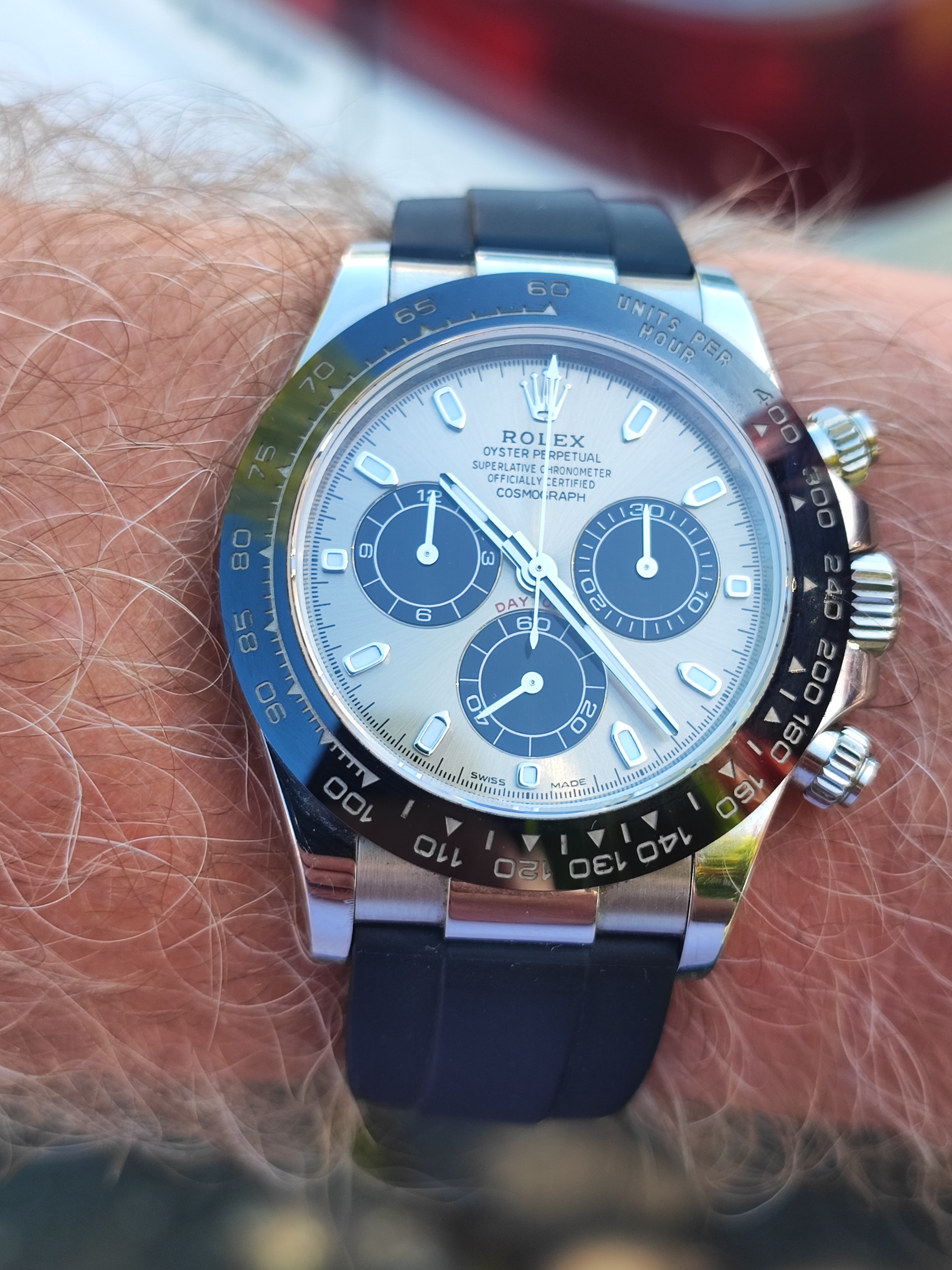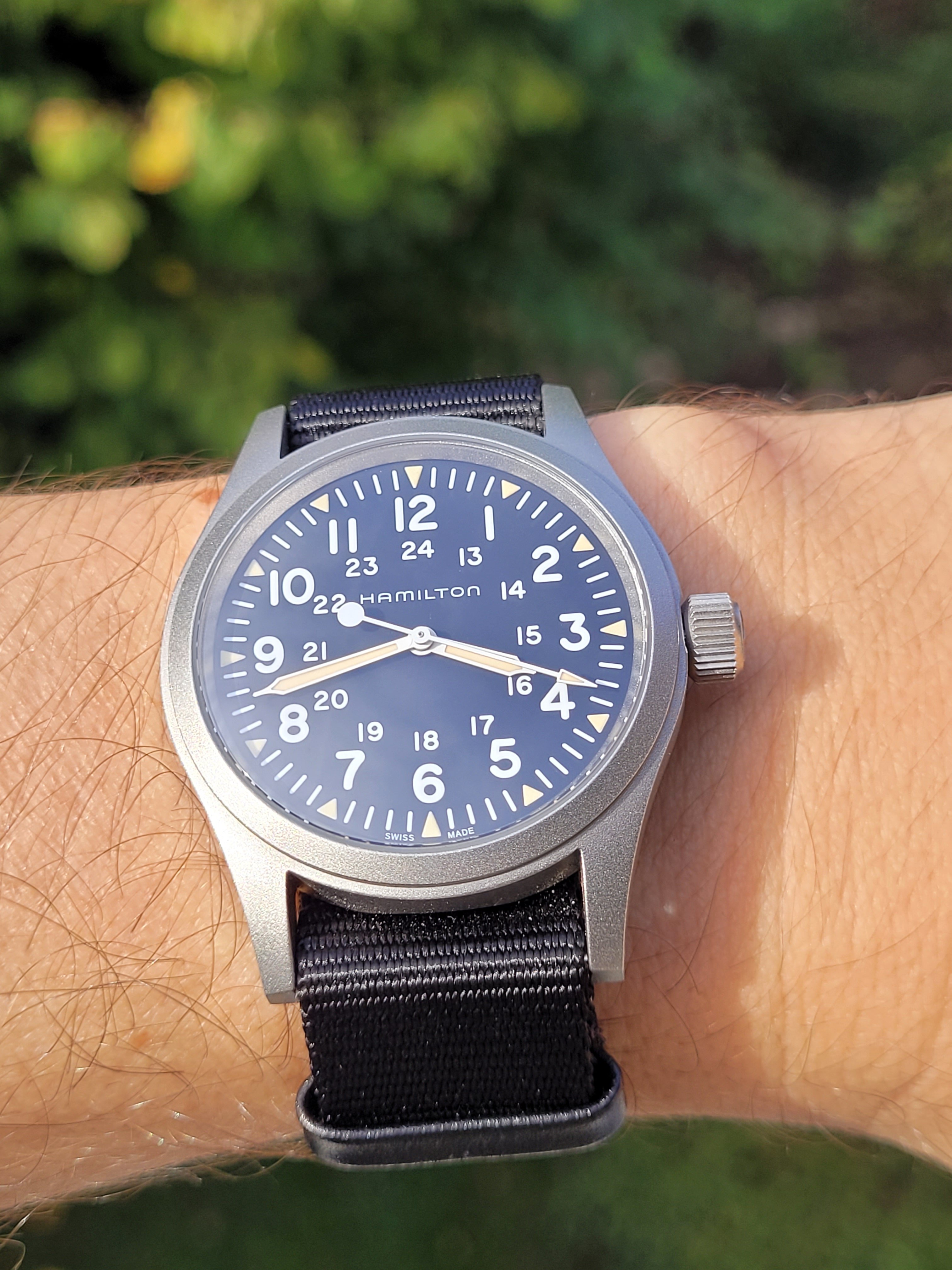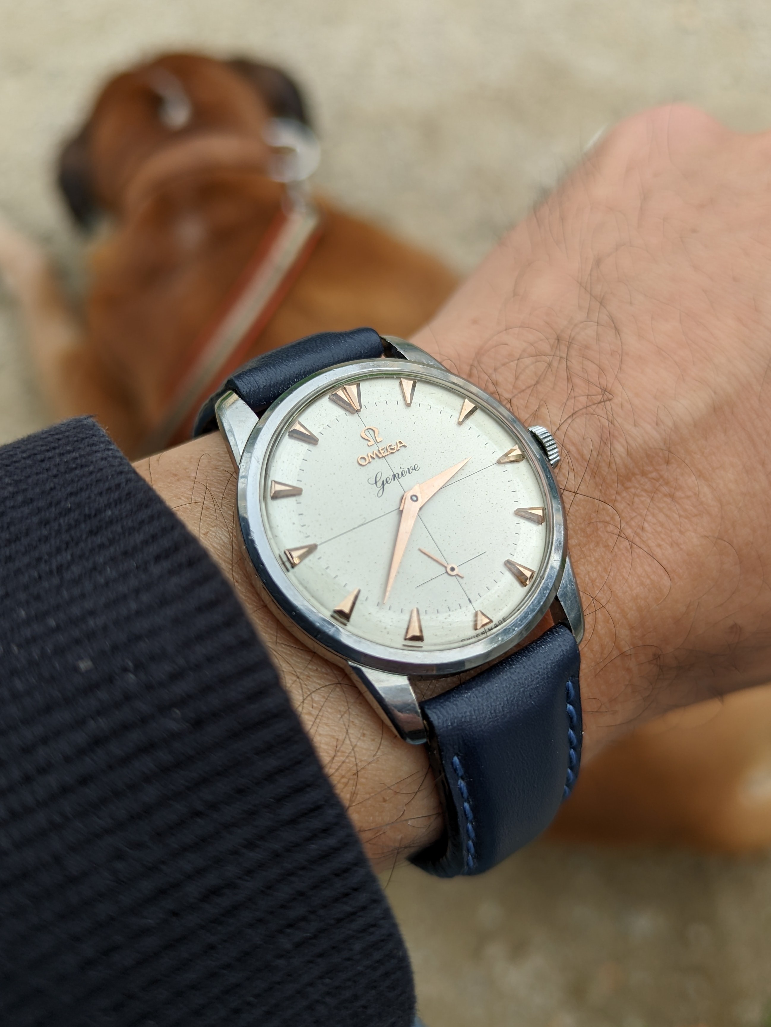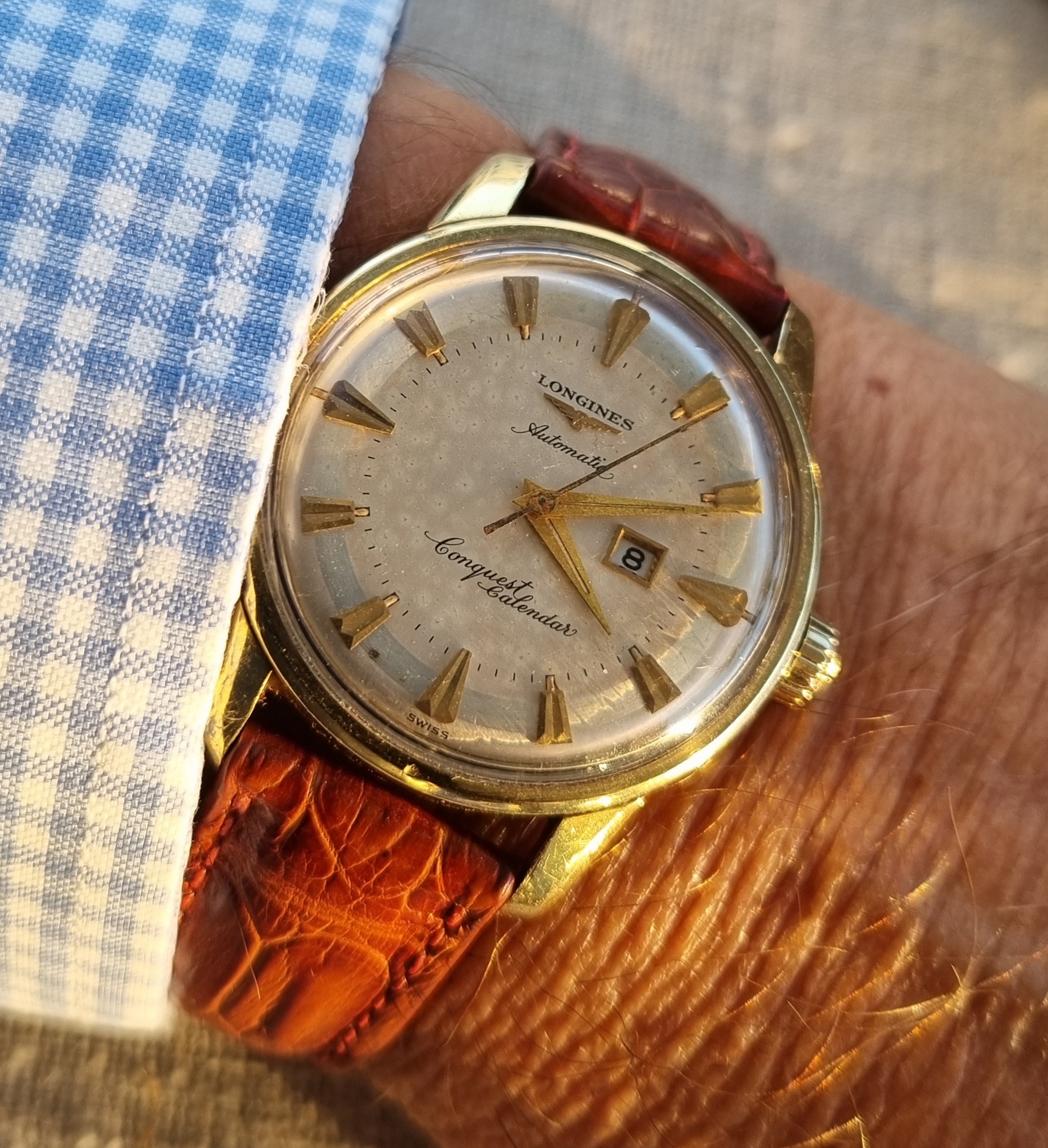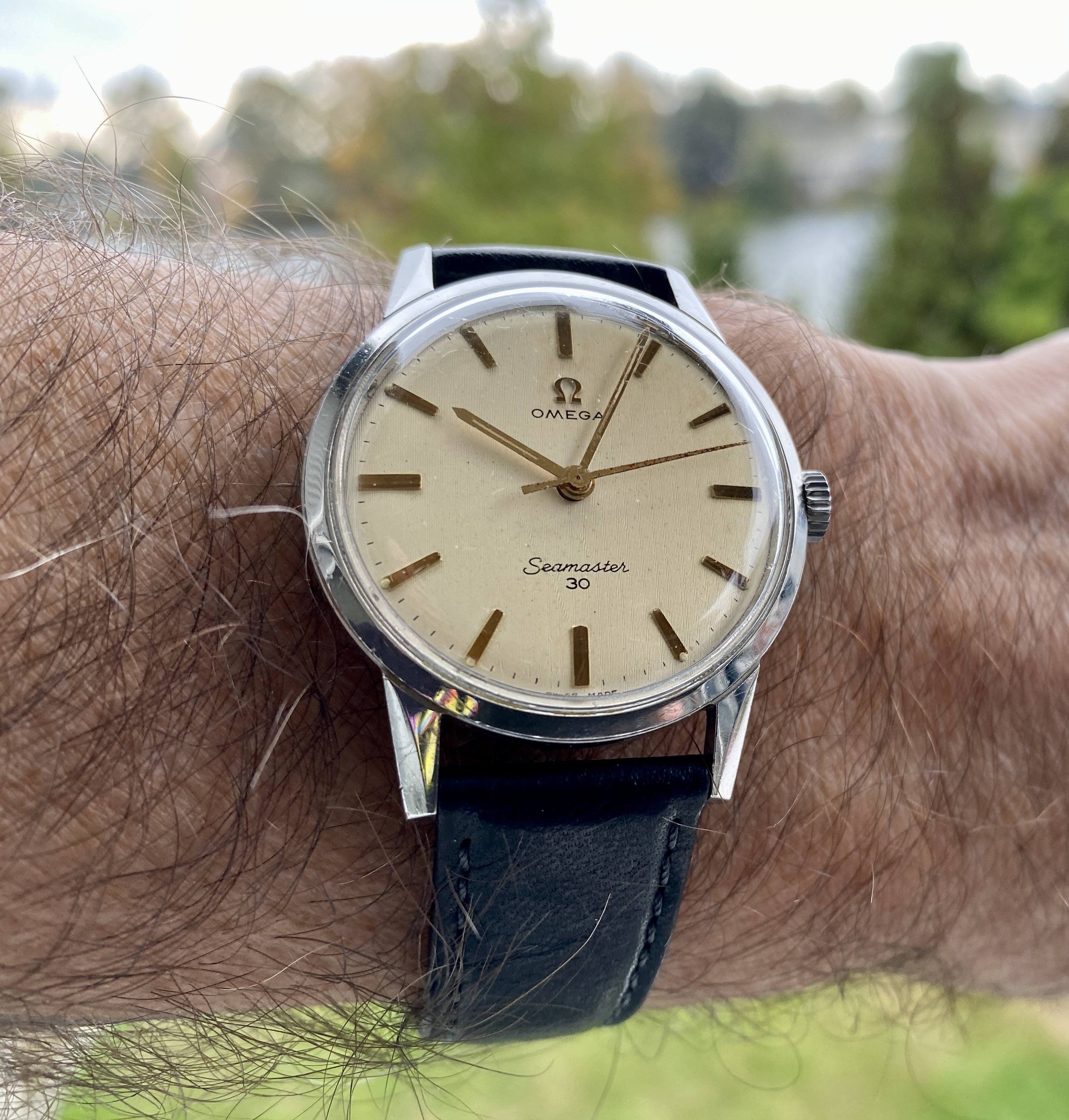 just signed for this today, a Titus Calypsomatic 7986 (between 4 & 5 is a faint scratch not he crystal, not the dial). Stunning dial with gorgeous lume and a date that rotates between red for even and blue for odd, beautifully faded bezel, original big crown, and lovely caseback.
