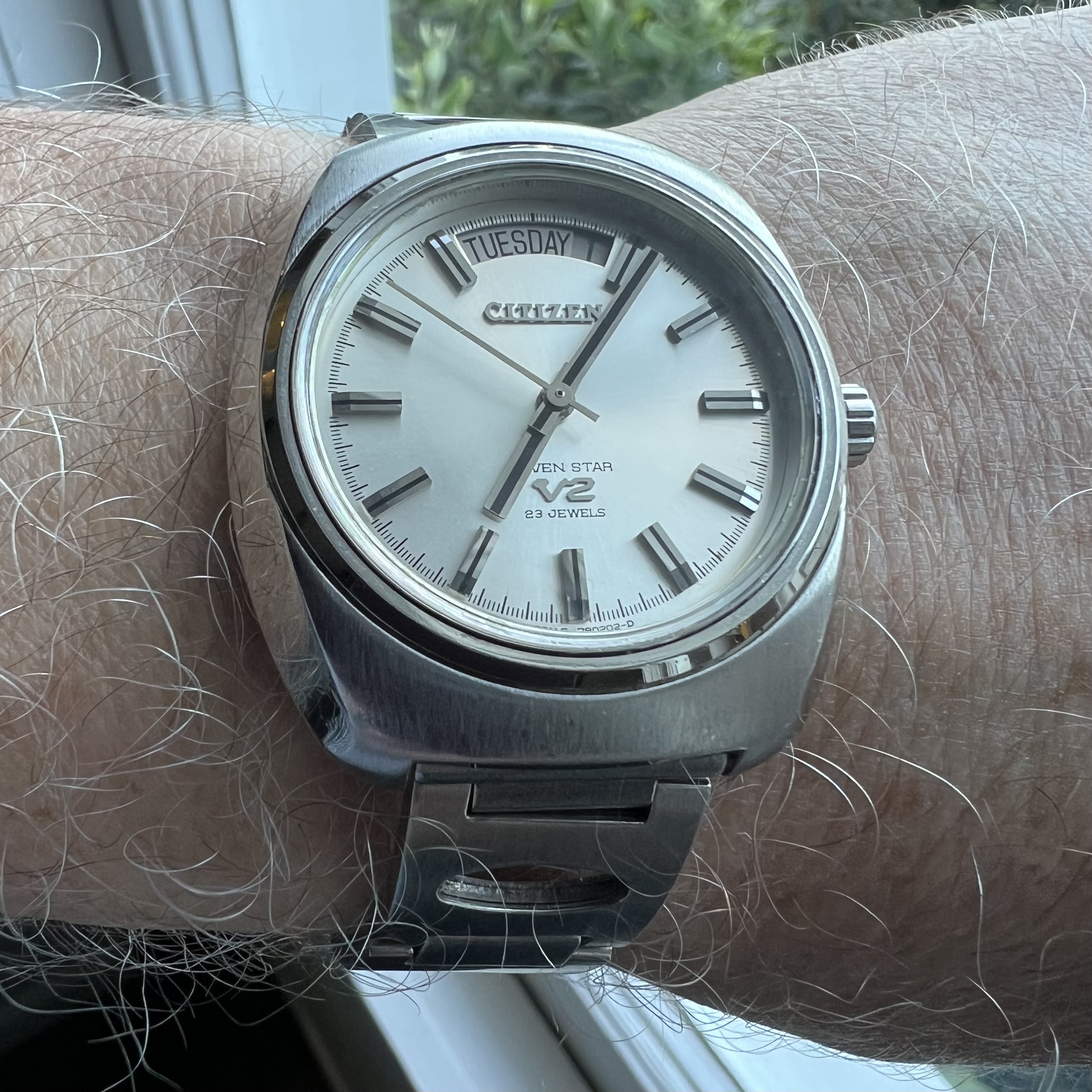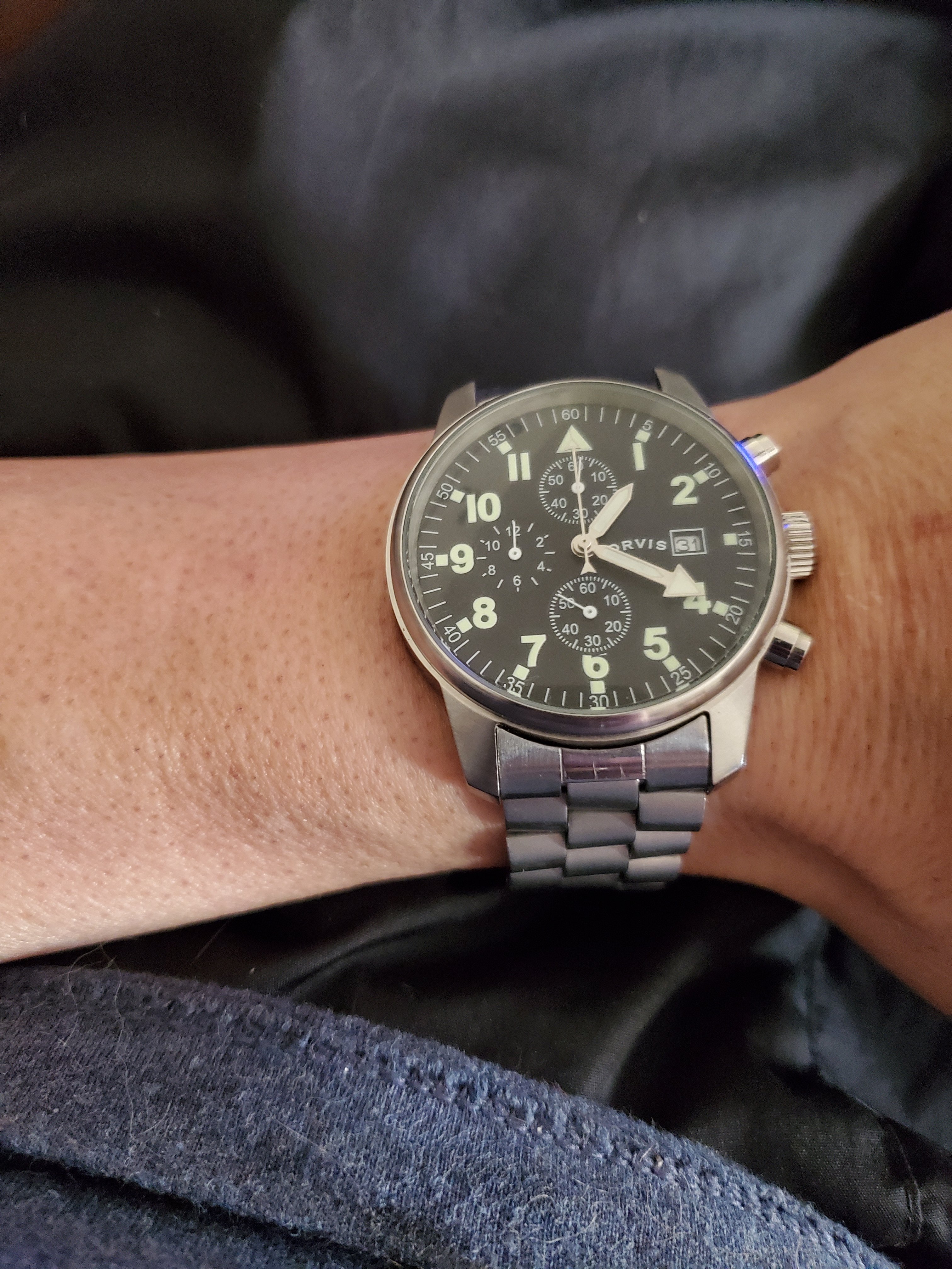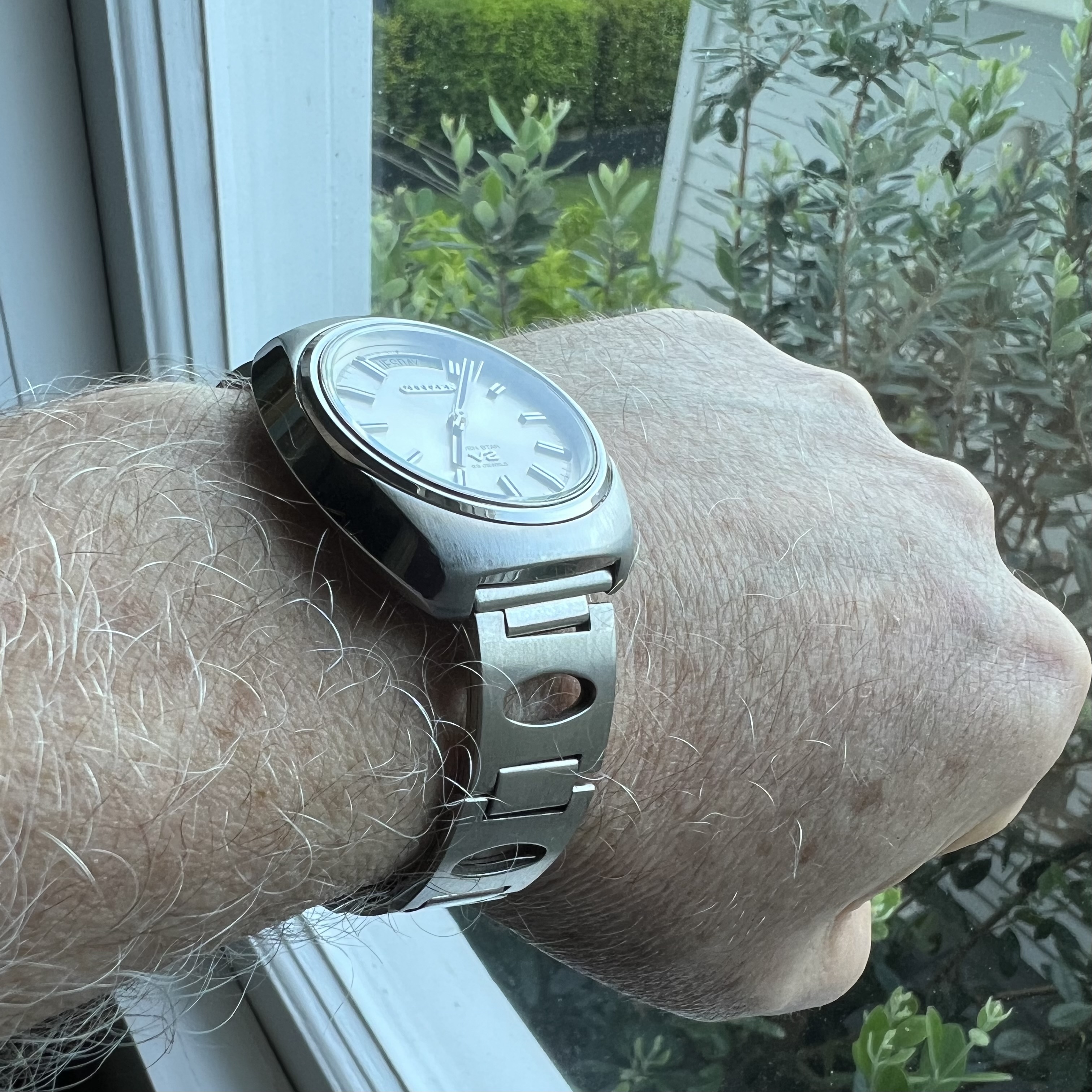 I count this as cheap’n’cheerful, but it’s pretty sharp with an amazingly detailed dial. Fun era-appropriate steel racing style bracelet goes well imho.
