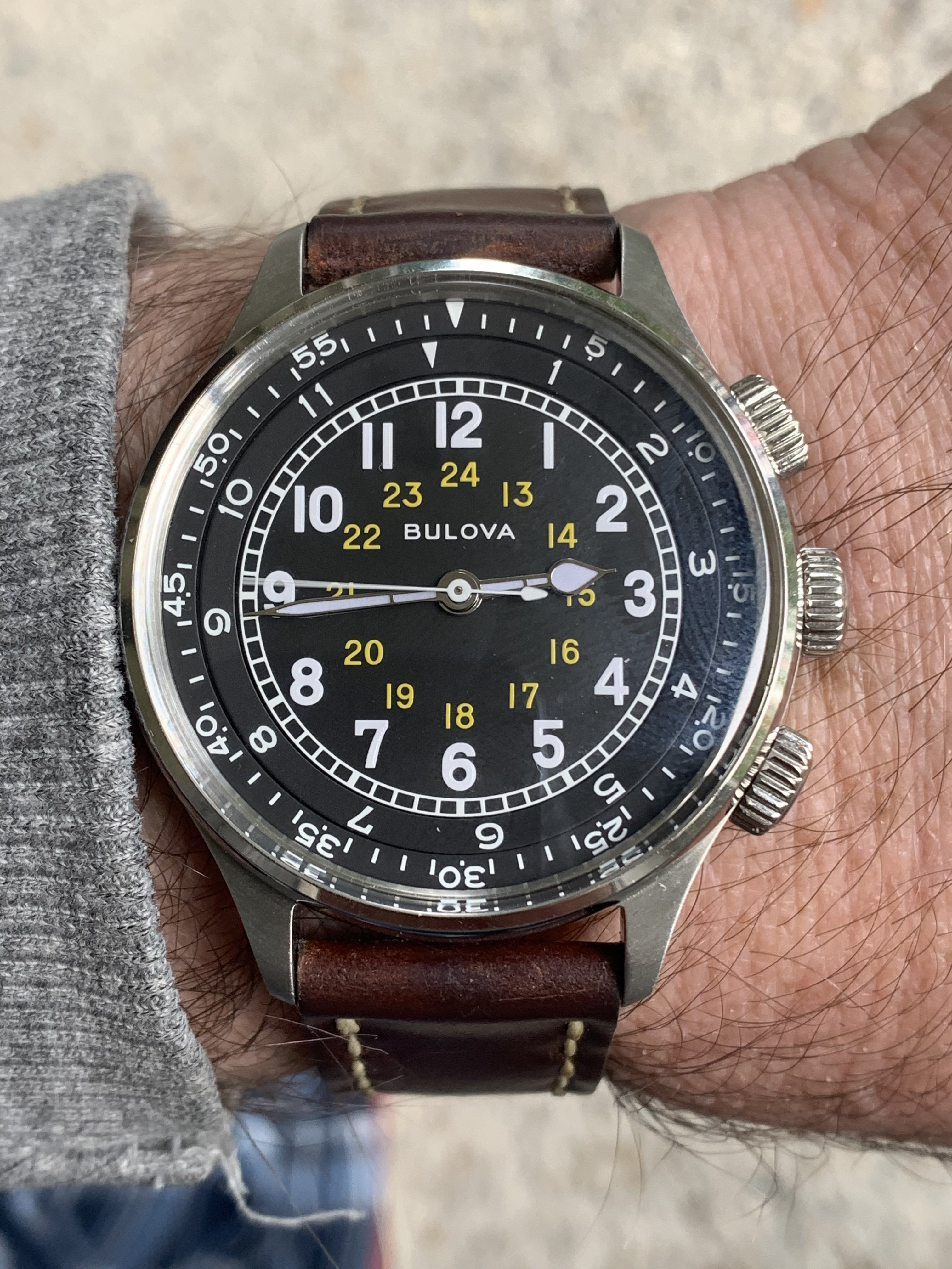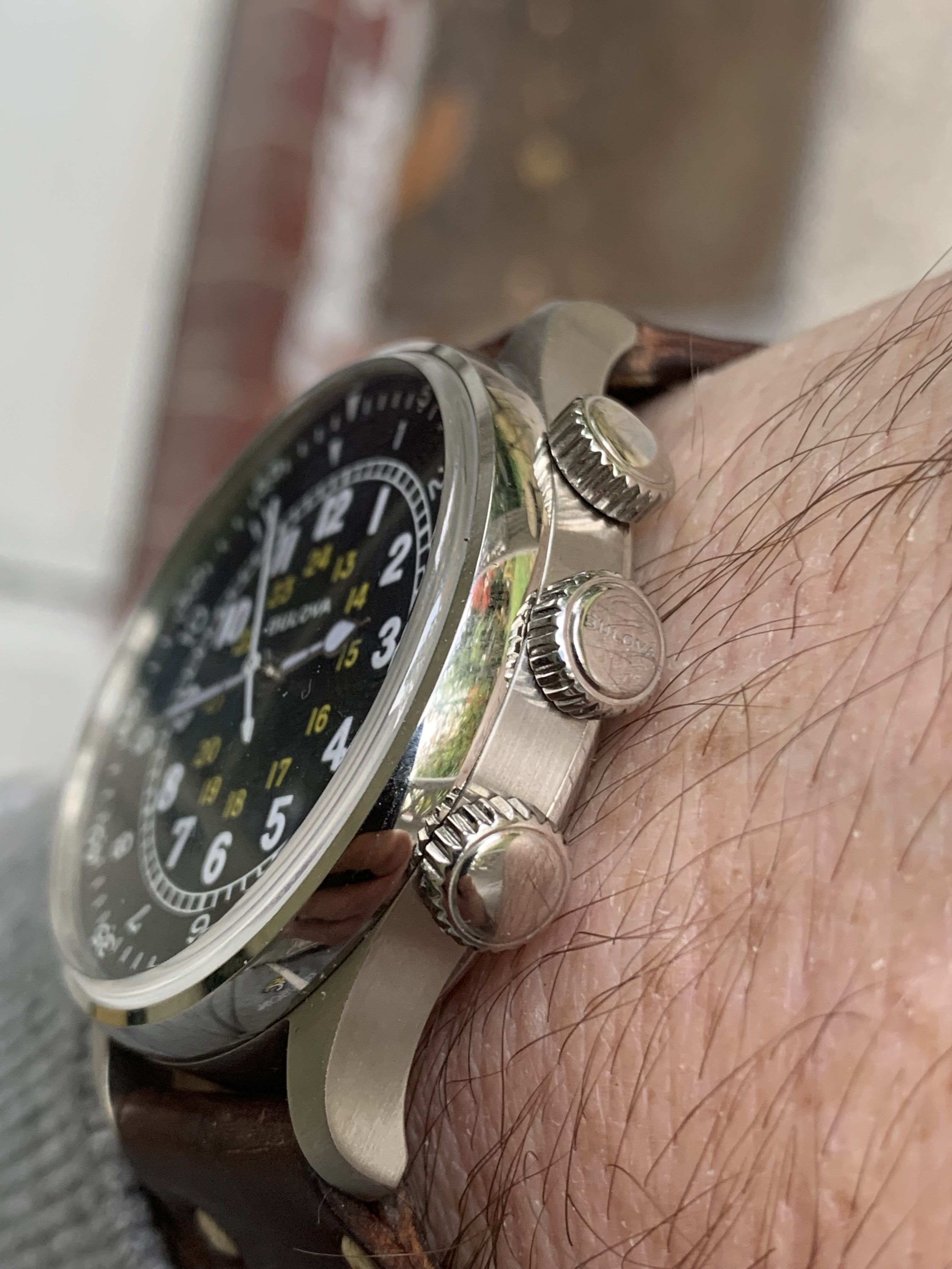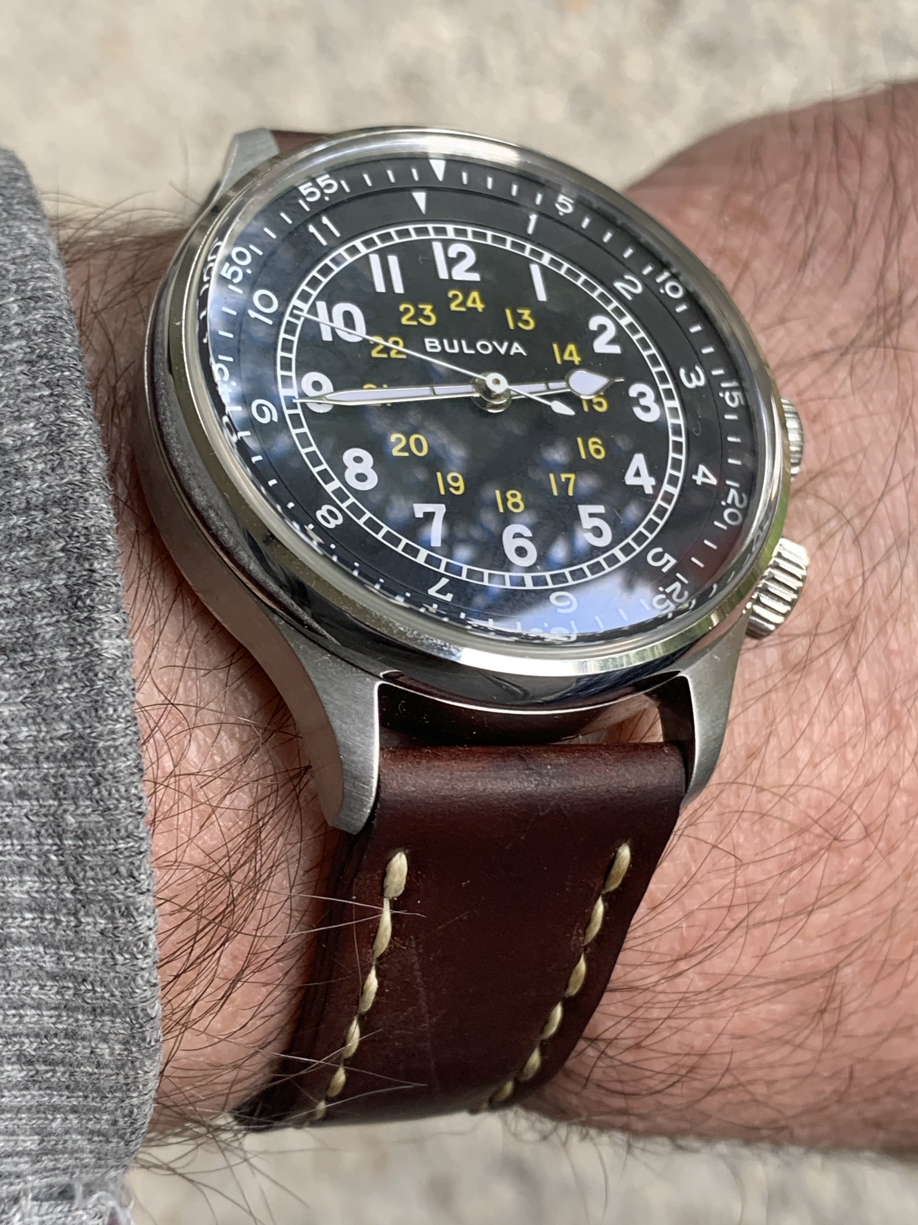 Bulova a15 reissue- this is a damn nice watch! Strap is a Roverhaven horse-ass I have had for years.