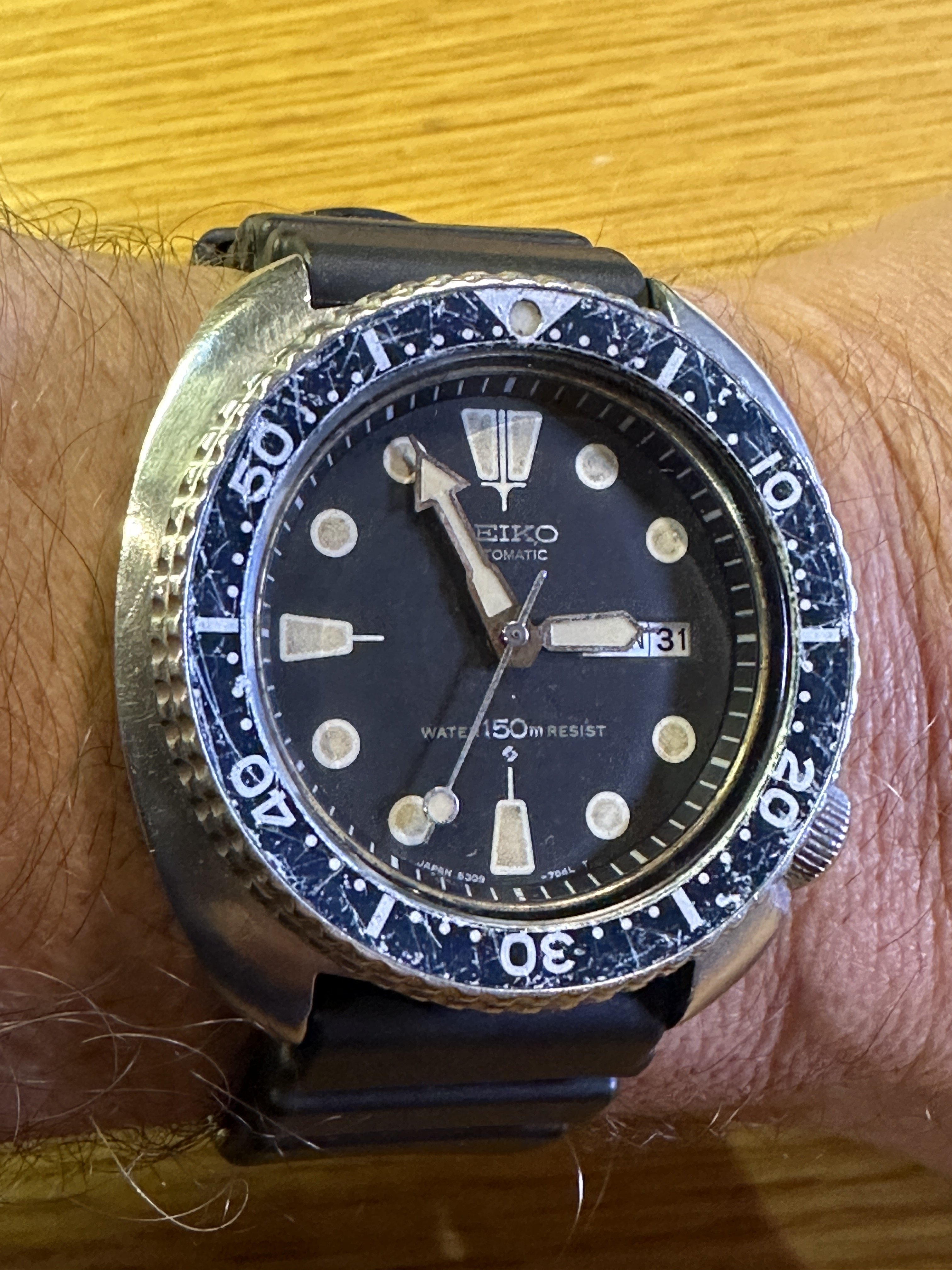 The "rare" Zodiac Zombie with its limited edition "clean-up-on-aisle-seven" dial patina.