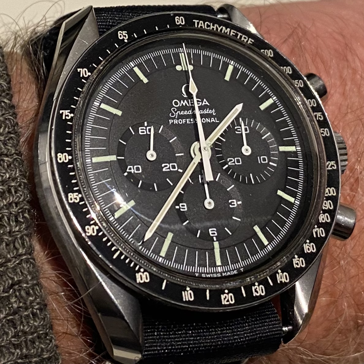 Currently on a long layover in Seattle…headed to the Bellevue OB to see what sort of trouble I can get into…wearing my newly acquired 1971 145.022 on an Omega NASA strap…