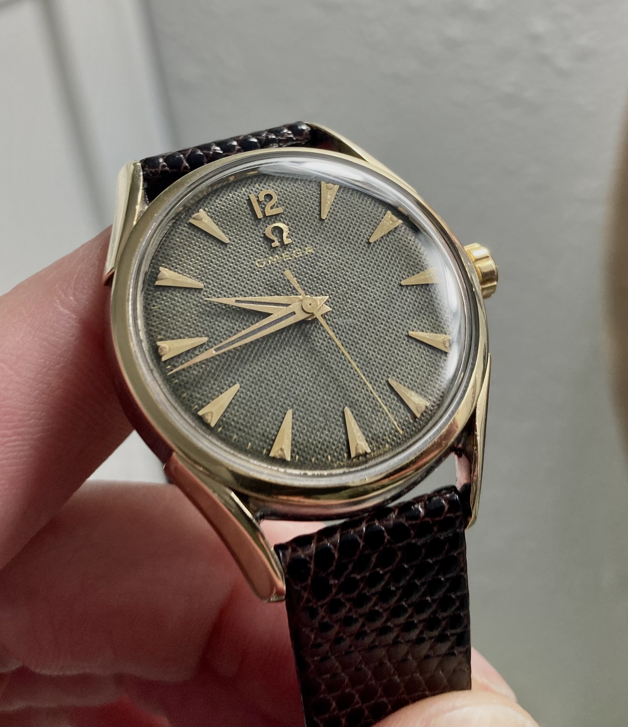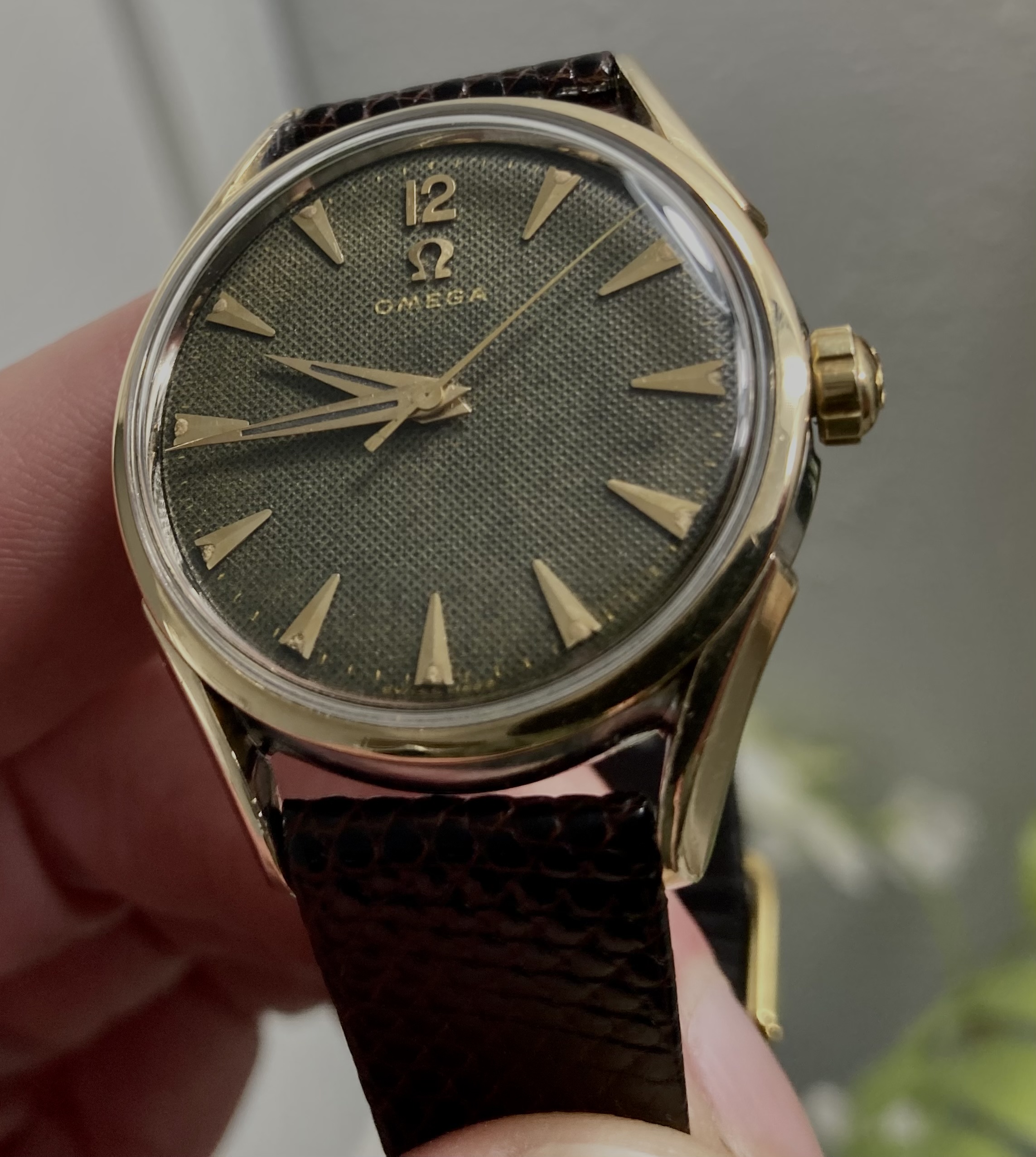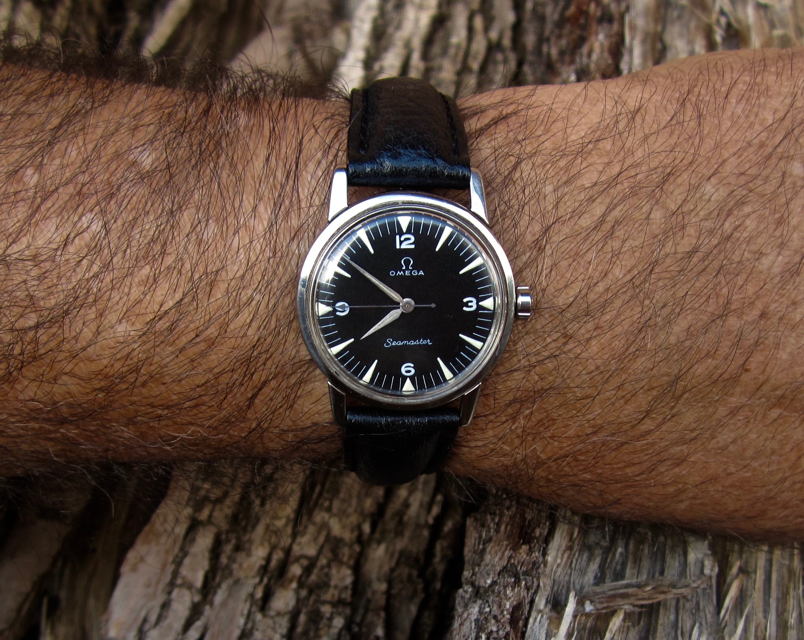 A handsome dog is Shameless Hussy, the '59 Omega Seamaster 520 re-dial for Friday.
