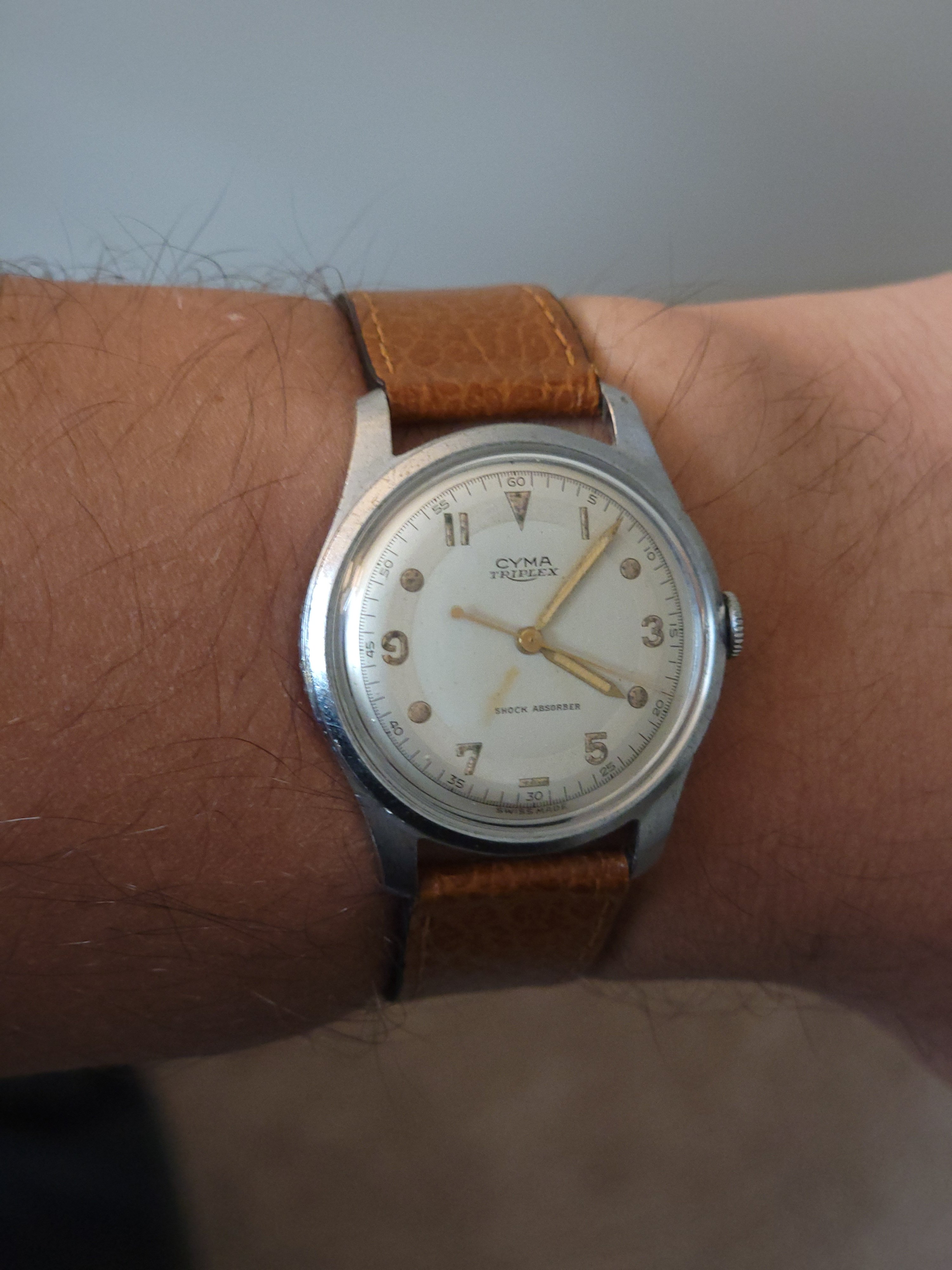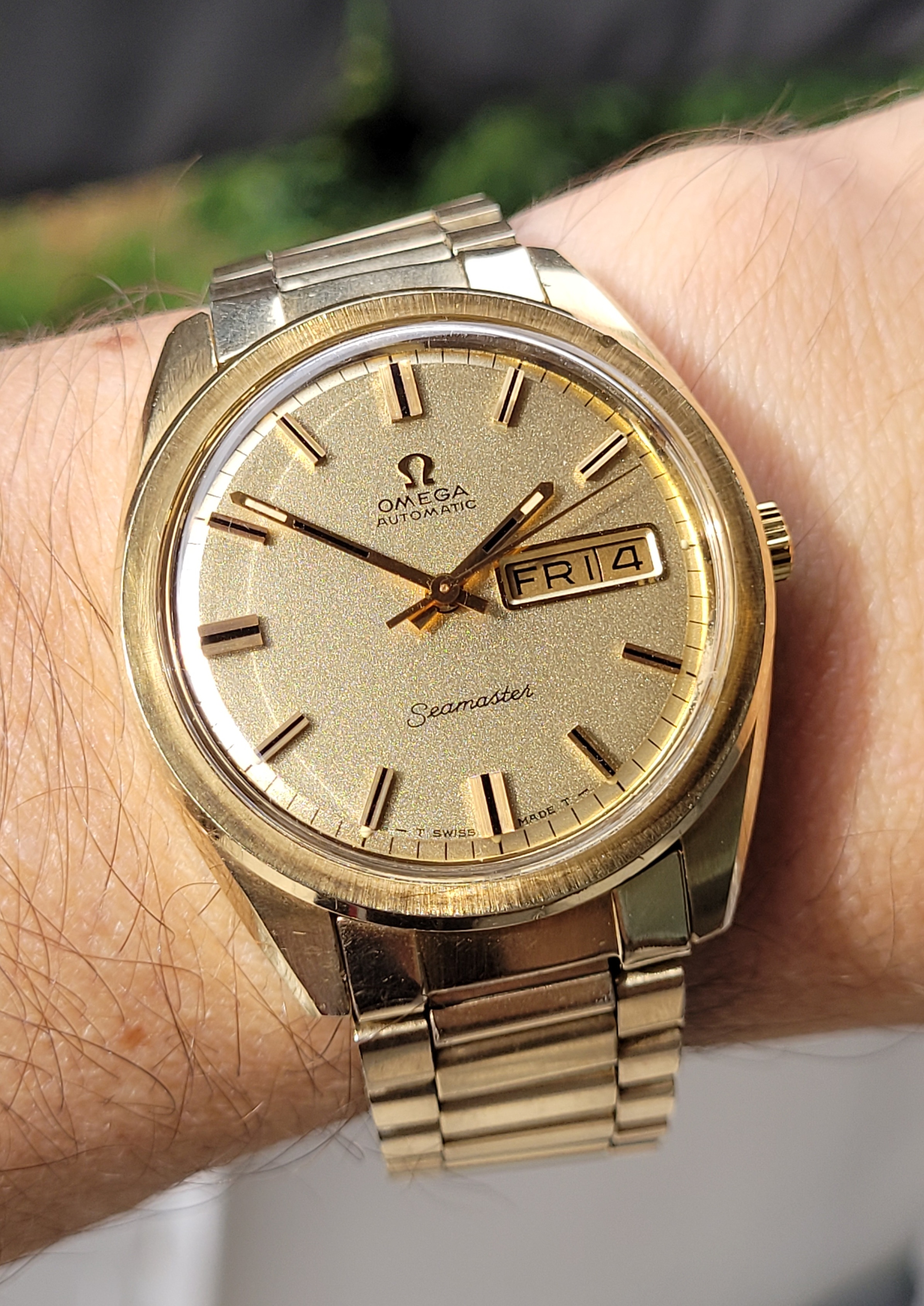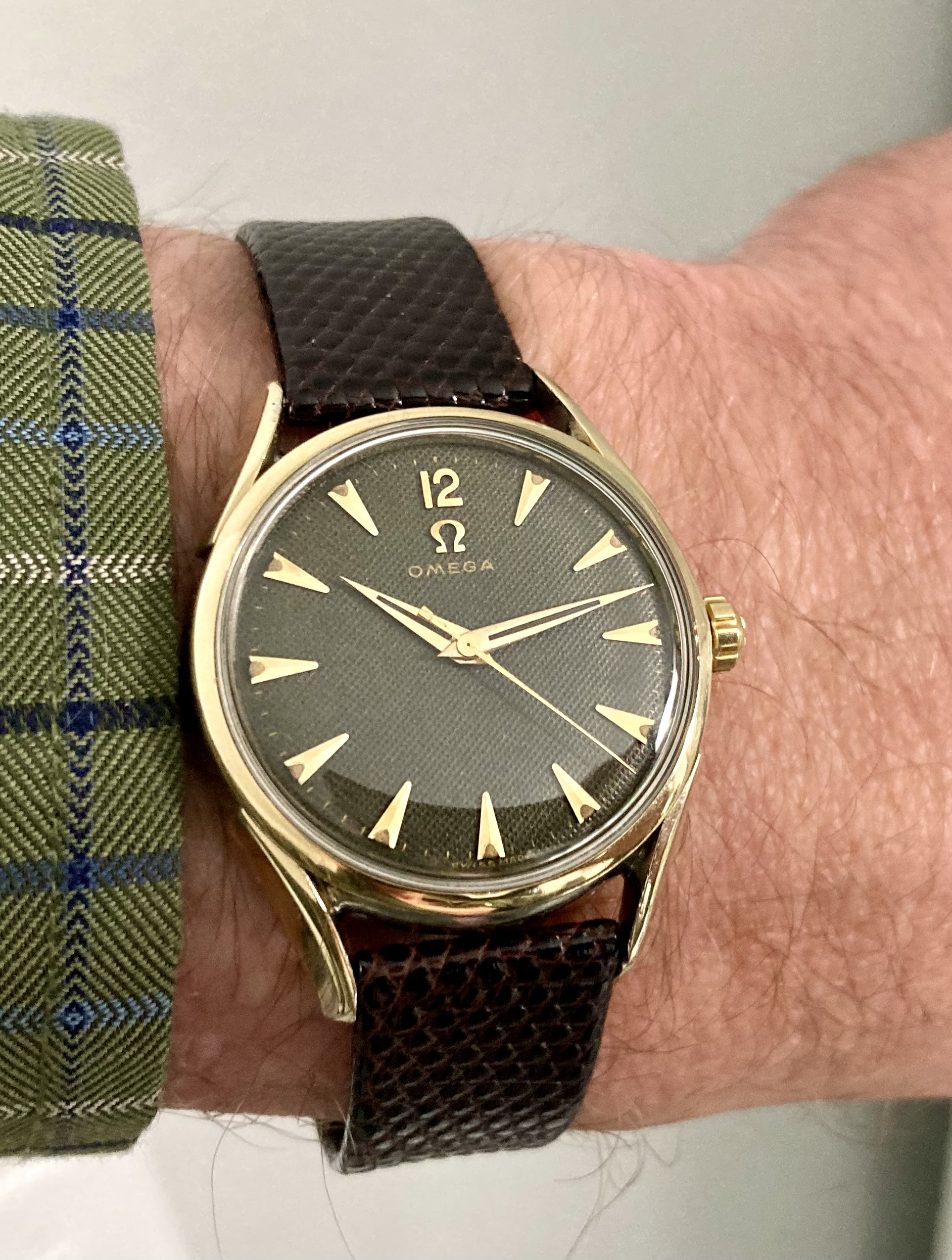 A handsome dog is Shameless Hussy, the '59 Omega Seamaster 520 re-dial for Friday.