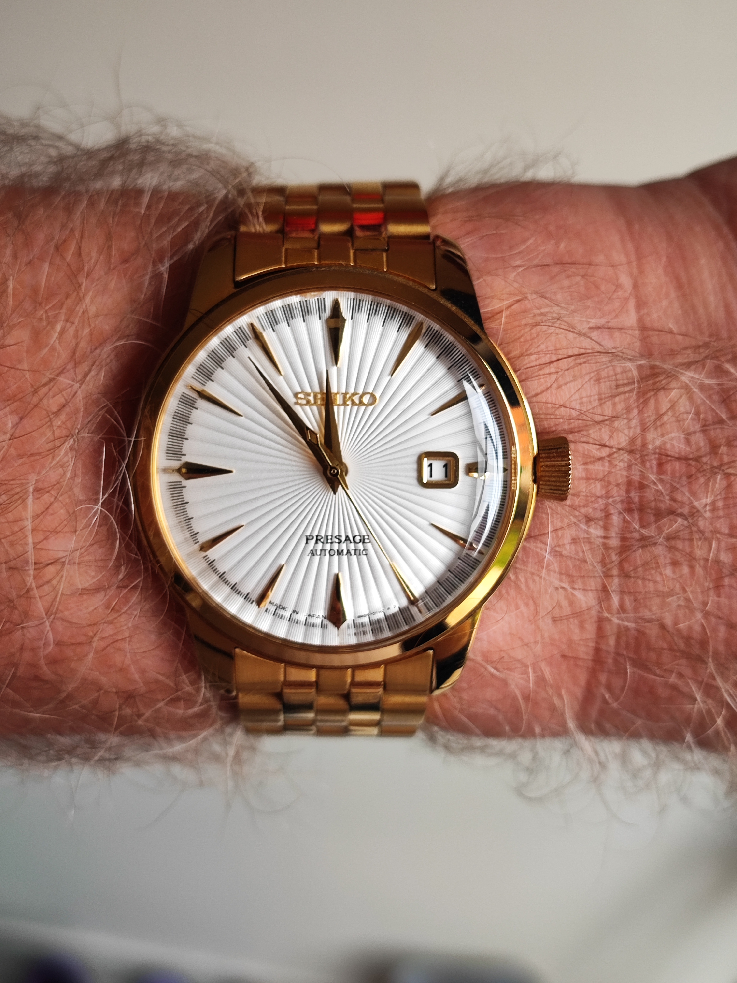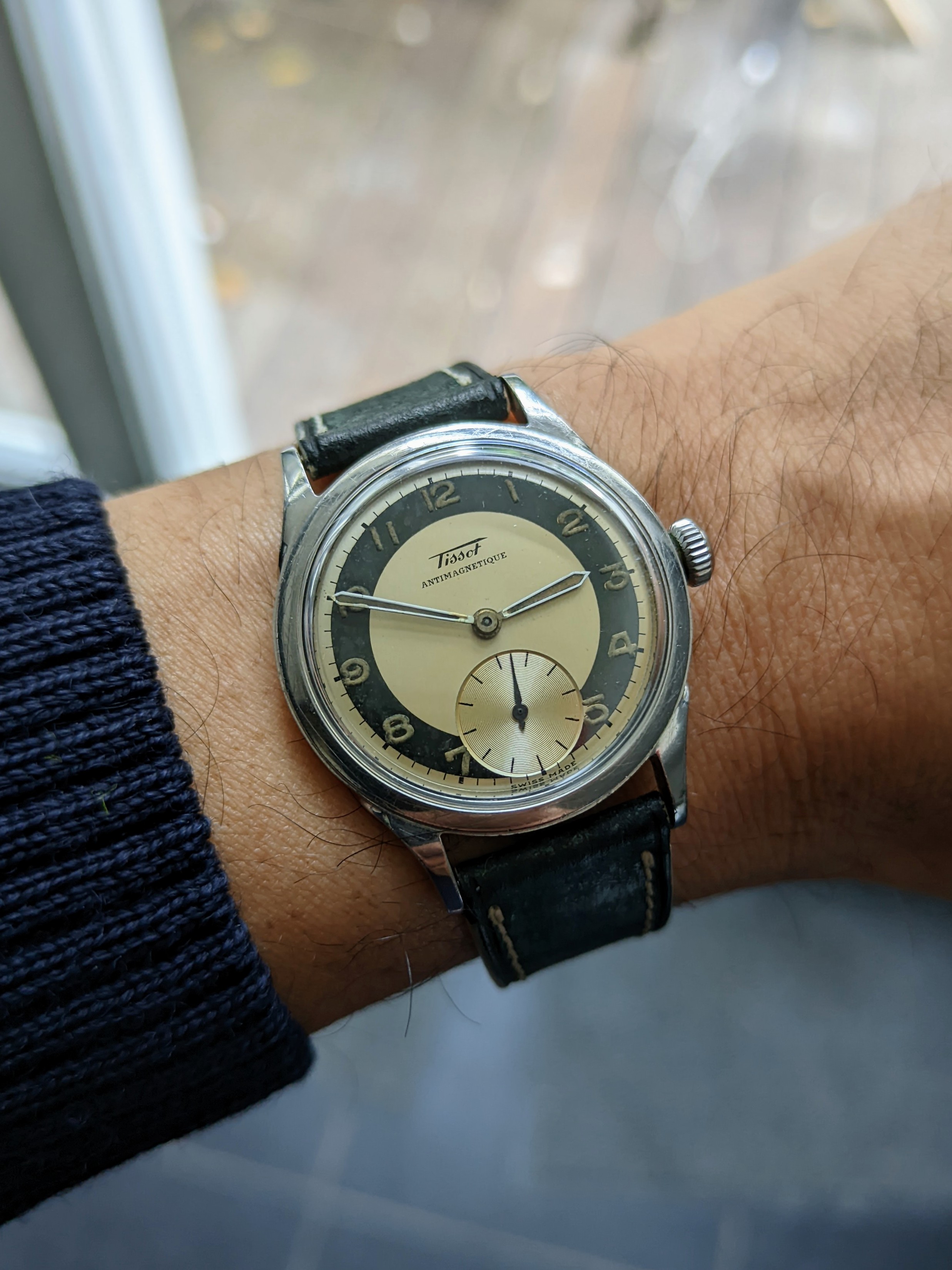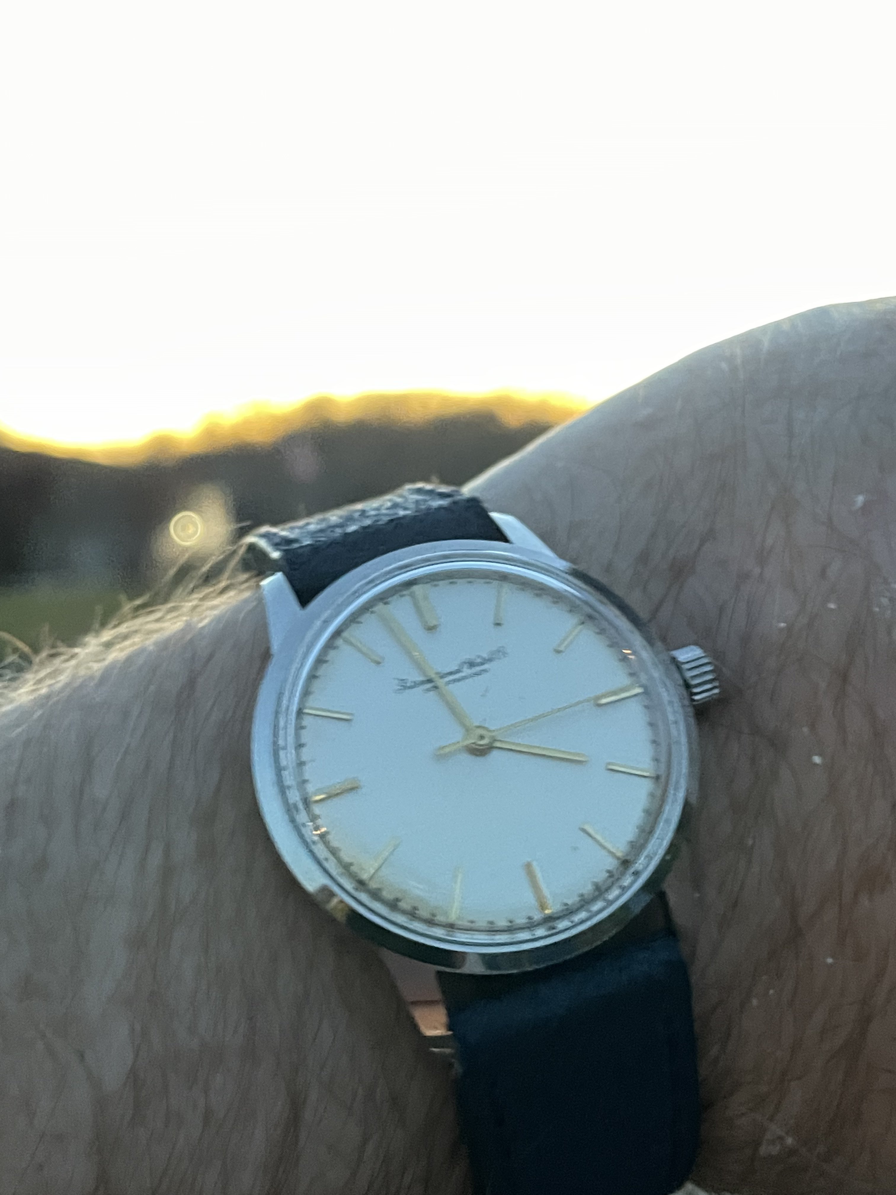 Try as I might, it's been almost impossible to show the beautiful color of this dial. It is a very deep indigo that looks great under natural light and very hard to capture in photos. Purchased from a "thrift shop" type of place in Greece (I thought the dial was black when I purchased it) along with it's original signed NSA bracelet....just serviced and now happily on the wrist.