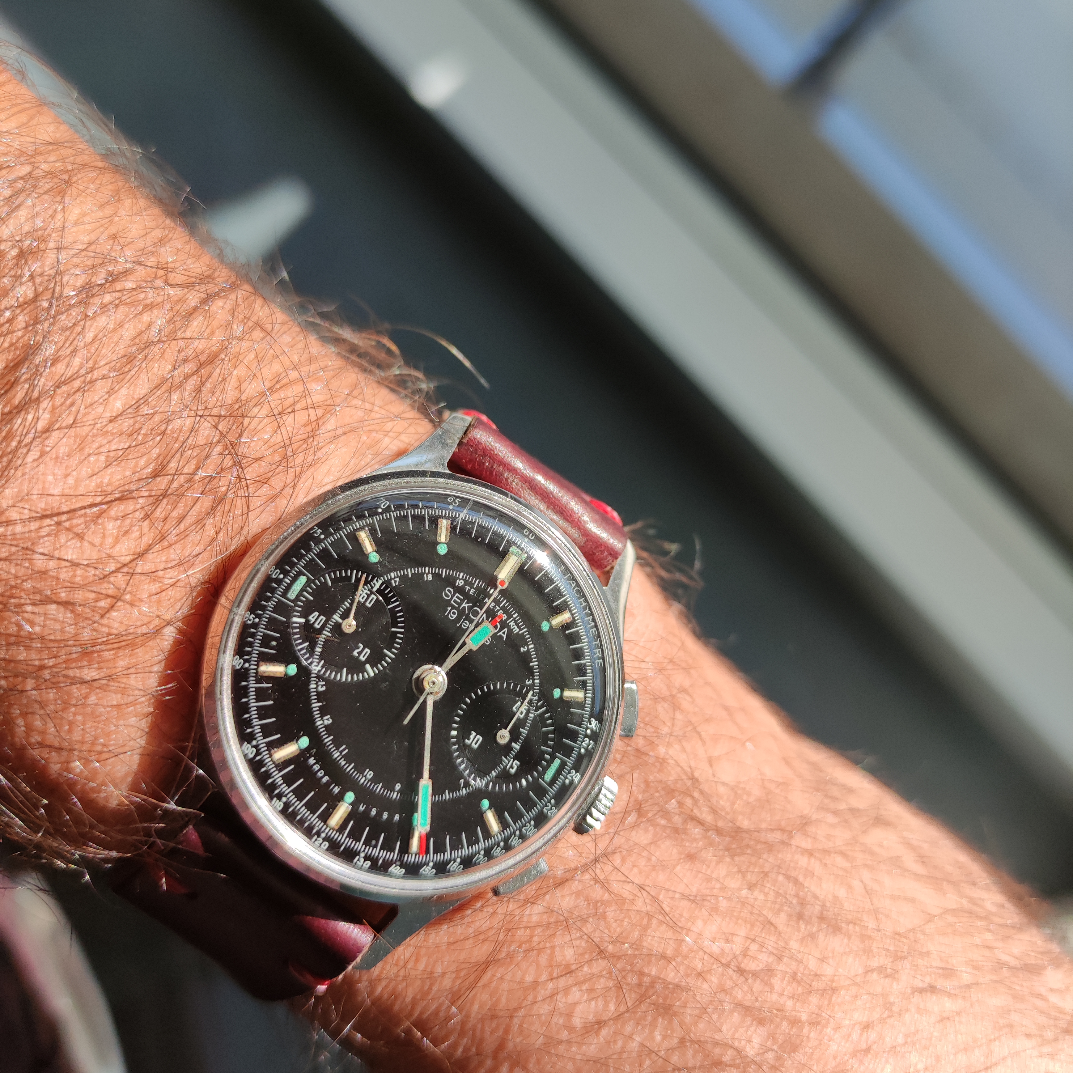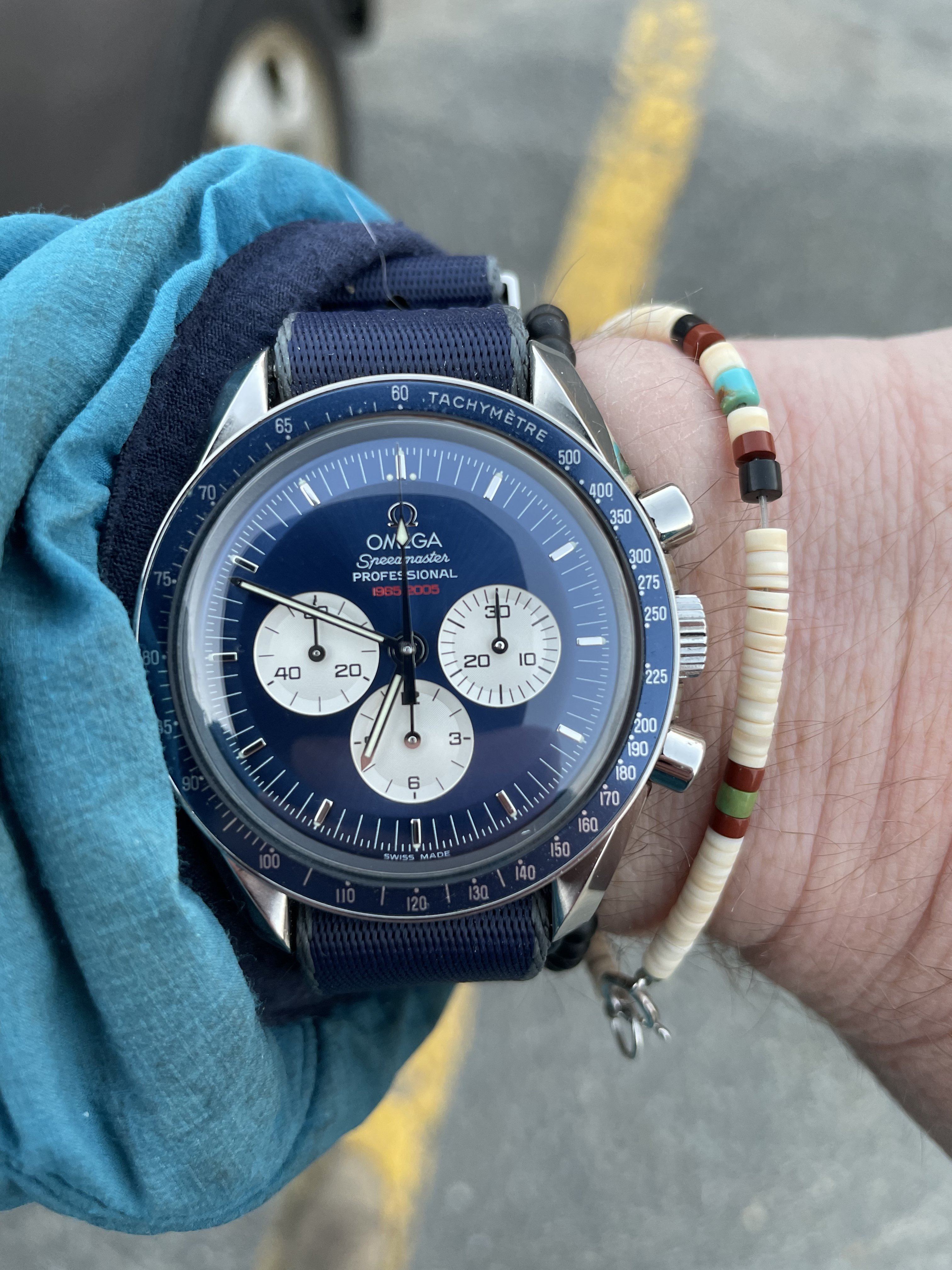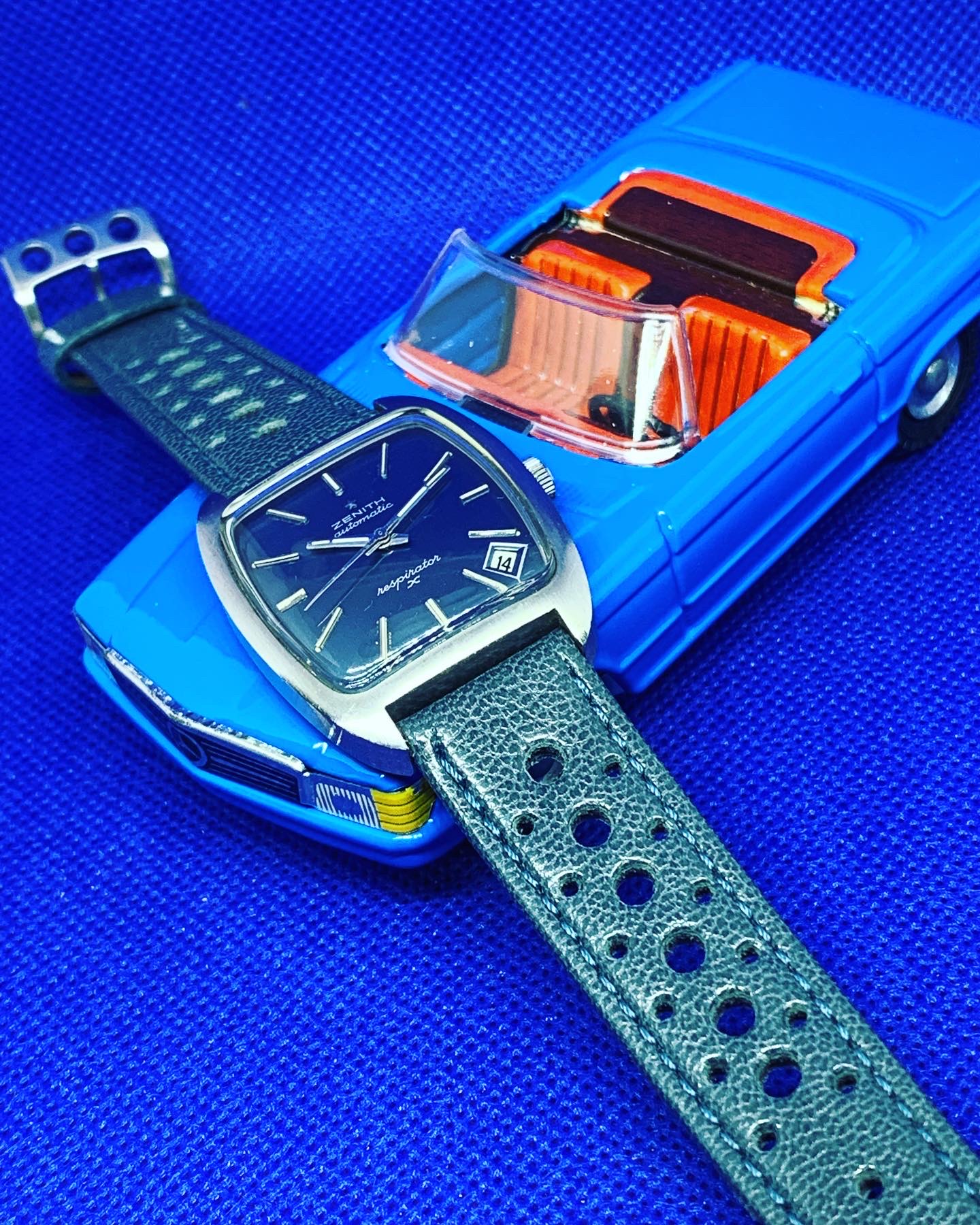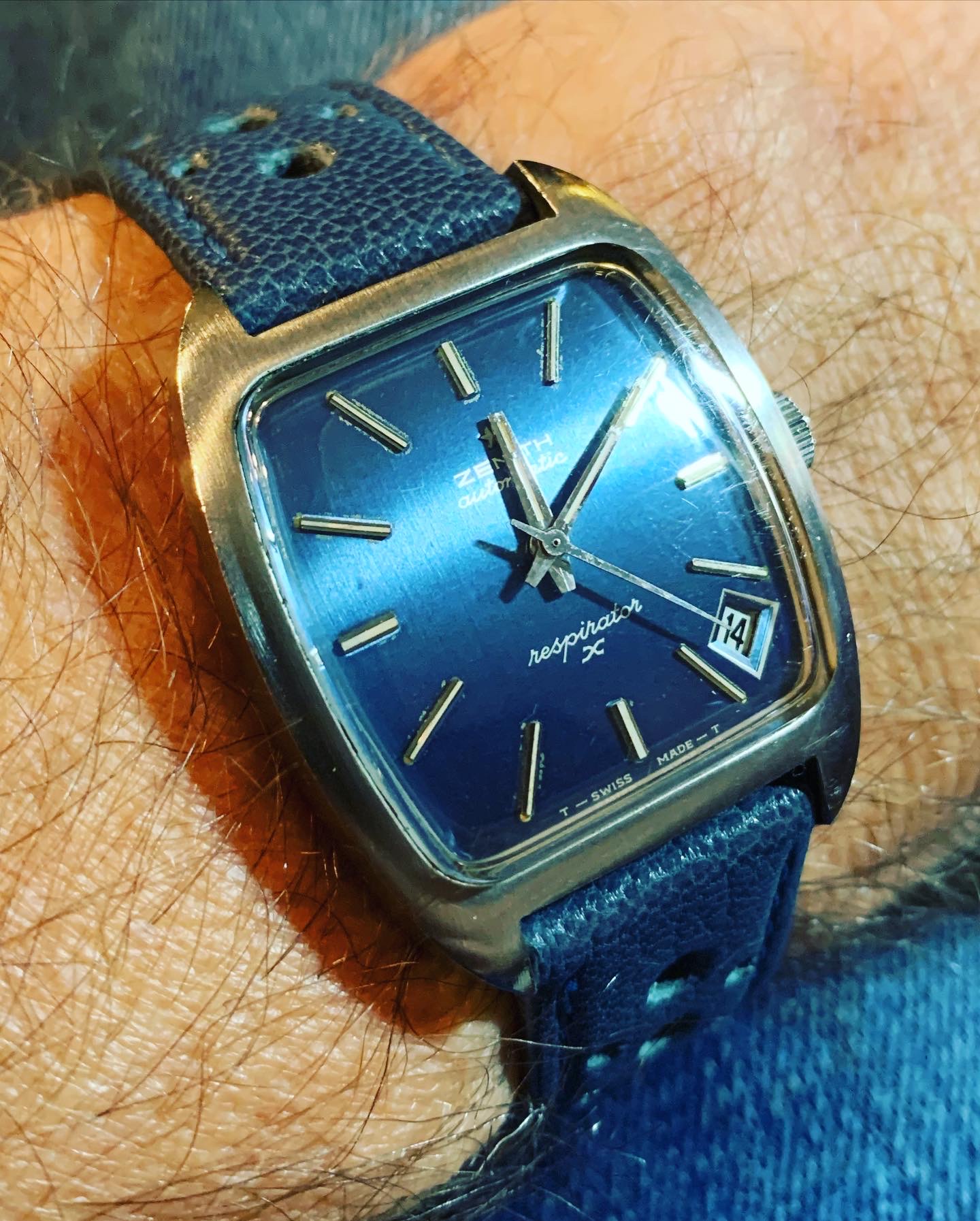 Today it’s my Zenith Respirator X. On a wash blue 18mm leather strap from RalStra International designed and made by me. Message me for discount promo code. See www.rallystraps.com for more.