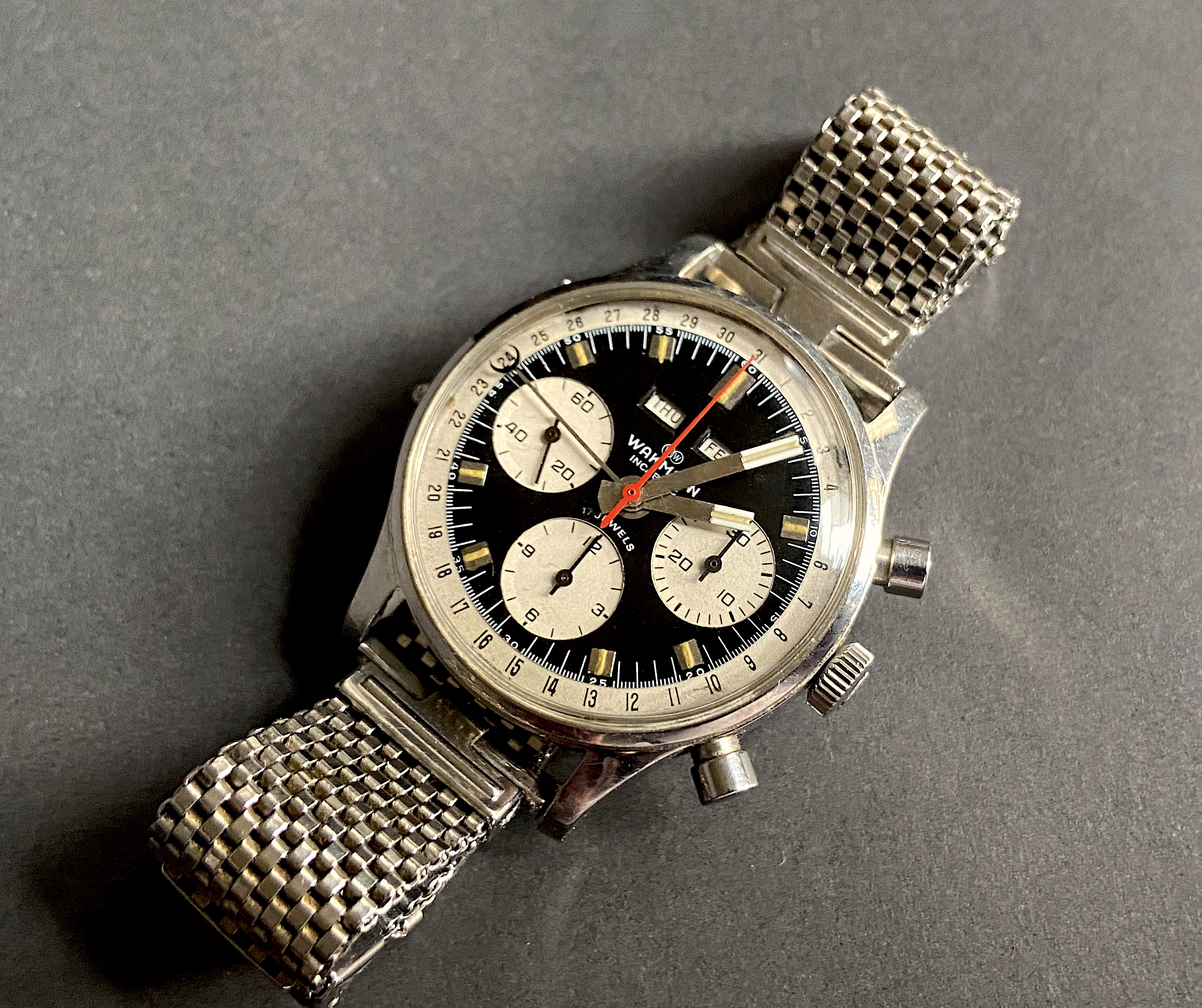 I got it from a friend who bought scrap gold and jewelry from pawn brokers (it was in a bag of old watches with a broken crystal), so not a watch faker/flipper and before the days of the India redials.