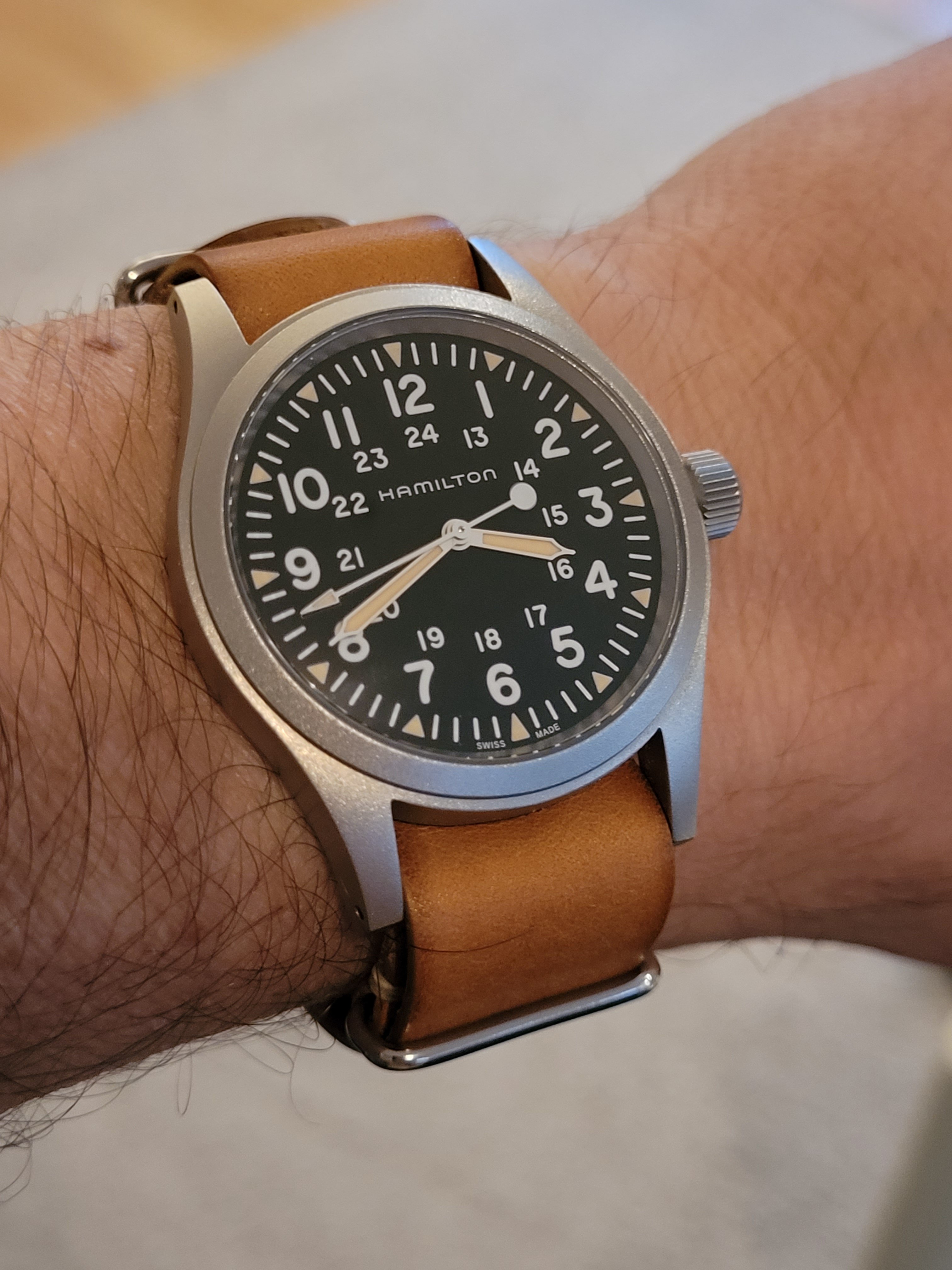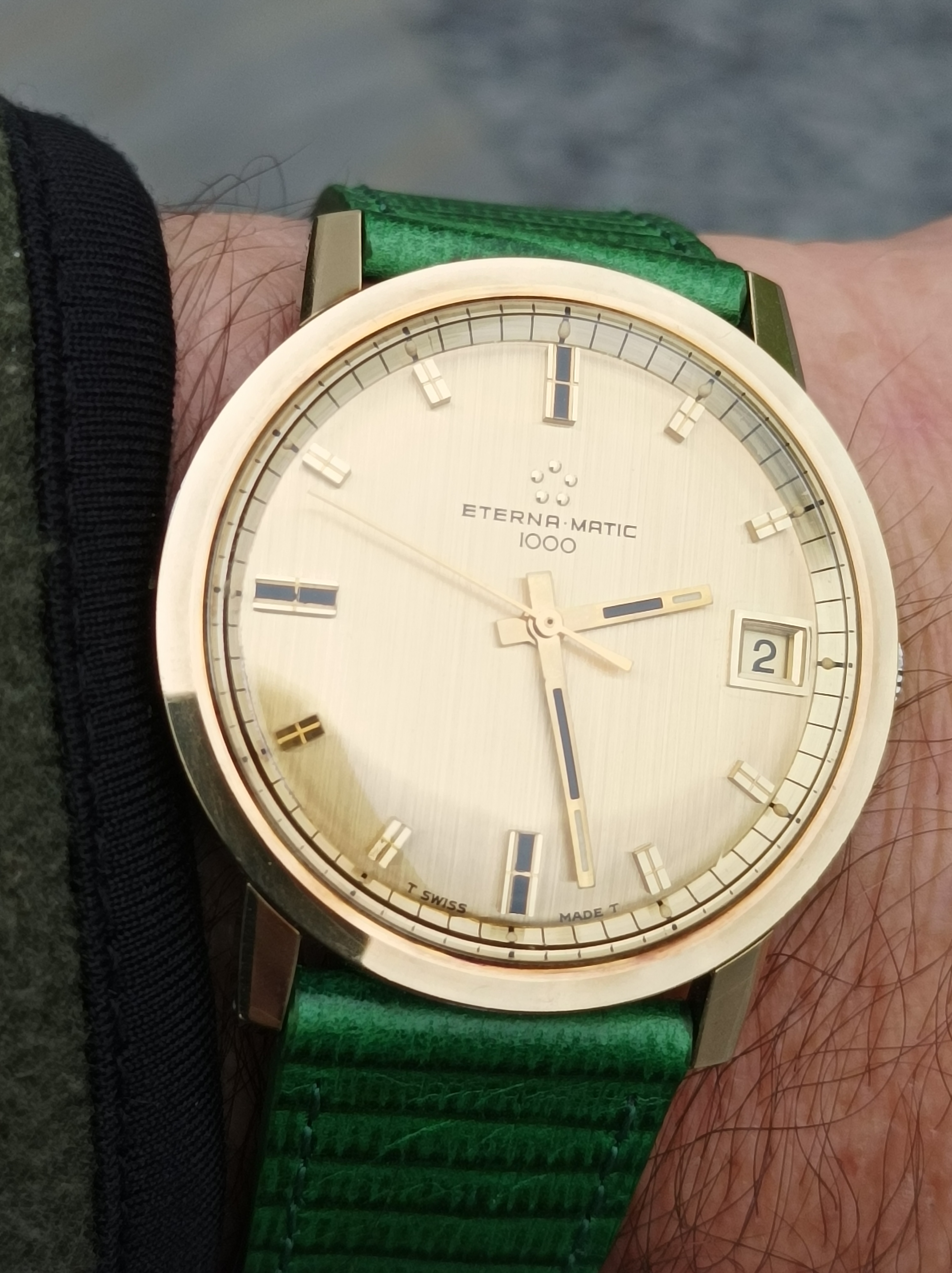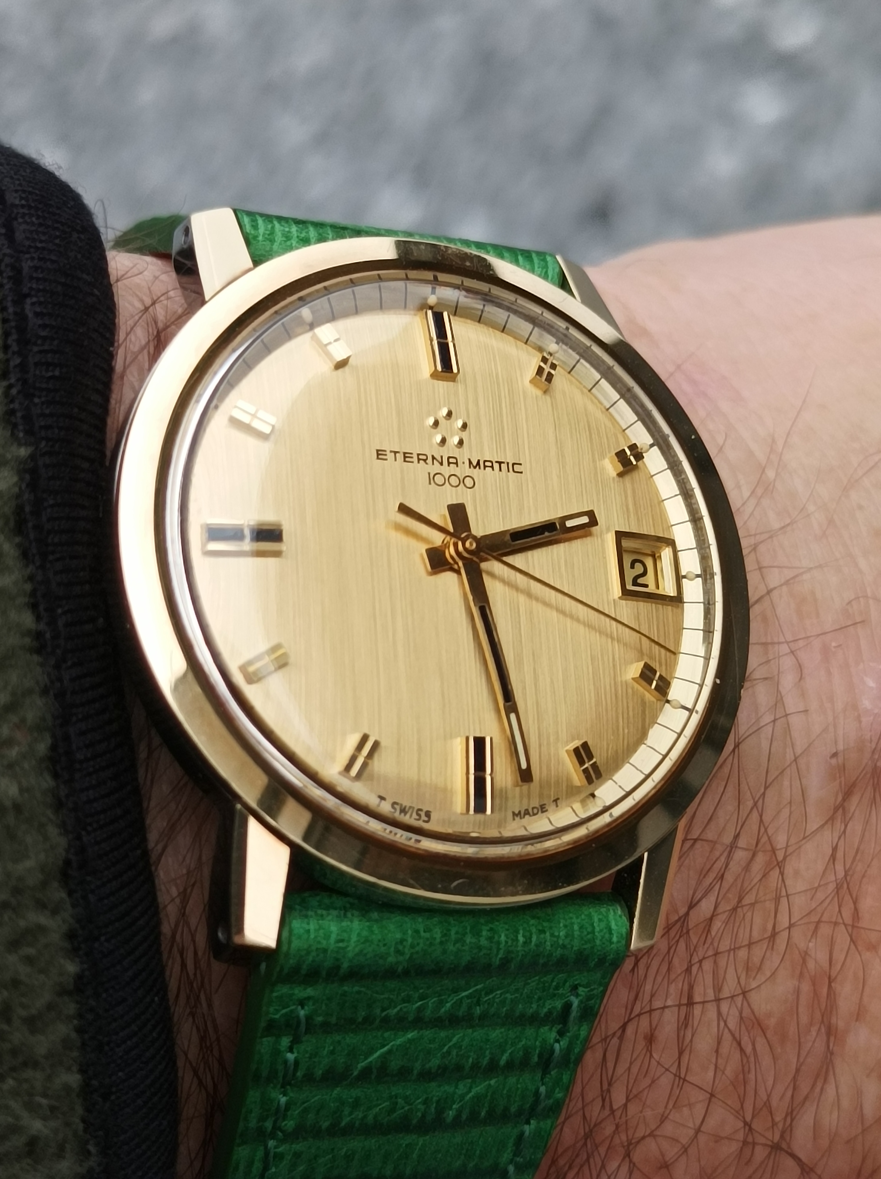 Posts 897 Likes 1,643 Bruce235 ·Dec 2, 2022 BAJJ 1969 Eterna Matic. It always amazes me how watches this old can be in such good condition. Looks great with the green strap.