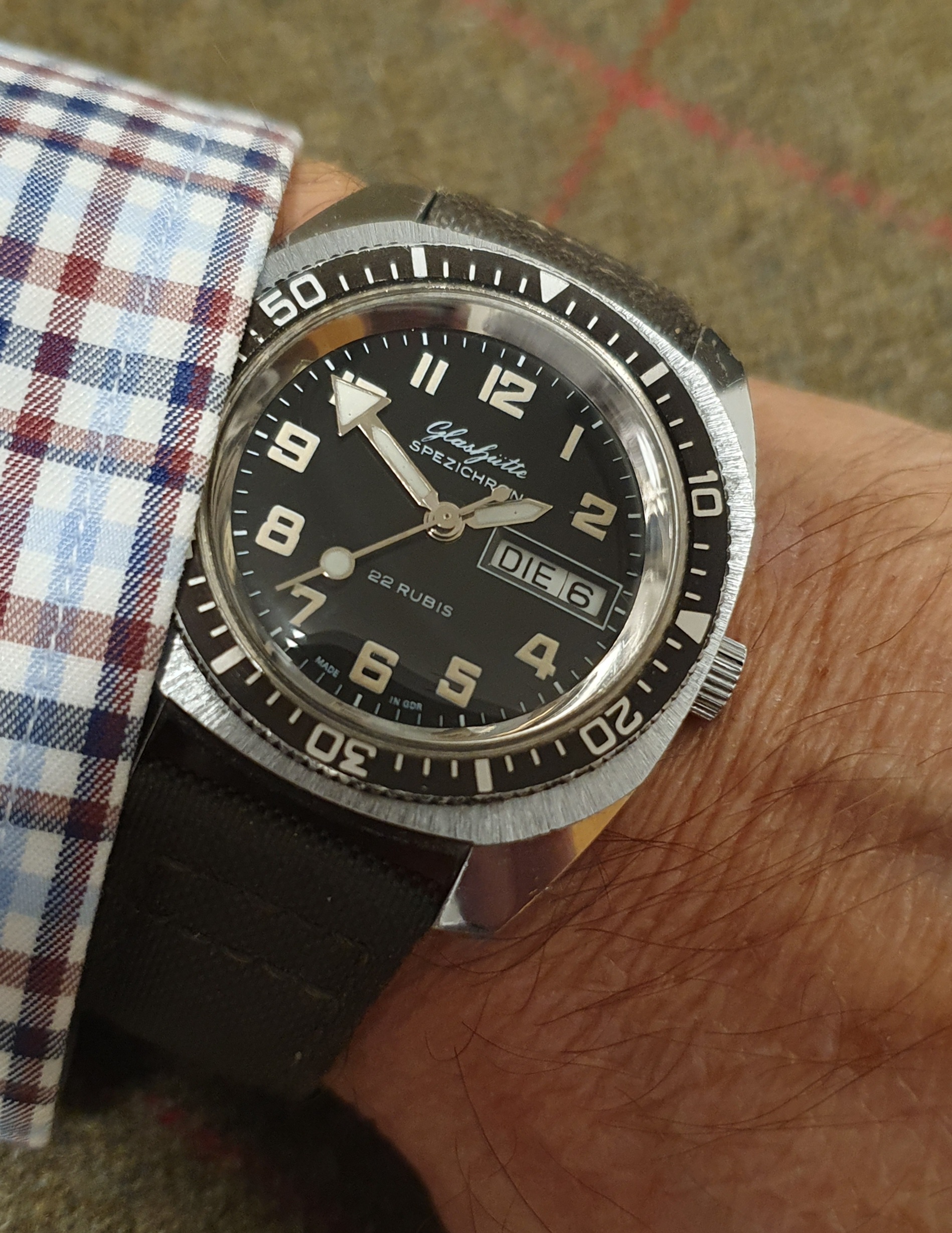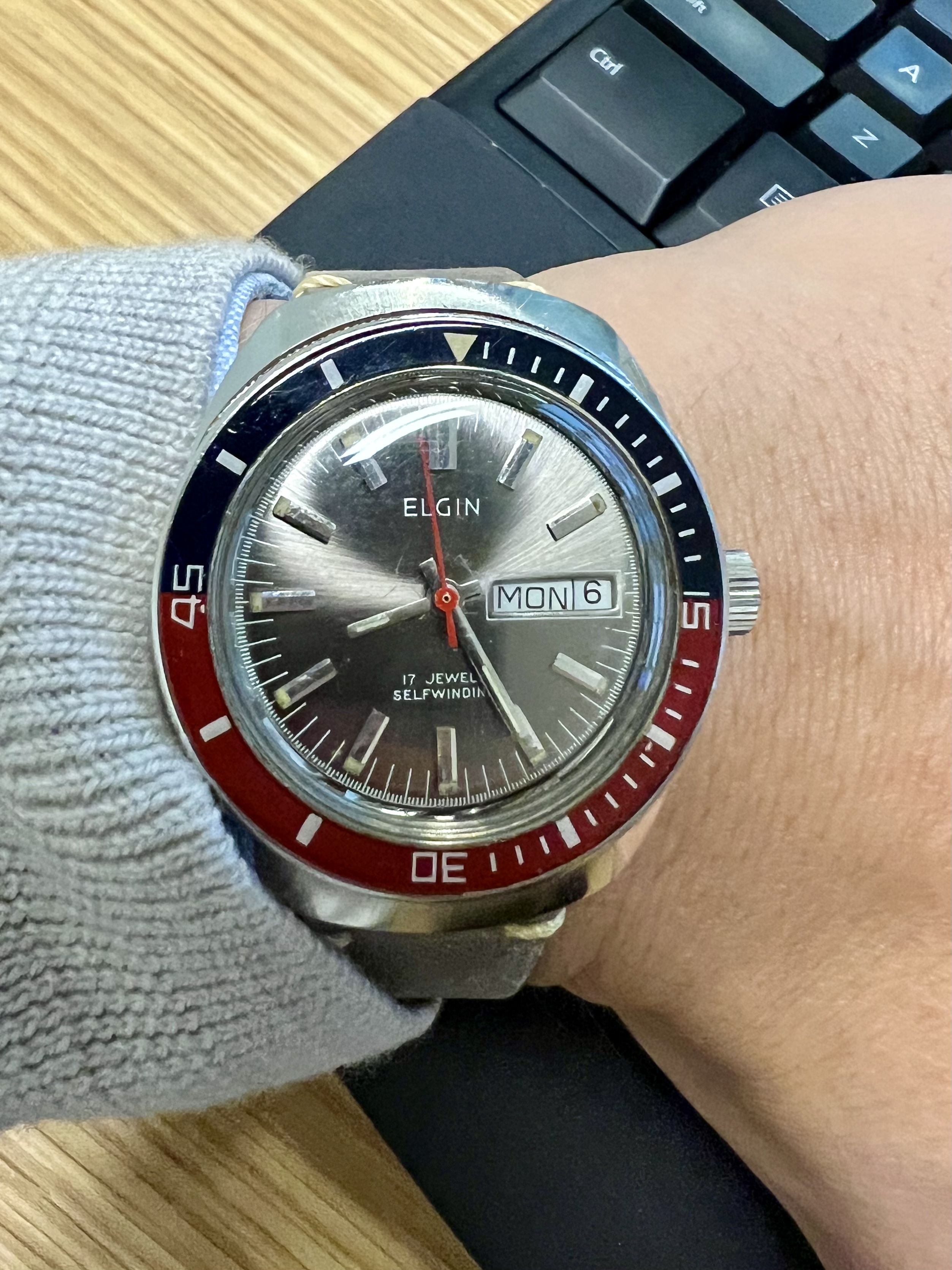 Posts 871 Likes 3,659 rendo ·Dec 6, 2022·faux legend New arrival thanks to Mr. @JwRosenthal . Has a few scars on the face, possibly by an incompetent watchmaker. Also the day wheel did not advance overnight, will need a service soon.