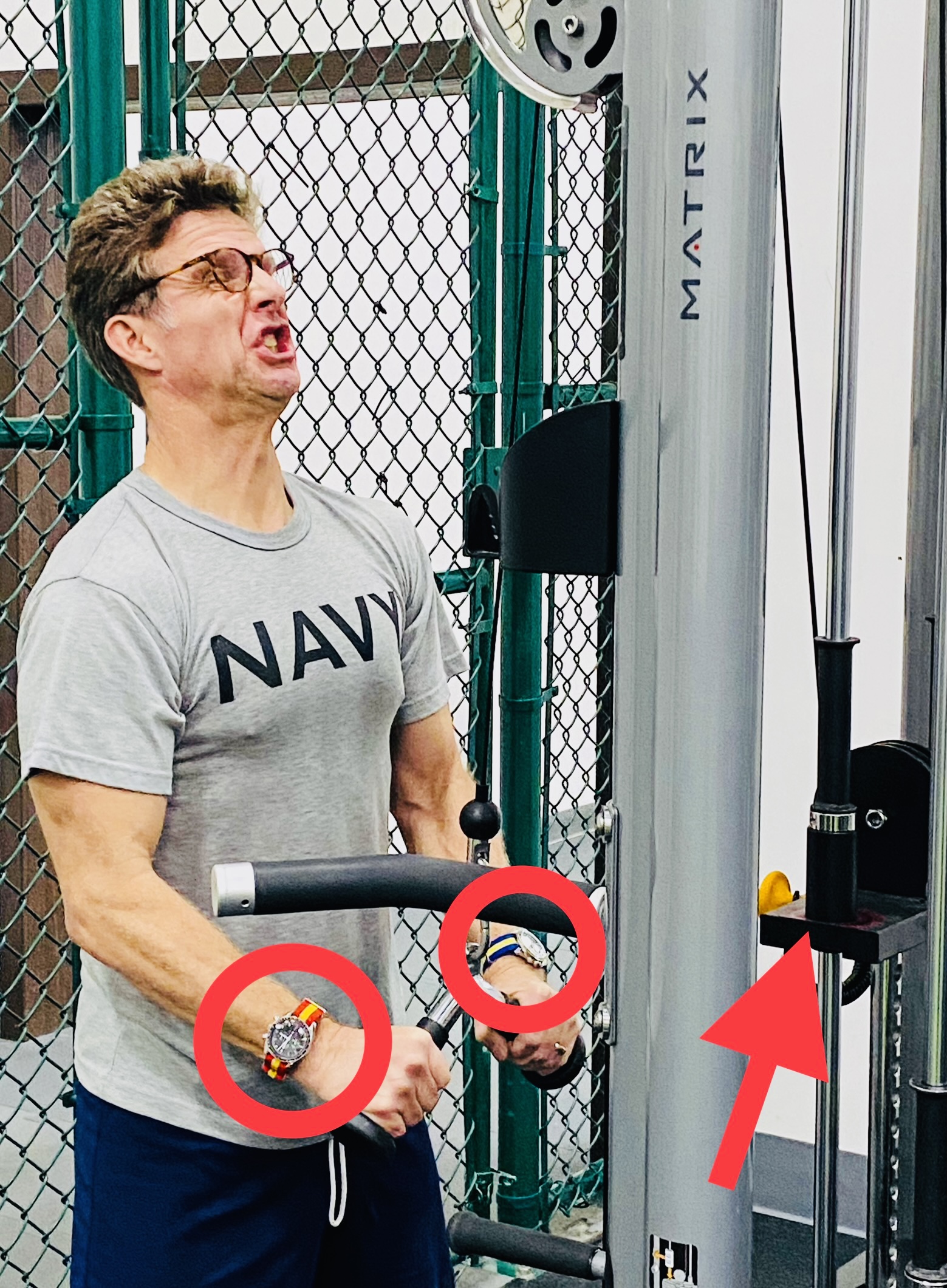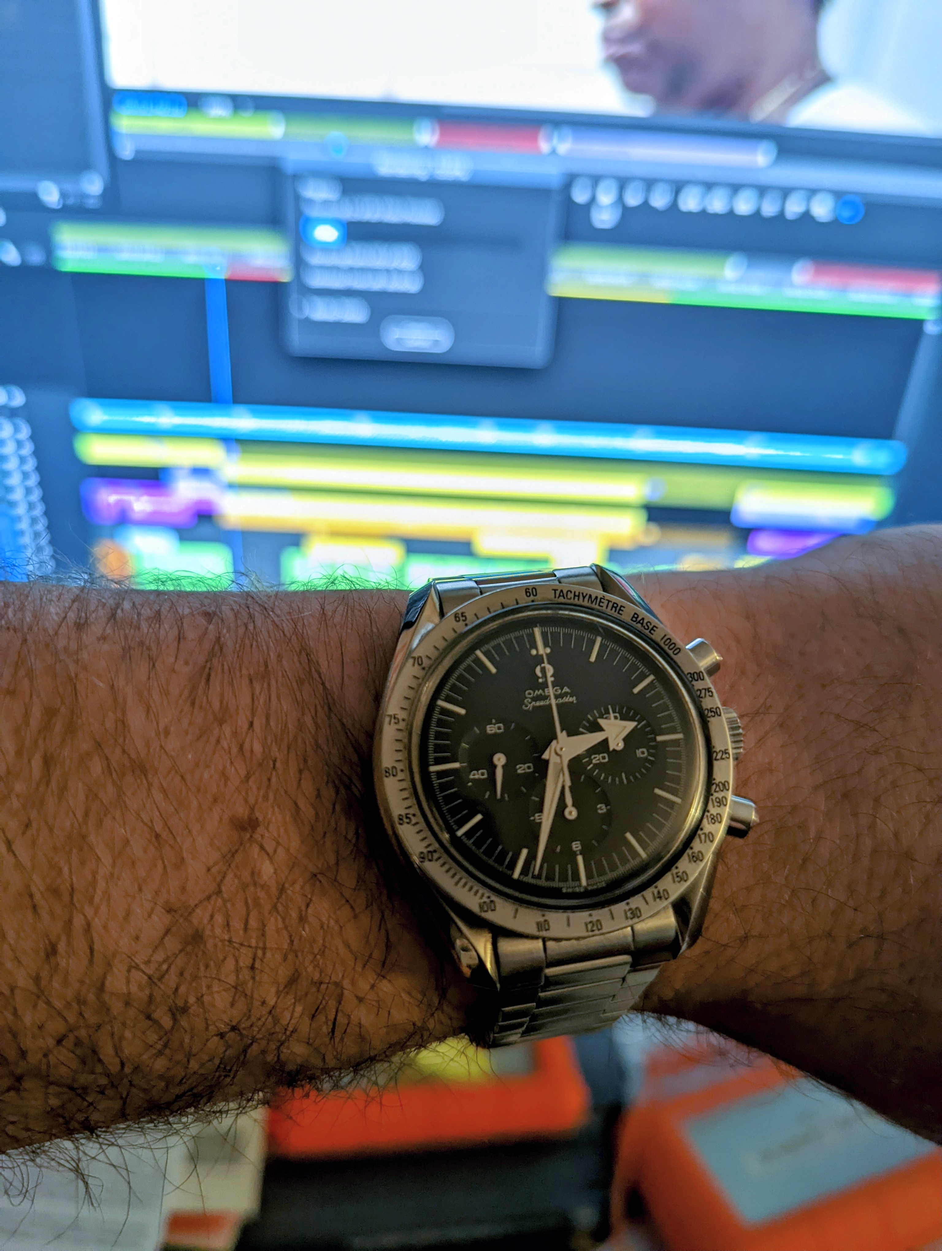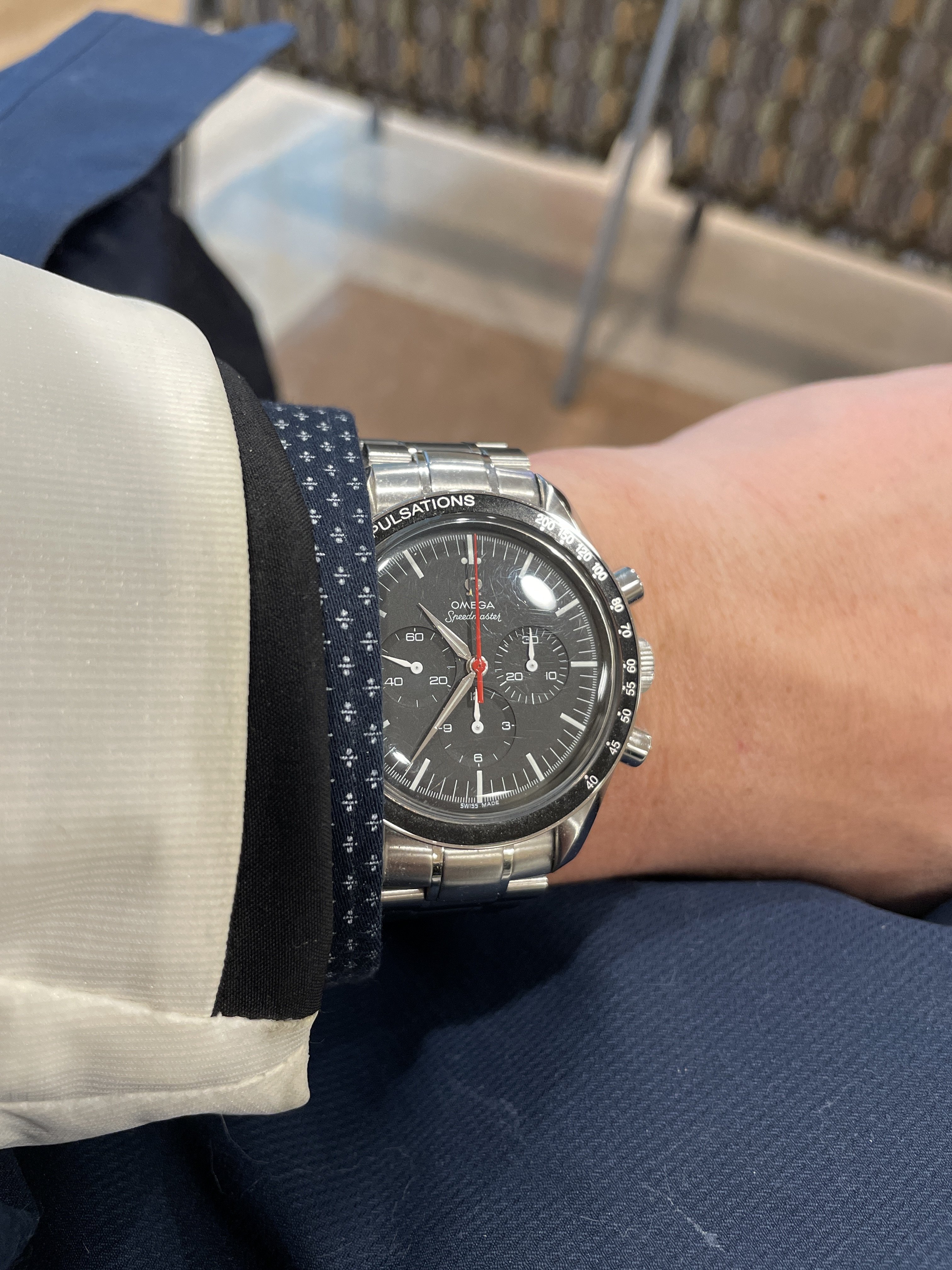 Double dipping on double dog Speedy Tuesday! So…I was at the gym working out…and some meat heads were going to kick sand in my face because I could only do one plate on the tricep machine…BUT…they noticed that I was wearing two Speedmasters…and they did not kick sand in my face! YAY!!! 👍👍👍