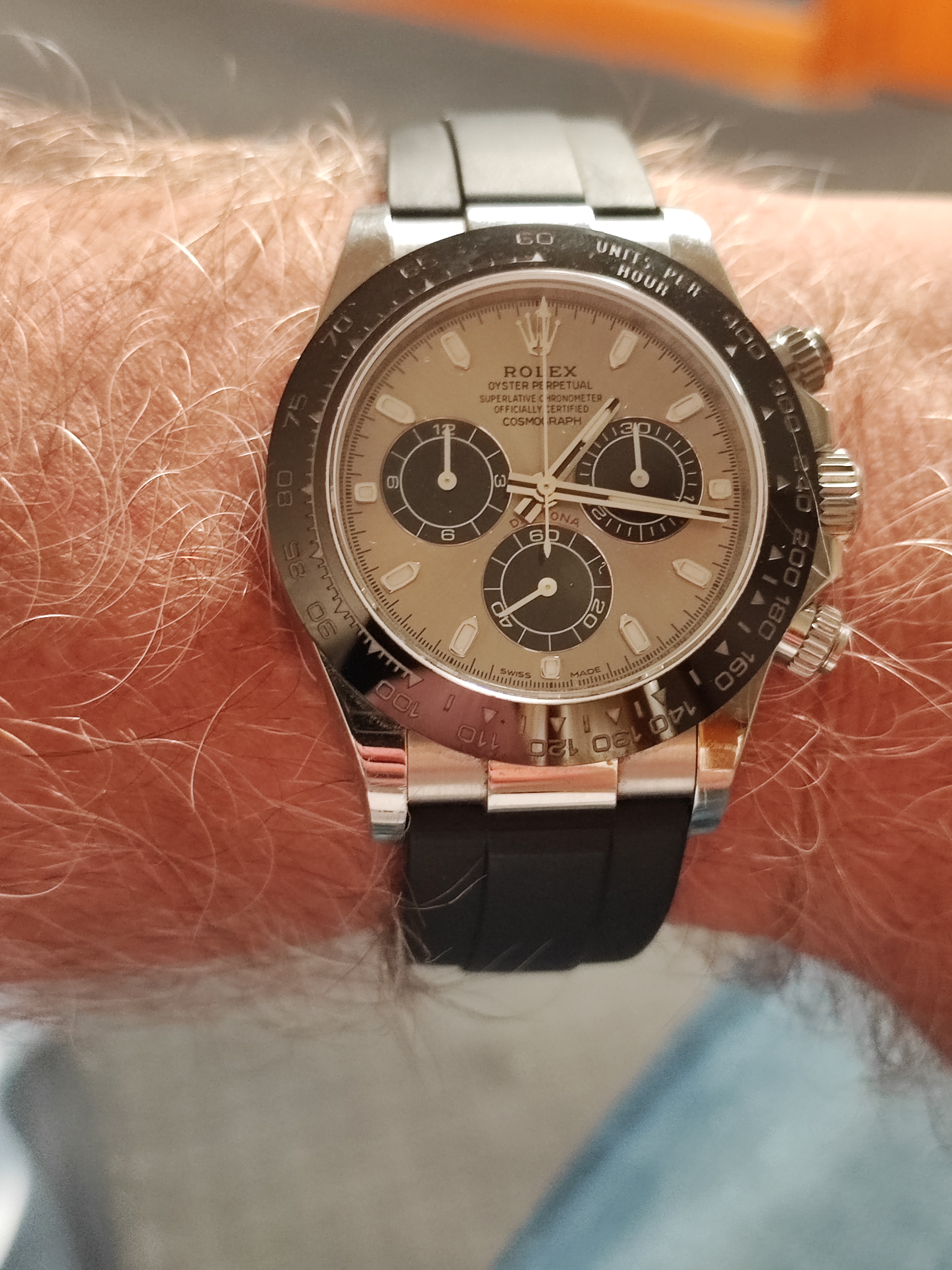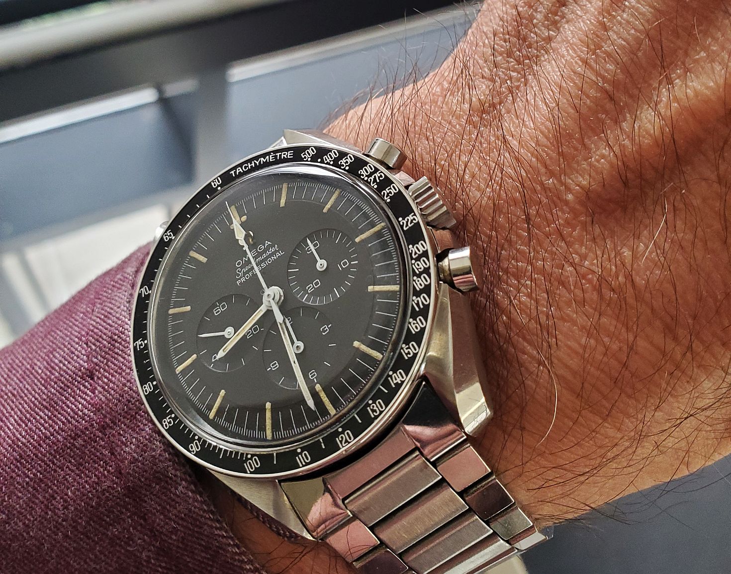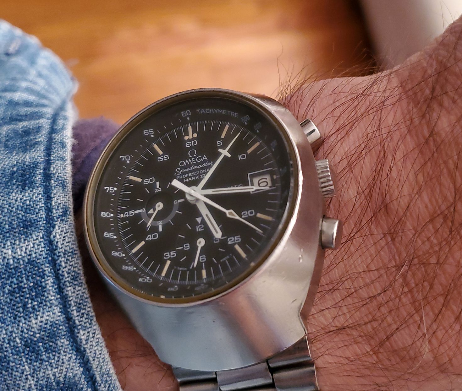 Double dipping on double dog Speedy Tuesday! So…I was at the gym working out…and some meat heads were going to kick sand in my face because I could only do one plate on the tricep machine…BUT…they noticed that I was wearing two Speedmasters…and they did not kick sand in my face! YAY!!! 👍👍👍