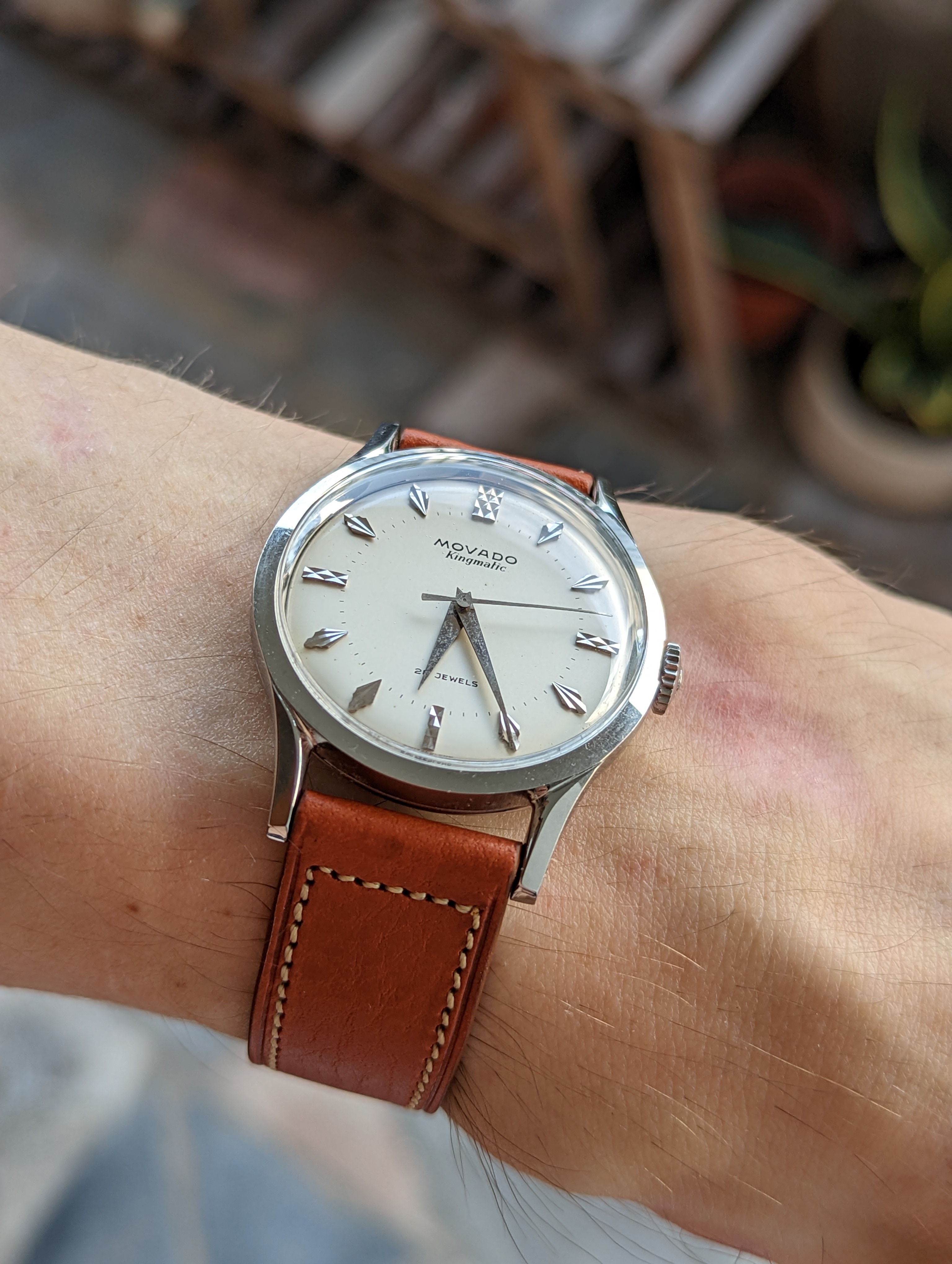 Posts 8,656 Likes 71,680 Spruce ·Dec 7, 2022·Sunburst dial fan Geezer Movado Kingmatic with the lovely Movado Caliber 431. I’ve always liked these and sometimes look out for one. A few years back I bid on one and missed out.
