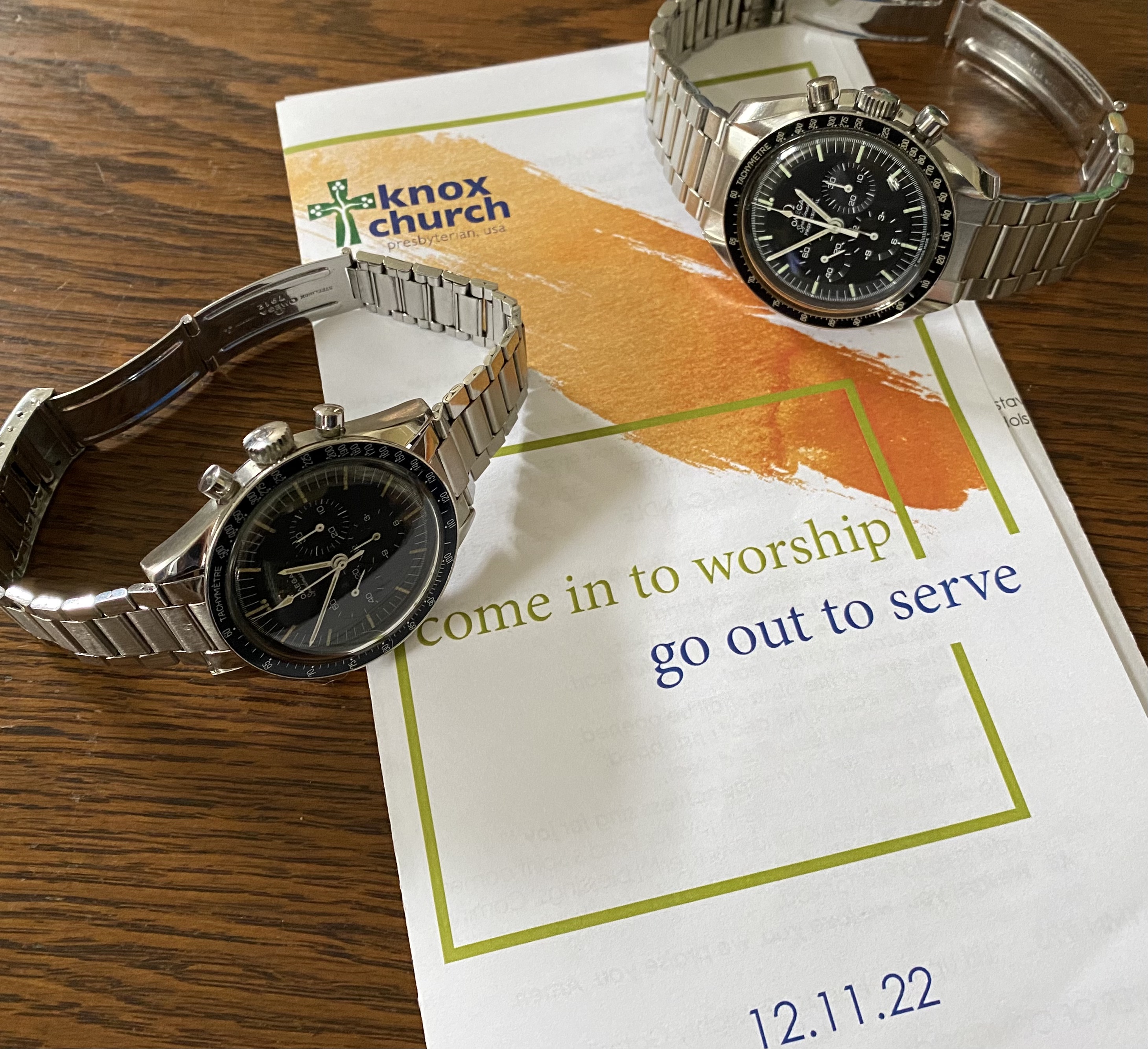Double dog vintage Speedmasters for usher duty at church today…105.003-64 and 145.022-71 respectively.