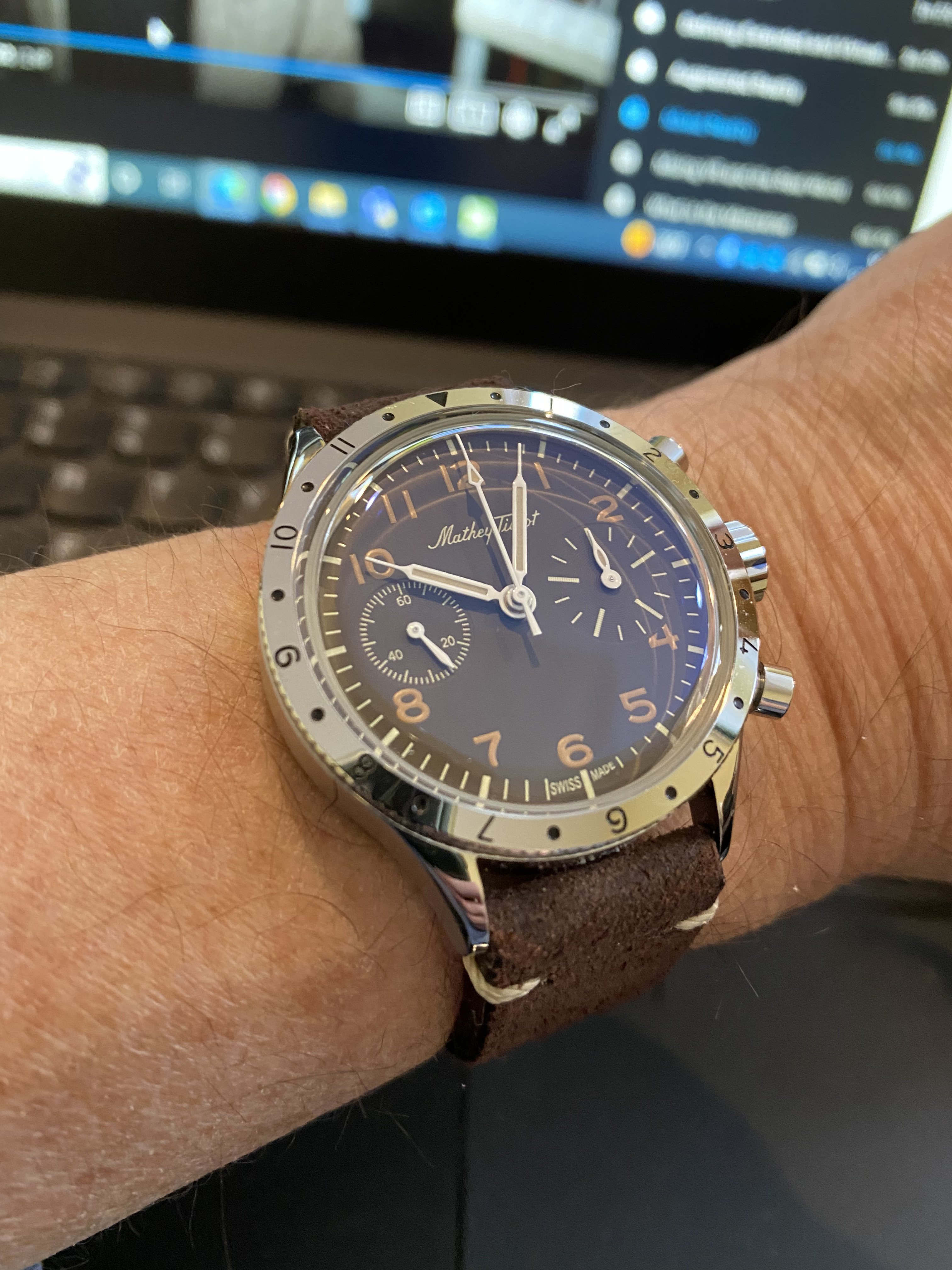 Posts 827 Likes 8,285 Njnjcfp88 ·Dec 13, 2022 Sofior with the ubiquitous Landeron 51 movement inside the “arachno” shaped case.