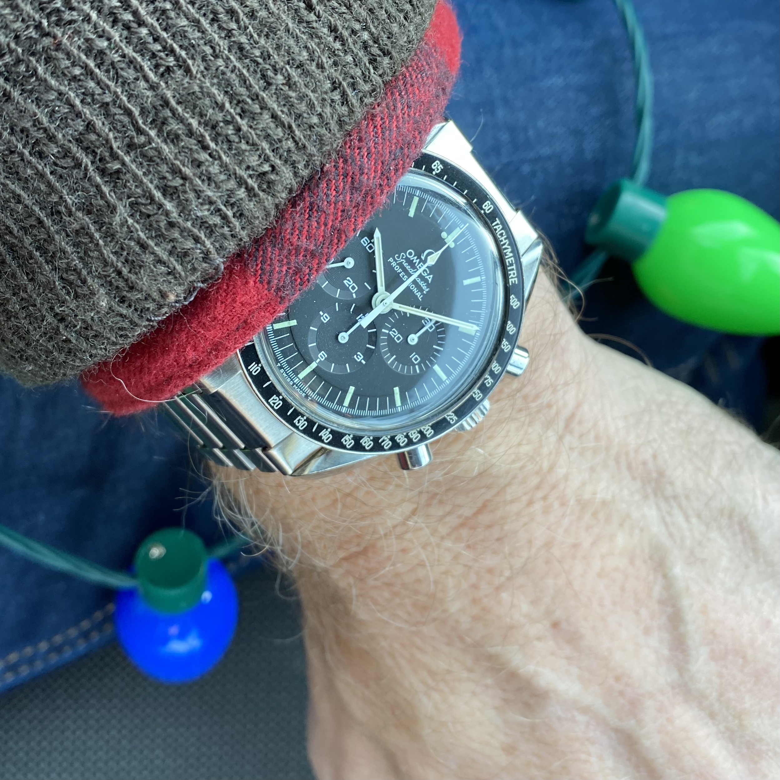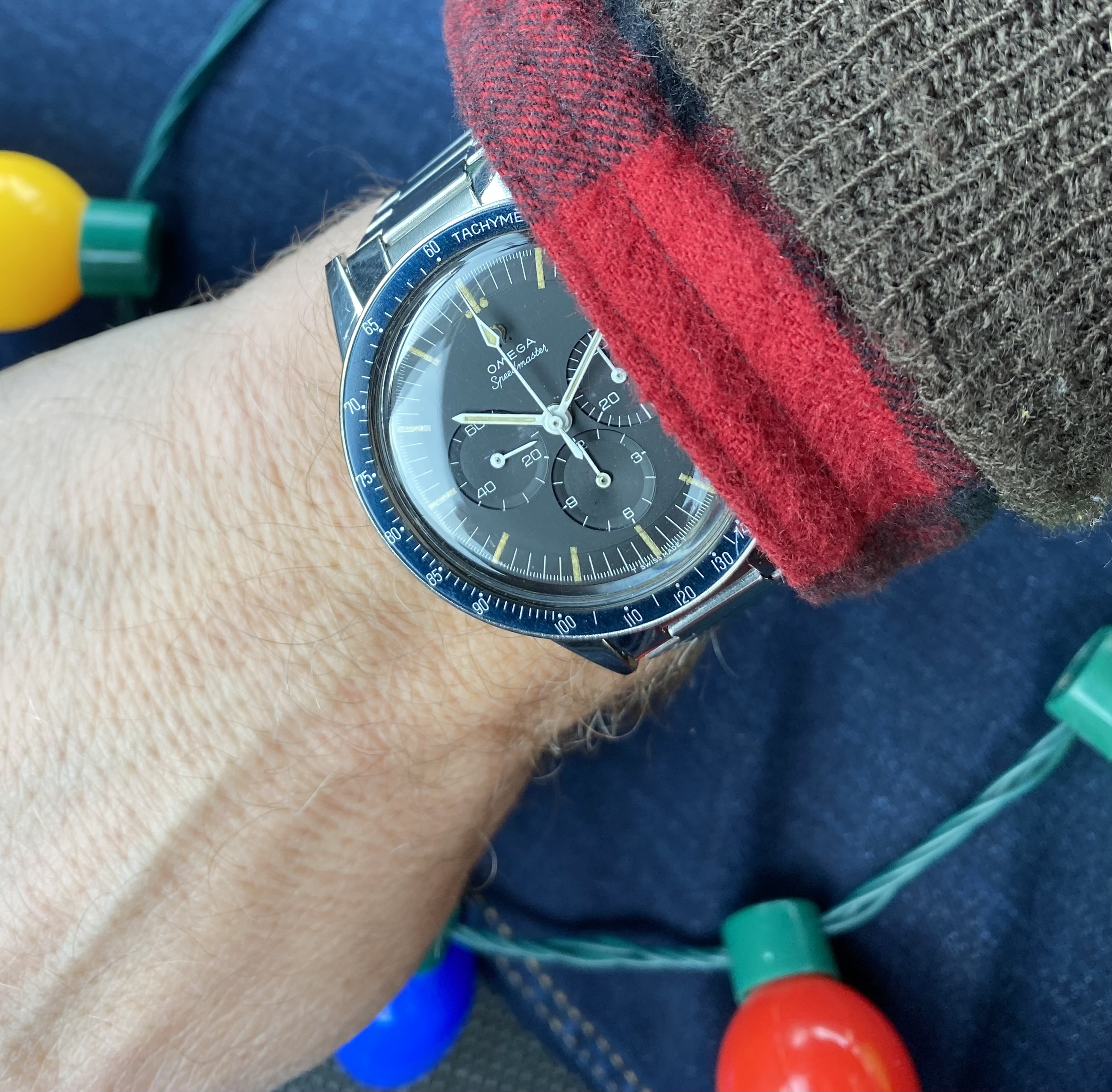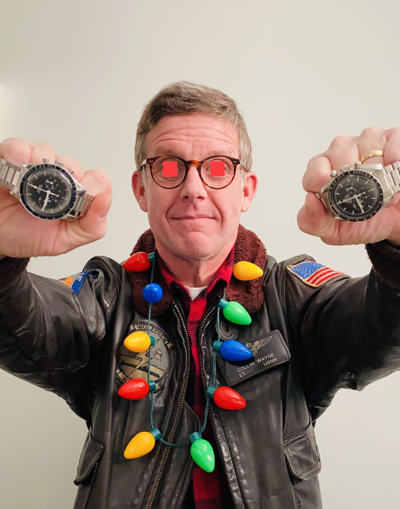 Posts 6,584 Likes 78,277 Mad Dog ·Dec 13, 2022 Double dog vintage Speedy Tuesday…with el cheapo Christmas lights from Walgreens and my 1986 AOCS issued U.S. Navy G-1 flight jacket…105.003-64 and 145.022-71 respectively… LATE ENTRY: Edited: Dec 13, 2022