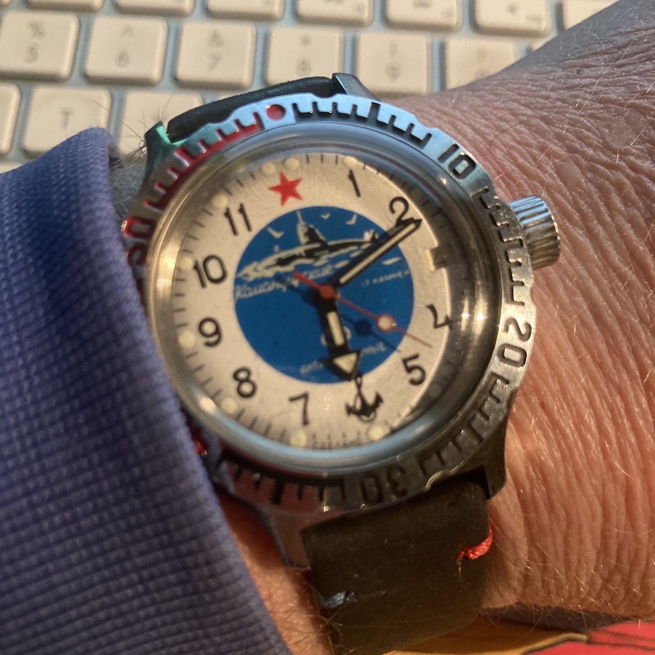 The strap I use here was made from shark skin by https://vgreenco.com/ --- very much recommended.
